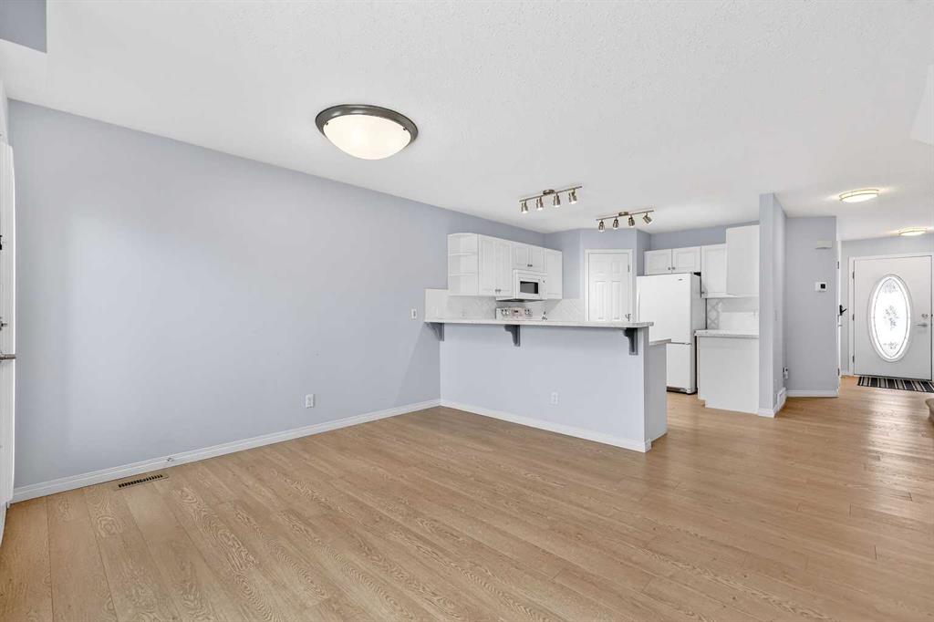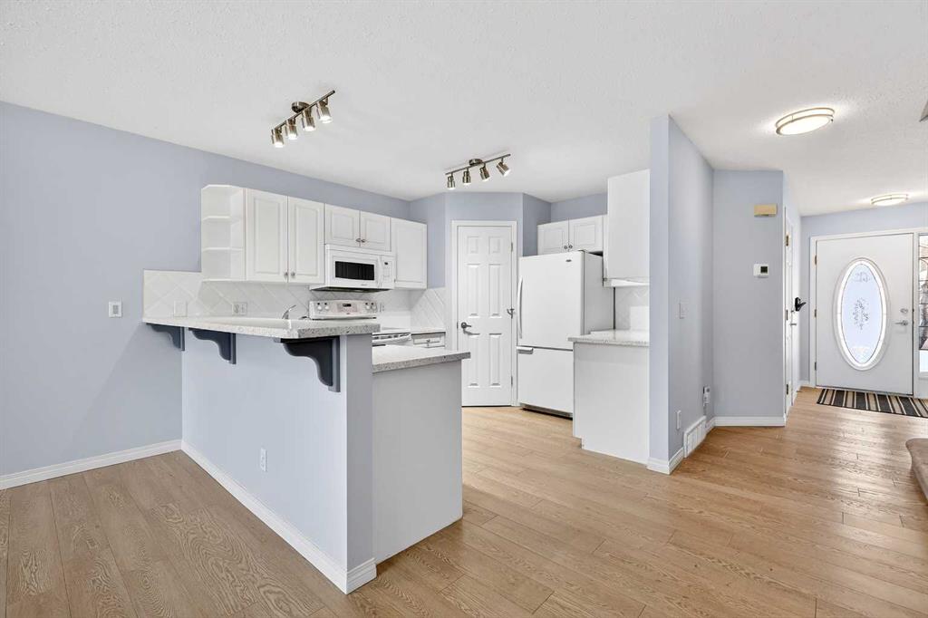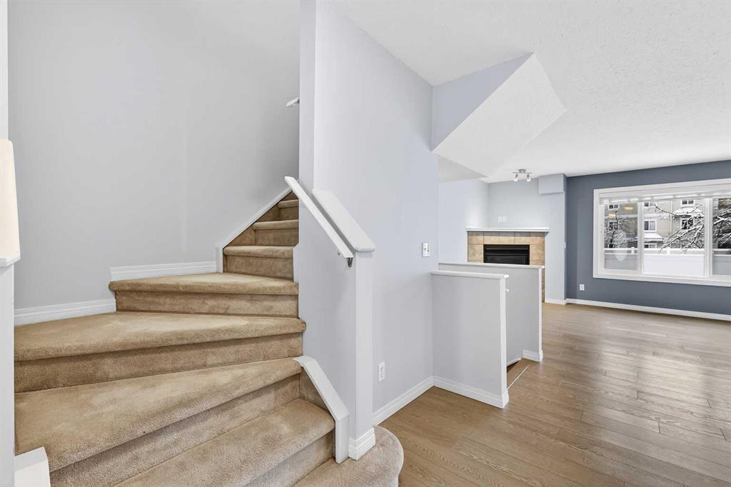 Welcome to this well-designed townhome in the desirable community of Chaparral in southeast Calgary. Offering an ideal balance of comfort, flexibility, and value, this home is a fantastic opportunity for first-time buyers, downsizers, or anyone seeking low-maintenance living with the added convenience of a single attached garage. The main floor features a bright open-concept layout connecting the kitchen, dining area, and living room, creating a functional space for everyday living and entertaining. The kitchen is finished with modern white cabinetry, updated countertops, and some updated appliances, providing both style and practicality. The living room is anchored by a gas fireplace, adding warmth and comfort to the central gathering space. A convenient half bathroom and direct access to the garage complete the main level. Upstairs, the home offers a flexible layout with two bedrooms plus a loft/bonus room that can easily function as a home office, reading area, or family space. In similar units within the complex, this loft has been converted into a third bedroom, offering future versatility depending on your needs. The spacious primary bedroom features direct “cheater ensuite” access to the main bathroom, enhancing both privacy and convenience. The lower level remains unfinished, providing valuable potential for future development with roughed-in plumbing already in place — an excellent opportunity to add additional living space, a recreation room, or guest area as your needs evolve. Additional conveniences include a newer garage door, air conditioning for those warmer summer nights, and newer triple pane windows on both the main and upper levels which provides extra warmth in the winter months and a reduction in energy use. Located in a well-established community known for its parks, pathways, and everyday conveniences, this property delivers an appealing combination of location, functionality, and long-term value. Whether you are entering the market, simplifying your lifestyle, or investing in a property with growth potential, this townhome is a smart opportunity in one of Calgary’s desirable south communities.