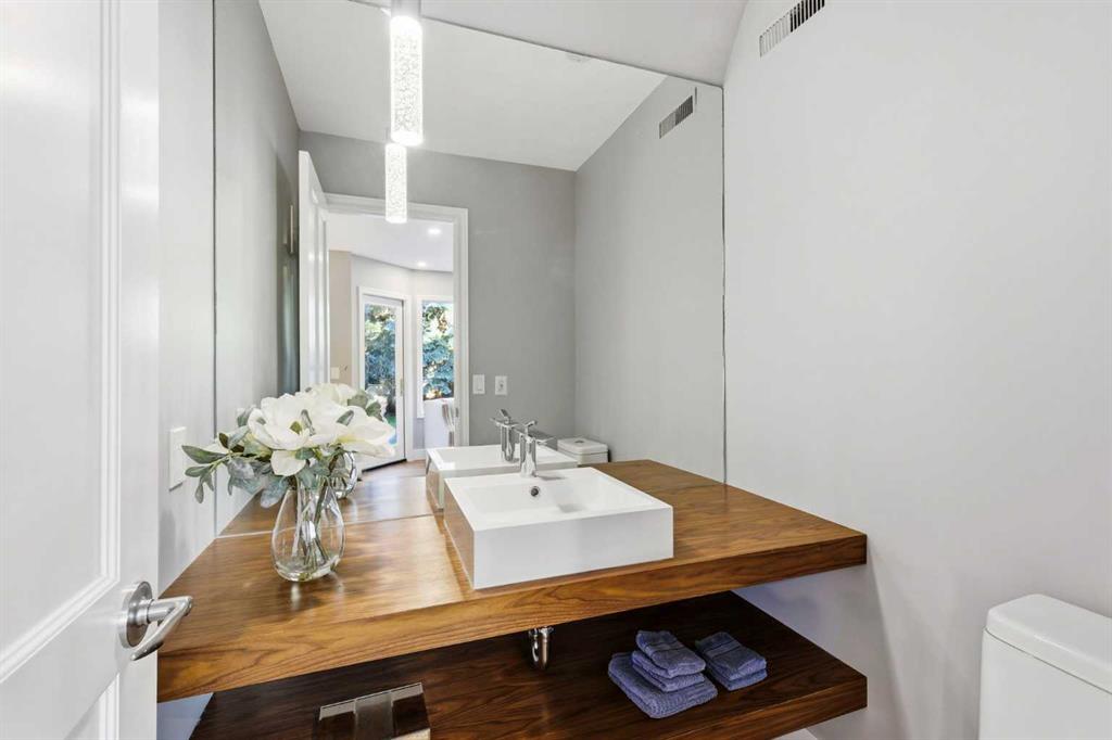 Welcome to Willow Park Estates, where timeless architecture meets modern refinement. Perfectly positioned on a massive pie-shaped lot siding onto a green space and the Willow Park Golf Course, this impressive 2-storey home offers over 2700 sq. ft. above grade, a fully finished basement, 4 bedrooms, 4.5 bathrooms, and a double attached garage. Step inside to a bright, open foyer that immediately feels inviting. The home has been recently repainted, with refinished hardwood floors adding warmth and sophistication throughout. The open-concept layout connects the formal living and dining areas to the beautifully renovated kitchen—a true centerpiece of the home. Featuring quartz countertops, a central island, new Jenn-Air appliances and custom cabinetry, this space was reimagined to combine everyday practicality with elevated design. The adjacent home organization area provides a dedicated space for managing family life, while the cozy family room with a gas fireplace and custom built-ins invite you to relax and unwind. A bar area and updated 2-piece powder room complete this thoughtfully designed main level, making entertaining both easy and elegant. Upstairs, the layout continues to impress. There are three spacious bedrooms, a dedicated office with built-in desk and cabinetry, and a bonus room designed for flexibility. Complete with a Murphy bed, second fireplace, its own bar area, and a private ensuite, this room can serve as a media lounge, guest suite, or teenager’s retreat. The primary suite is a true sanctuary, offering custom built-ins, a private balcony overlooking the treed yard, and a luxurious ensuite featuring dual vanities, a huge jetted tub, and a steam shower. The upper-level laundry—featuring a brand-new washer and dryer—adds everyday convenience, alongside an updated 3-piece bathroom serving the secondary bedrooms. Downstairs, the fully finished basement provides even more versatile living space. A large recreation room is perfect for games, fitness, or family movie nights. There’s also a fourth bedroom, a 3-piece bathroom, and a huge storage area complete with built-in shelving. The home’s updated electrical system, new HRV, and new A/C unit enhance comfort and efficiency throughout all seasons. Step outside to your own private retreat. The massive pie-shaped yard is surrounded by mature trees, offering serenity and privacy. A large deck with a BBQ gas line and gas fireplace extends your living space outdoors—perfect for summer gatherings or quiet evenings under the stars. The home’s new roof ensures long-term peace of mind, while the removal of all poly-B plumbing adds lasting value and reliability. Every detail has been considered—new carpet throughout adds a fresh feel underfoot, while dual new hot water heaters ensure this home is as practical as it is beautiful. Located in one of Calgary’s most established and desirable neighbourhoods, this property offers the best of Willow Park living.
