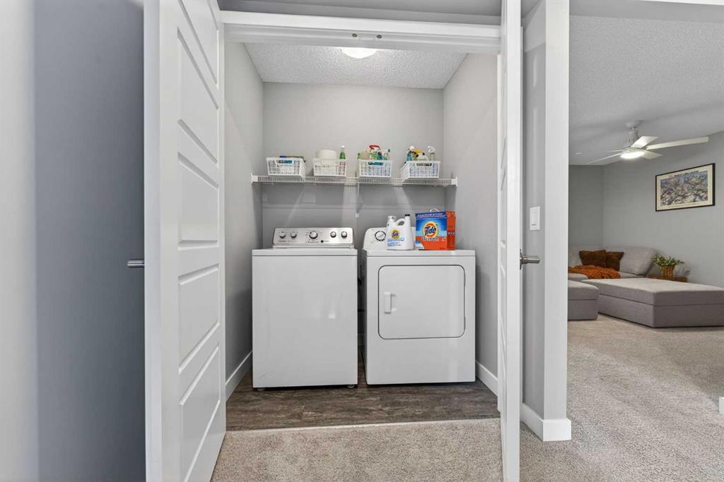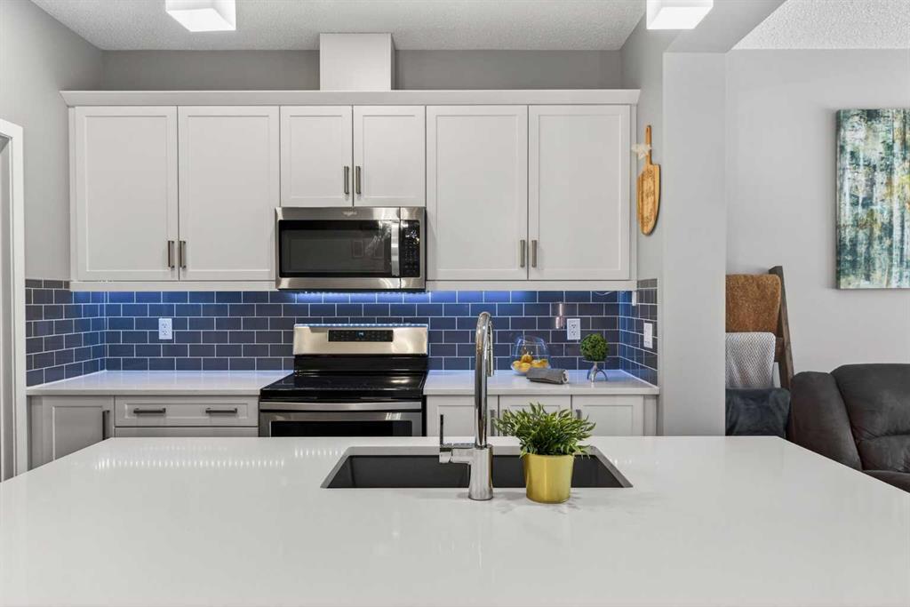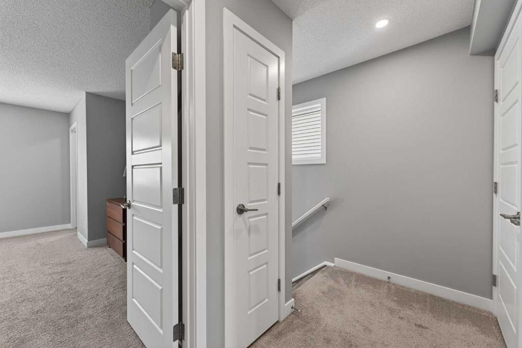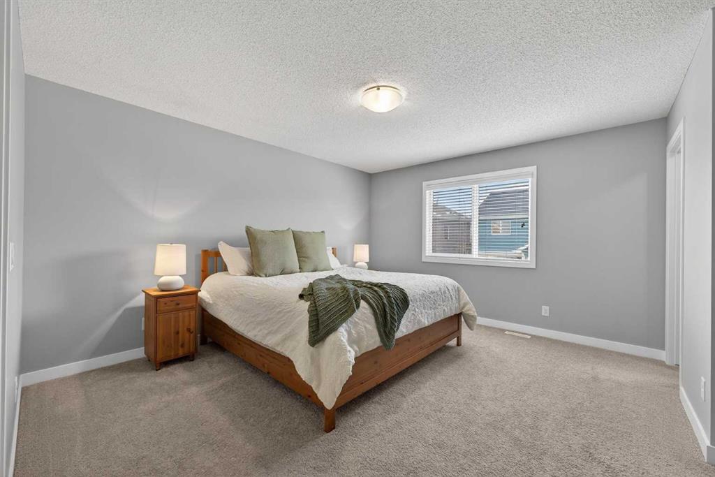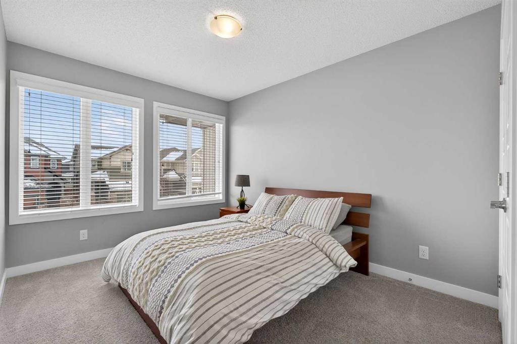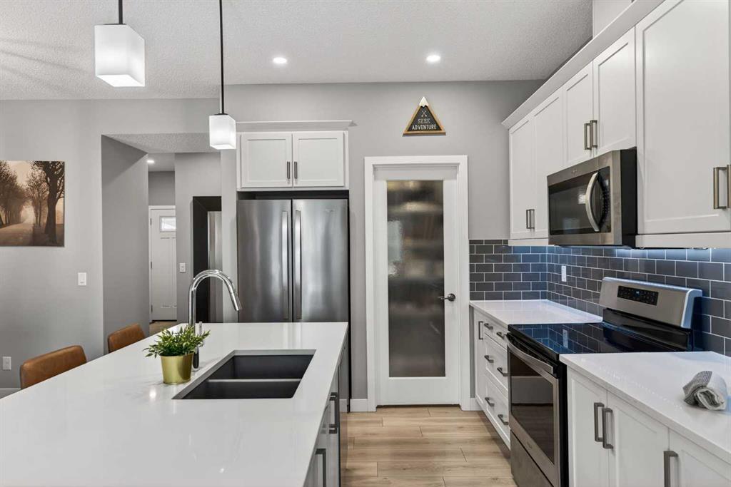 A duplex that doesn’t feel like one, thanks to a layout you don’t often find. With a bonus room upstairs and over 1,500 sqft, this one stands out right away. Built in 2018, this home offers the space, functionality, and flexibility that many buyers hope to find… but rarely do in this price range. Step inside to a bright, open-concept main floor with 9ft ceilings throughout, where the kitchen, dining, and living areas come together seamlessly, creating an amazing space to entertain and for everyone to feel connected. The kitchen is both stylish and practical, complete with quartz countertops, stainless steel appliances, an oversized central island, under-cabinet lighting, a classic subway tile backsplash, and an amazing walk-in pantry for added storage. Upstairs is where this home truly separates itself. In addition to three generously sized bedrooms, you’ll find a bonus room! A feature not often available in similar duplex layouts. Whether you need a home office, playroom, or additional lounge space, this flexible area adds real everyday value. You’ll also appreciate the convenience of side-by-side upper-floor laundry, along with a well-appointed primary bedroom featuring a large walk-in closet and its own ensuite, with a shower. The two additional bedrooms are positioned at the front of the home, providing added privacy for the primary, and are both a great size for kids, guests, or whatever suits your needs. These bedrooms share a full bathroom complete with a tub. The undeveloped basement offers excellent future potential and is already being enjoyed as a gym and hangout space. It also features hot water on demand and is roughed-in for a future bathroom, giving you the option to expand and add value over time. Outside, the low-maintenance composite deck with metal railings creates the perfect setting for summer evenings, while the fenced backyard offers just the right amount of space for kids, pets, or entertaining, without the upkeep of a larger lot. Aspen columnar trees were planted last summer and will continue to mature, offering added privacy as they fill in through the spring and summer, along with beautiful colour in the fall. The single attached garage is drywalled, insulated, and painted, and is currently set up as a functional workshop and storage space, plus there is additional driveway parking. Located within walking distance to scenic ponds and pathways, and just minutes to Deerfoot Trail for an easy commute into Calgary, this home offers a really convenient lifestyle. You’re also close to amenities like CrossIron Mills, along with a pump track over in Lanark Landing, plus all the everyday shopping, dining, and services Airdrie has to offer. With a layout that just makes sense, modern finishes throughout, and a location that offers both lifestyle and convenience, this home delivers exceptional value in today’s market.
