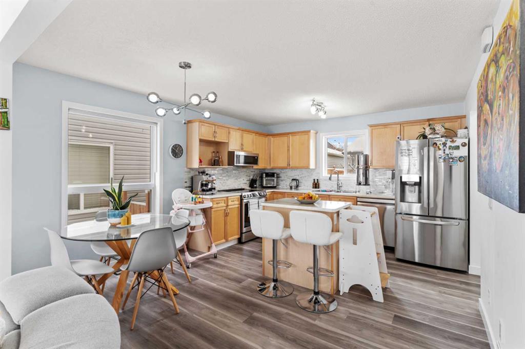 Welcome to 219 Silverado Plains Close SW, a 2-storey detached home located on a quiet street in the community of Silverado. Built in 2008, this property sits on a rectangular lot with back lane access and offers a functional layout suitable for everyday living. The main level features a comfortable living area, kitchen with ample cabinetry and workspace, and a dining area with access to the backyard. Upstairs you will find well-sized bedrooms along with a full bathroom. The finished basement provides additional living space suitable for recreation, work, or storage and includes a bathroom rough-in, offering potential for future development. This home also features a double detached garage with back lane access, providing convenient parking and storage. Appliances included are refrigerator, electric stove, dishwasher, microwave hood fan, washer, dryer, and window coverings. Exterior updates include a new roof and siding completed in 2022. The property is located close to parks, playgrounds, shopping, and other local amenities, with convenient access to major roadways.