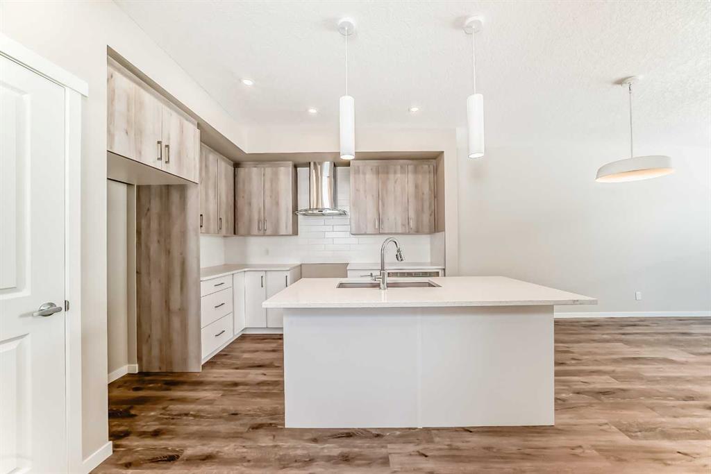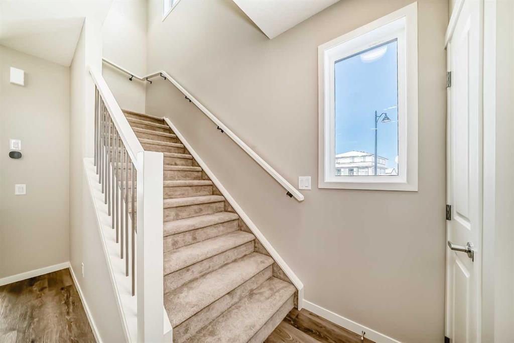 Welcome to the Barwell in Mahogany, an intelligently designed laned home that blends everyday function with elevated lifestyle appeal in one of Calgary’s most sought after lake communities. Offering 1,515 sq. ft. of thoughtfully planned living space, this brand new home delivers the comfort, style, and flexibility today’s buyers are looking for. The main floor is bright and inviting, featuring 9’ ceilings and durable luxury vinyl plank flooring throughout. At the front of the home, the spacious living room creates a warm and welcoming place to relax or gather with guests, while the heart of the layout unfolds into a beautifully arranged L-shaped kitchen with sleek quartz countertops, contemporary cabinetry, and plenty of prep and storage space. Just beside it, the generous dining area is perfectly positioned for family meals, casual entertaining, or hosting friends. Tucked discreetly off the kitchen, a convenient pocket office adds valuable versatility for working from home, managing daily routines, or creating a dedicated study space. Upstairs, the layout continues to impress with three well-proportioned bedrooms, including a spacious primary retreat designed to feel like a true escape. The ensuite features a tile-to-ceiling shower that adds a polished, upscale touch to your daily routine. Thoughtful finishing details such as painted spindle railings on the main level and knockdown ceiling texture contribute to the home’s clean, modern aesthetic. A separate side entrance opens the door to future possibilities in the basement, whether for extended family, added flexibility, or future income potential (a secondary suite would be subject to approval and permitting by the city/municipality). The basement also includes a wet bar rough-in, making it even easier to bring your future development ideas to life. One of the standout features of this property is the lot itself. The oversized side yard offers a rare opportunity for buyers who value outdoor space and flexibility. Whether you envision an expansive backyard retreat, room for kids or pets to play, a stunning outdoor entertaining area, or even the potential for a larger garage configuration, this unique lot gives you options that are hard to find in this style of home. It’s the kind of space that lets you truly create your dream backyard. Beyond the home itself, Mahogany is a community that needs little introduction. Known for its four-season lake lifestyle, residents enjoy access to Calgary’s largest lake, private beaches, a Beach Club, extensive parks and playgrounds, and over 22 kilometres of community pathways, along with natural wetlands and scenic open space. Local shops, restaurants, and everyday amenities are also woven into the community, making it easy to enjoy both convenience and recreation close to home. It’s a neighbourhood built around connection, outdoor living, and lifestyle—where summer days can be spent at the lake, evenings on the pathways, and everyday errands are just minutes away.