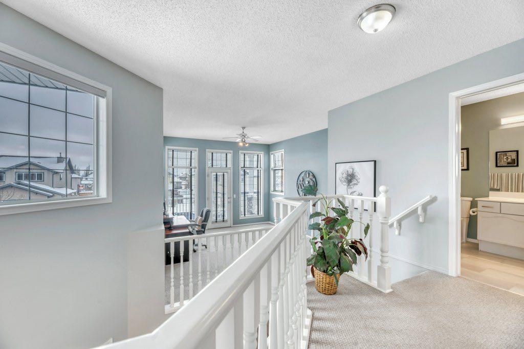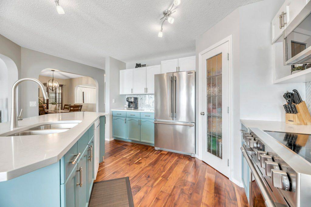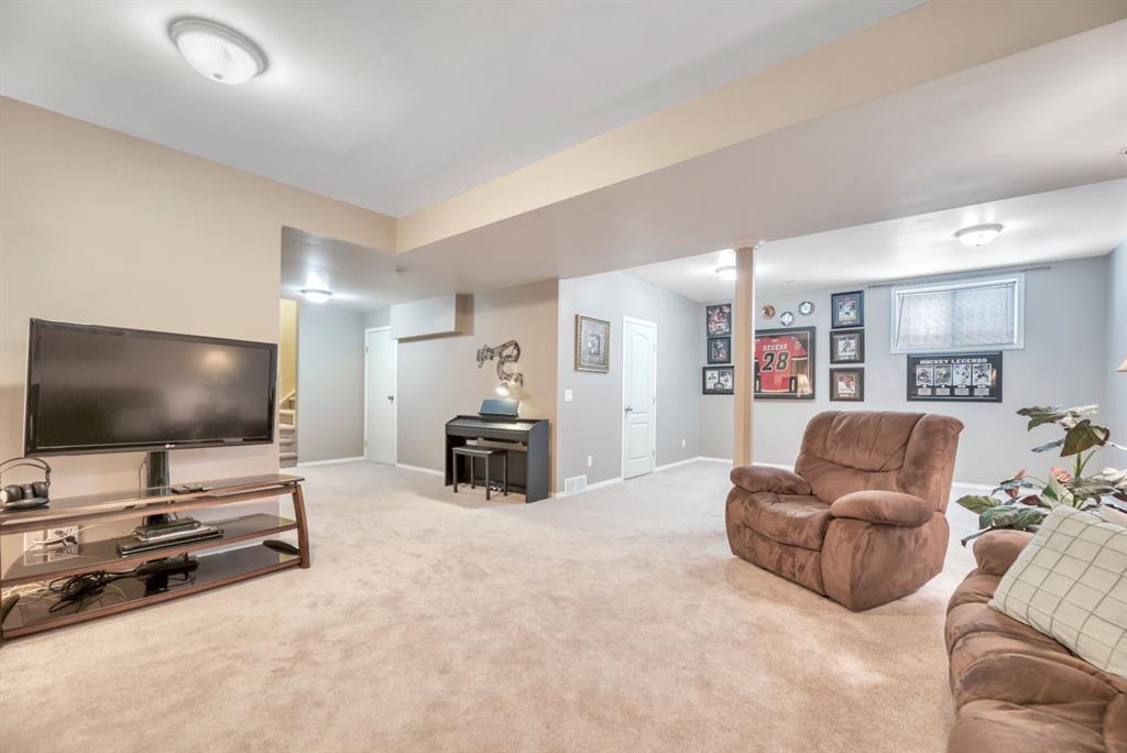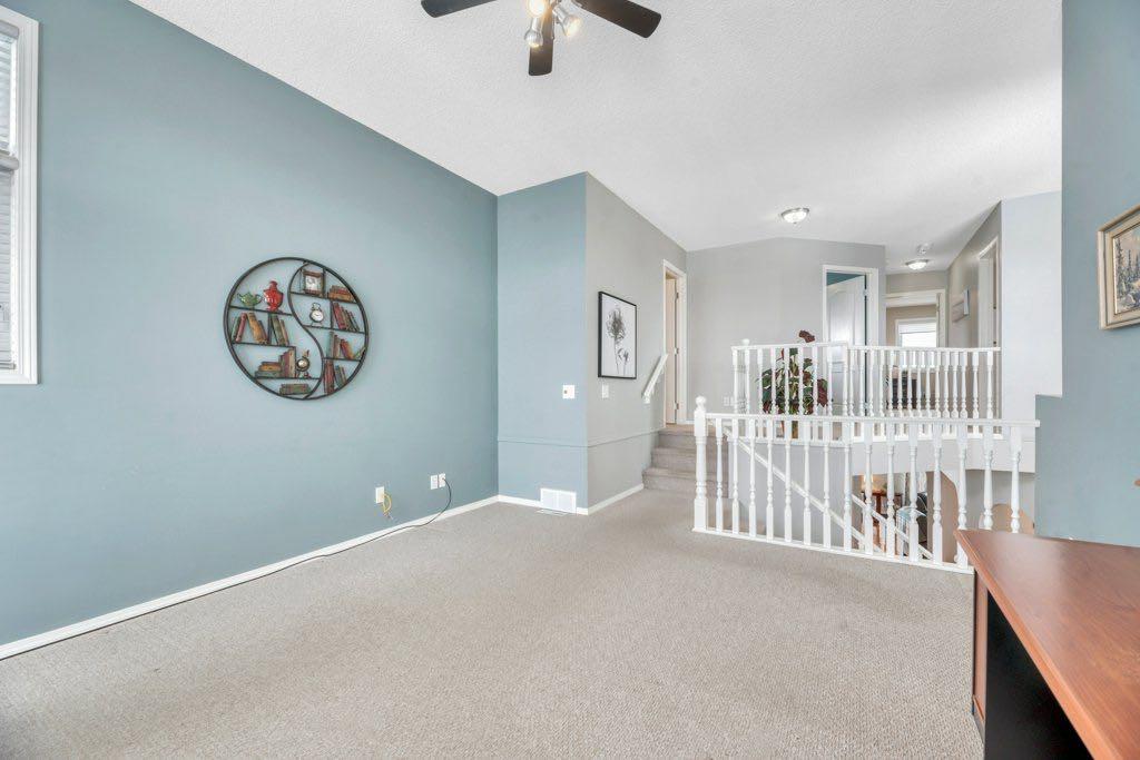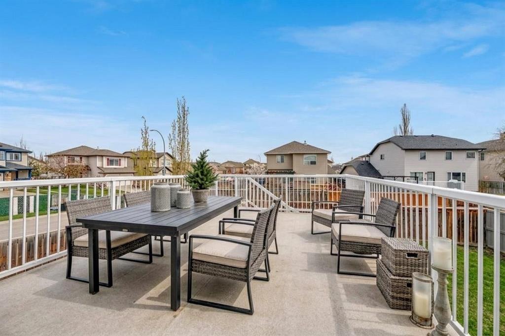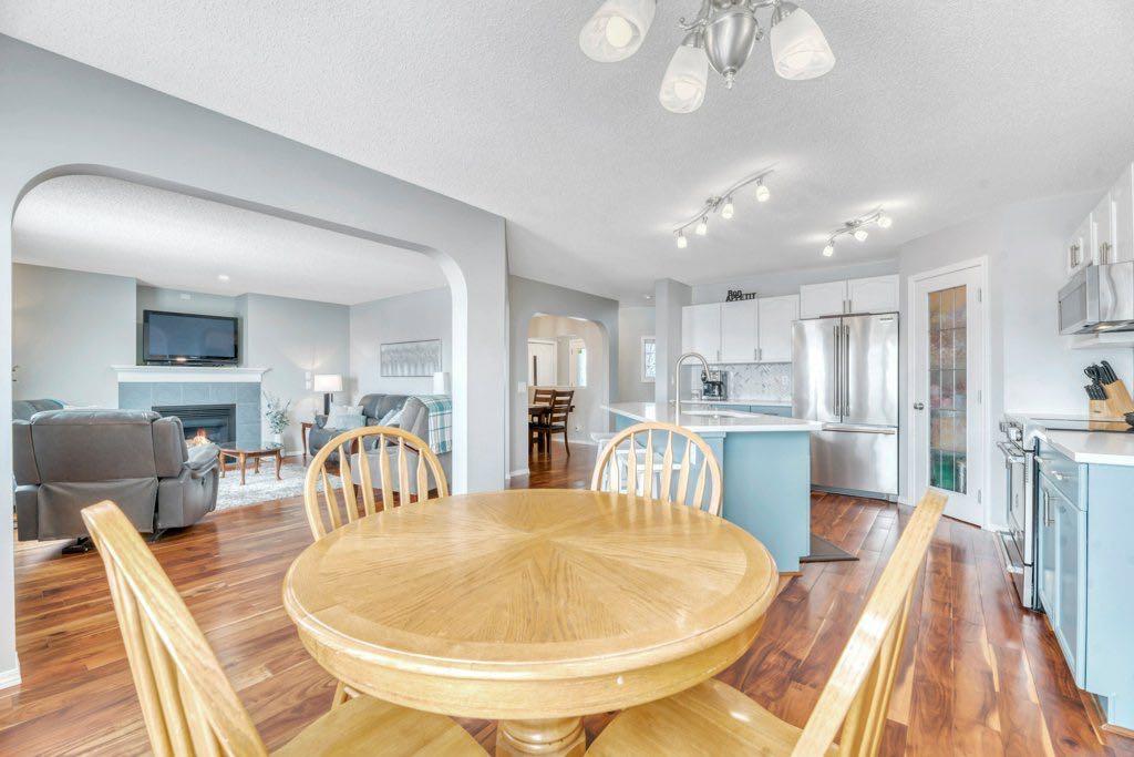 This picture perfect 2 story home in popular Westmere has been lovingly maintained and beautifully upgraded. Step into the front foyer where soaring ceilings and tons of natural light instantly give you that welcome home feeling. A front flex room with arched openings can be used as a formal dining room, home office or maybe a cozy reading nook or music room. The kitchen is like a breath of fresh air with cheery blue and white painted cabinets, white quartz counters, herringbone tile backsplash, stainless steel fridge & stove, a corner pantry and large island with seating. The kitchen is open to both the eating area and the cozy living room complete with a gas fireplace for warmth and ambience. The open layout is ideal for both everyday living and entertaining. An abundance of natural light, and gorgeous rich wood flooring throughout make this space feel bright and open. A 2 pc powder room and laundry are discreetly tucked a couple of steps down from the main level and conveniently situated close to the garage entry. Upstairs you’ll first come to the bright and sunny bonus room located on its own level. This room features a vaulted ceiling, tons of windows and the best little covered deck where you can relax with your morning coffee or curl up with a book and enjoy a beautiful sunset with a glass of wine. This just might be the best room in the house. Up a few more stairs you’ll find 3 generous bedrooms including the spacious primary retreat complete with 4 pc ensuite with soaker tub and a nice walk in closet. The other 2 bedrooms share the main bath and there is a nice sized storage closet in the main hall. The fully finished basement offers endless opportunities to expand your living space as needed and 9’ ceilings and large windows make it bright and welcoming. This is a nice sized family room complete with a cozy gas fireplace and an additional area connected could be used as a games room, kids playroom or home gym. This space could quite easily be converted to a 4th bedroom if needed and the storage room right next to it is roughed in for a bathroom. Outside you’ll enjoy a large backyard that is almost fully fenced and the large deck off the kitchen and eating area has enclosed storage underneath. There is plenty of room for kids and pets to play in the yard plus a back lane behind means that you can store a boat, ATV or small RV in your yard. There is also 220 amp power available if you want to run power to a small shop, shed or hot tub. This home is in an ideal location close to shopping, restaurants, bars, gyms, the library, the lake & beach as well as the many gorgeous parks and pathways Westmere has to offer including a huge off leash dog park. There is even a playground just down the street. Plus you are close to both major routes in and out of Chestermere for an easy commute. Don’t miss your chance to call this beautiful home yours.