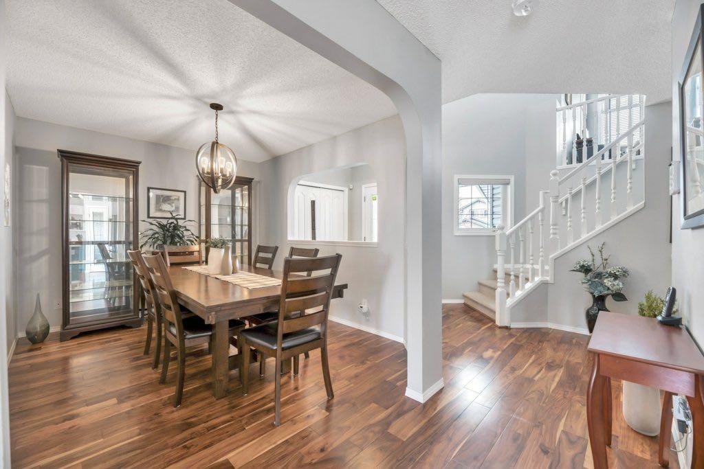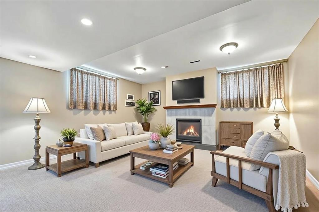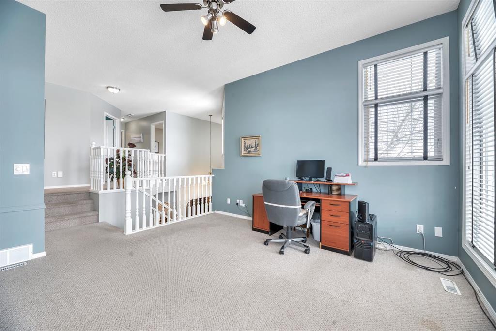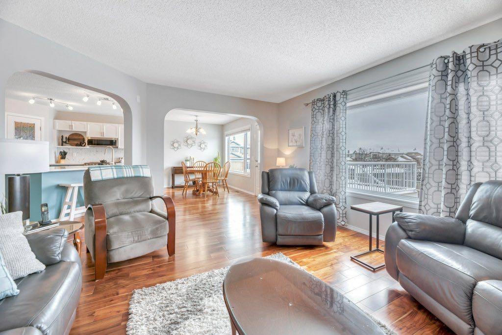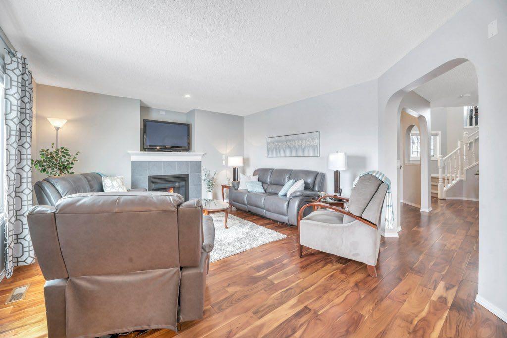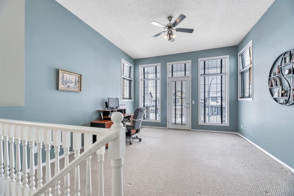 This picture perfect 2 story home in popular Westmere has been lovingly maintained and beautifully upgraded. Step into the front foyer where soaring ceilings and tons of natural light instantly give you that welcome home feeling. A front flex room with arched openings can be used as a formal dining room, home office or maybe a cozy reading nook or music room. The kitchen is like a breath of fresh air with cheery blue and white painted cabinets, white quartz counters, herringbone tile backsplash, stainless steel fridge & stove, a corner pantry and large island with seating. The kitchen is open to both the eating area and the cozy living room complete with a gas fireplace for warmth and ambience. The open layout is ideal for both everyday living and entertaining. An abundance of natural light, and gorgeous rich wood flooring throughout make this space feel bright and open. A 2 pc powder room and laundry are discreetly tucked a couple of steps down from the main level and conveniently situated close to the garage entry. Upstairs you’ll first come to the bright and sunny bonus room located on its own level. This room features a vaulted ceiling, tons of windows and the best little covered deck where you can relax with your morning coffee or curl up with a book and enjoy a beautiful sunset with a glass of wine. This just might be the best room in the house. Up a few more stairs you’ll find 3 generous bedrooms including the spacious primary retreat complete with 4 pc ensuite with soaker tub and a nice walk in closet. The other 2 bedrooms share the main bath and there is a nice sized storage closet in the main hall. The fully finished basement offers endless opportunities to expand your living space as needed and 9’ ceilings and large windows make it bright and welcoming. This is a nice sized family room complete with a cozy gas fireplace and an additional area connected could be used as a games room, kids playroom or home gym. This space could quite easily be converted to a 4th bedroom if needed and the storage room right next to it is roughed in for a bathroom. Outside you’ll enjoy a large backyard that is almost fully fenced and the large deck off the kitchen and eating area has enclosed storage underneath. There is plenty of room for kids and pets to play in the yard plus a back lane behind means that you can store a boat, ATV or small RV in your yard. There is also 220 amp power available if you want to run power to a small shop, shed or hot tub. This home is in an ideal location close to shopping, restaurants, bars, gyms, the library, the lake & beach as well as the many gorgeous parks and pathways Westmere has to offer including a huge off leash dog park. There is even a playground just down the street. Plus you are close to both major routes in and out of Chestermere for an easy commute. Don’t miss your chance to call this beautiful home yours.