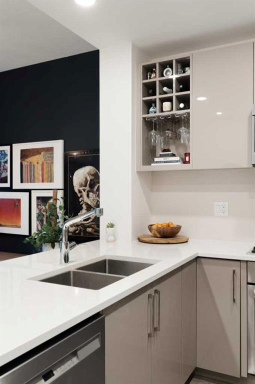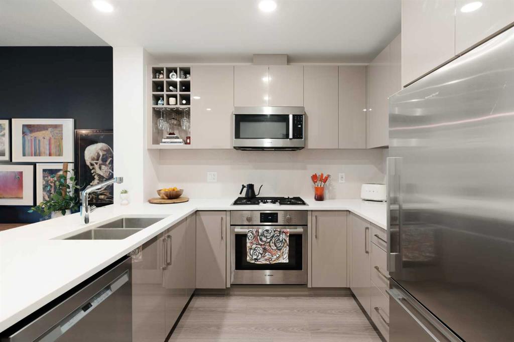 Welcome to this beautifully appointed property that features nearly 600 square feet of living space and is situated in one of Calgary's most sought-after community of Kensington/Hillhurst. This 1-bedroom, 1-bathroom unit is located on the third level of a pet-friendly and quiet concrete building and features low condo fees, offering a great opportunity for first-time buyers or investors. The open-concept main living area offers hard surface flooring, 9-foot ceilings, and a wall of West-facing windows that allow natural light to flood the space. The kitchen features stainless steel appliances, including a built-in gas cooktop and a new dishwasher, quartz countertops, a double sink with a new garburator, and a large peninsula with a breakfast bar for additional seating. The kitchen overlooks the dining and living areas - making this the perfect space for entertaining friends or family. The spacious primary bedroom can comfortably accommodate a king-sized bed and offers a walk-through closet with built-ins and leads to the 4-piece bathroom featuring a deep soaker tub, a walk-in shower with a complete glass surround, and a large floating vanity. Step outside onto your covered West-facing balcony that offers the perfect space to enjoy those warmer summer days. Completing this unit is a spacious in-unit storage room that features a new washer and dryer. Additional features include central air conditioning, a separate assigned storage locker, an underground titled parking space to keep your vehicle safe and out of the elements, secure bike storage, and a car wash bay. Located in the heart of Kensington/Hillhurst, this property is steps away from restaurants, cafes, shopping and entertainment. Within only a 2 minute walk, you have top restaurants like Hayden Block, The Mash, Blanco Cantina, Satsuki, and Pulcinella. Daily commuting is easy with the nearby Sunnyside LRT station and quick access to Memorial Drive & 16th Avenue. Don’t miss out on this incredible opportunity that offers exceptional value and inner-city living at its finest.