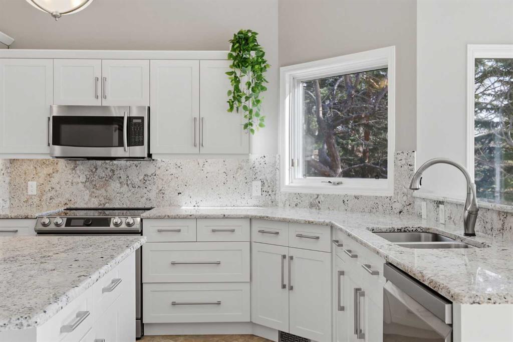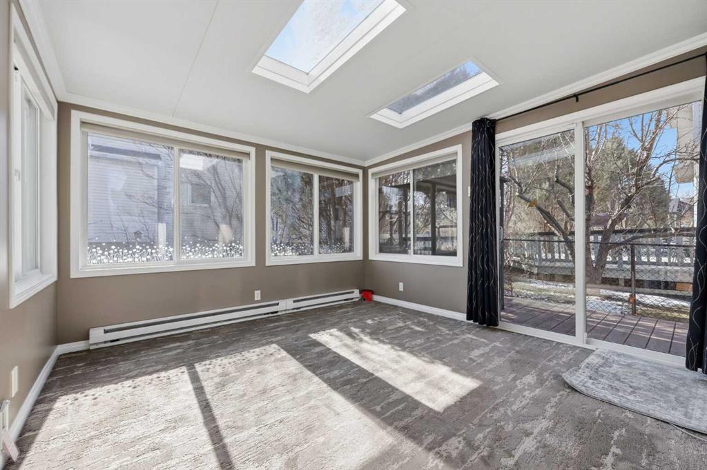 OPEN HOUSE SAT and SUN 12:00-2:00 All the Poly-B has been replaced. Welcome to this beautifully updated home in the desirable Douglasdale Estates, perfectly located just one block from Fish Creek Park and the Bow River. Thoughtfully renovated from top to bottom, this 3-bedroom bungalow blends modern comfort, efficiency, and timeless design. Bright and inviting, the interior features large windows, fresh paint, and high ceilings that create an airy sense of space. The renovated kitchen showcases granite countertops, stylish cabinetry, and an easy flow into the casual dining space and attached 4 season sunroom—ideal for entertaining family and friends. Updated bathrooms and tasteful finishes throughout add to the home’s appeal. Every major system has been upgraded for efficiency and peace of mind: all Poly-B plumbing removed, new hydronic furnace and air conditioner, new hot water on demand, solar panels, and a new electrical panel. A brand-new triple-pane bay window enhances both comfort and curb appeal, while low utility costs make this home as practical as it is beautiful. The lower level is large and inviting with a natural light flooding in from the wall of south facing windows. The oversized attached double garage offers ample parking and storage, and the Gemstone outdoor lighting system adds a touch of year-round elegance. Underground automatic sprinkler system ensures all the fruit trees and perennials are healthy and beautiful. Enjoy easy access to pathways, parks, the community golf course, nearby shops and restaurants, and major highway connections. This is a bright, efficient, and wonderfully located home in one of Calgary’s most established and scenic neighbourhoods.