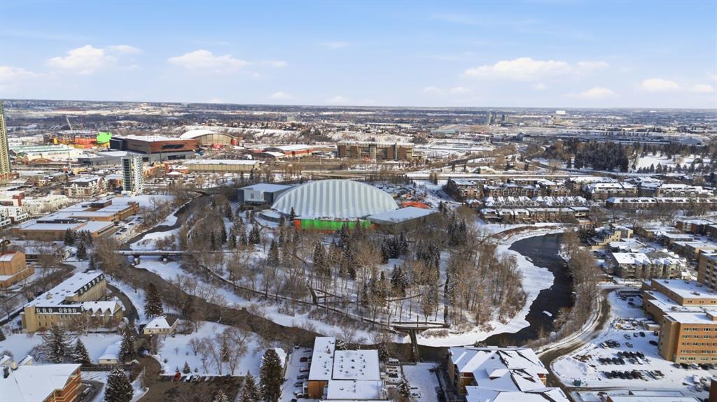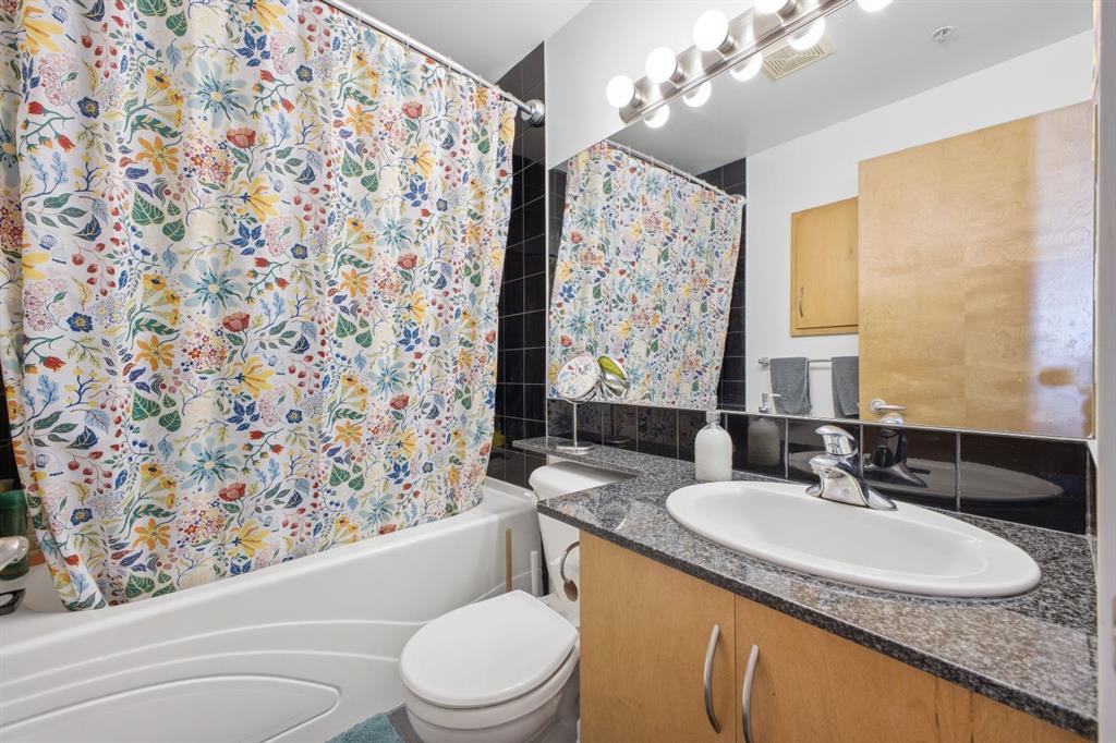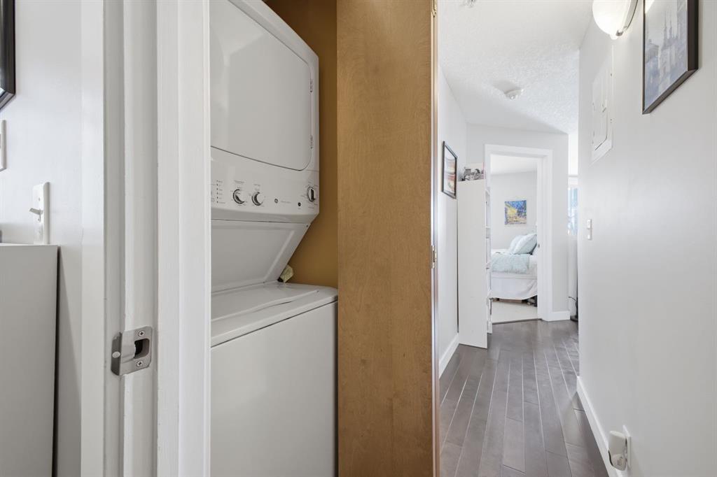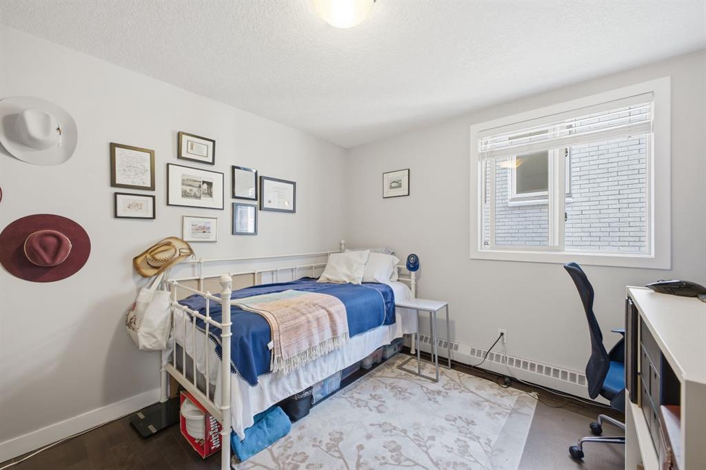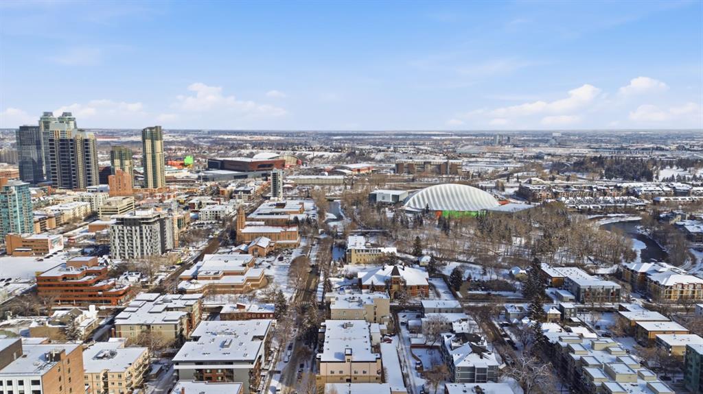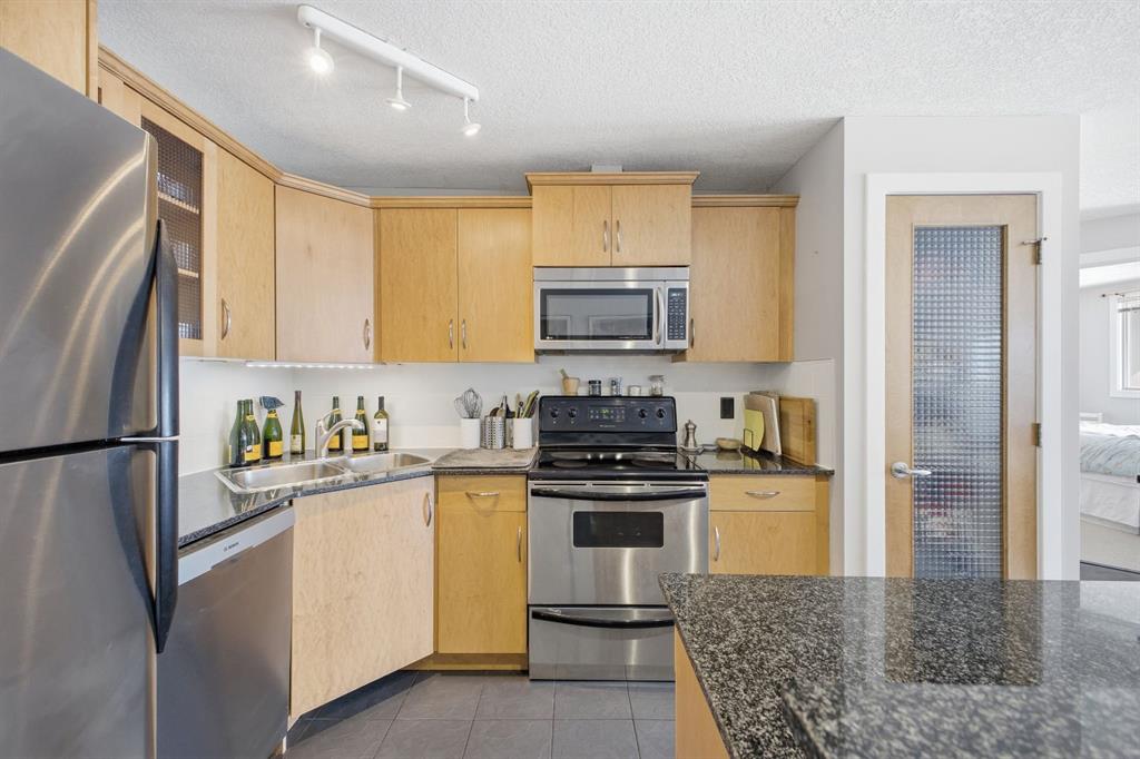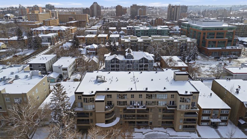 Charming 2-bedroom, end-unit, concrete construction condo with a sunny south-facing balcony, perfectly positioned in the heart of Mission. This inviting home features an open layout with hardwood and tile flooring, a well-appointed kitchen with granite countertops, an island with seating, stainless steel appliances, a pantry, and a comfortable dining area. The spacious living room opens directly onto the balcony, creating an effortless indoor–outdoor connection. Both bedrooms offer generous closet space, and the updated 4-piece bathroom adds a fresh, modern touch. Additional conveniences include in-suite laundry, titled underground parking, an assigned storage locker, and the value of all utilities included in the condo fee. The location is exceptional—just steps to the vibrant shops, restaurants, cafes, and pubs along 17th Avenue and 4th Street, with easy access to public transit, the MNP Community & Sport Centre, Stampede Park, and the scenic river pathways.
