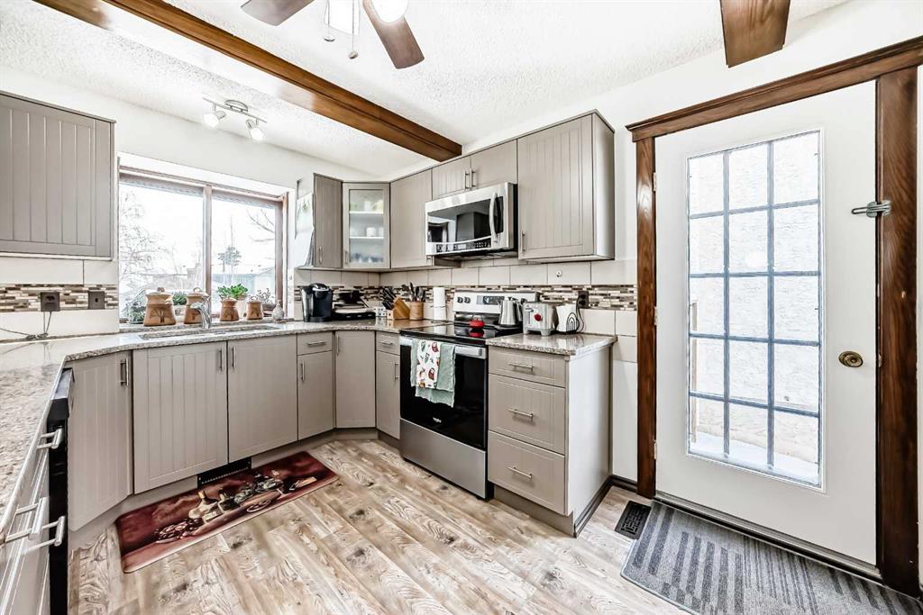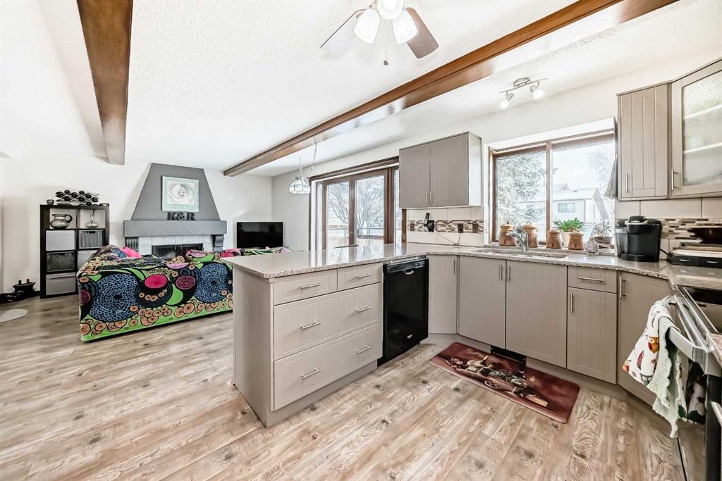 Move-in ready and well cared for, this Coach Hill home is also a great opportunity for someone looking to add their own cosmetic updates over time. Located close to the core while still tucked away from the noise, the home was built in 1980 and features distinctive design elements that still work well for modern living. The vaulted ceiling in the living room is the standout feature, paired with tall west-facing windows that bring in plenty of natural light. Mature trees provide privacy and help shade the home during hot summer afternoons. Some main level windows and patio door were upgraded in 2023, and the exterior was repainted in 2022. The main floor offers well-defined living spaces while still maintaining an open feel. The dining area flows naturally into the vaulted living room, creating a great space for gathering. At the back of the home, the kitchen and family room have a cozy feel with a fireplace, wet bar, and easy access to the large back deck with built-in hot tub. The kitchen has been thoughtfully updated over the years and includes a newer stove (2021) and dishwasher (2022). A natural gas line makes BBQ season easy. The upper level includes three bedrooms, and the spacious stair landing offers enough room for a small office or reading nook. The backyard also offers space for additional vehicle parking or RV storage. Mechanical updates include central air conditioning (2020), garage door and opener (2019), a new hot water tank (2025), and a high-efficiency furnace with humidifier installed in 2025 with ducts cleaned the same year. Additional features include a garburator and a fireplace log lighter. A great opportunity for buyers looking for a home with character, solid upgrades, and an opportunity to make cosmetic upgrades over time.