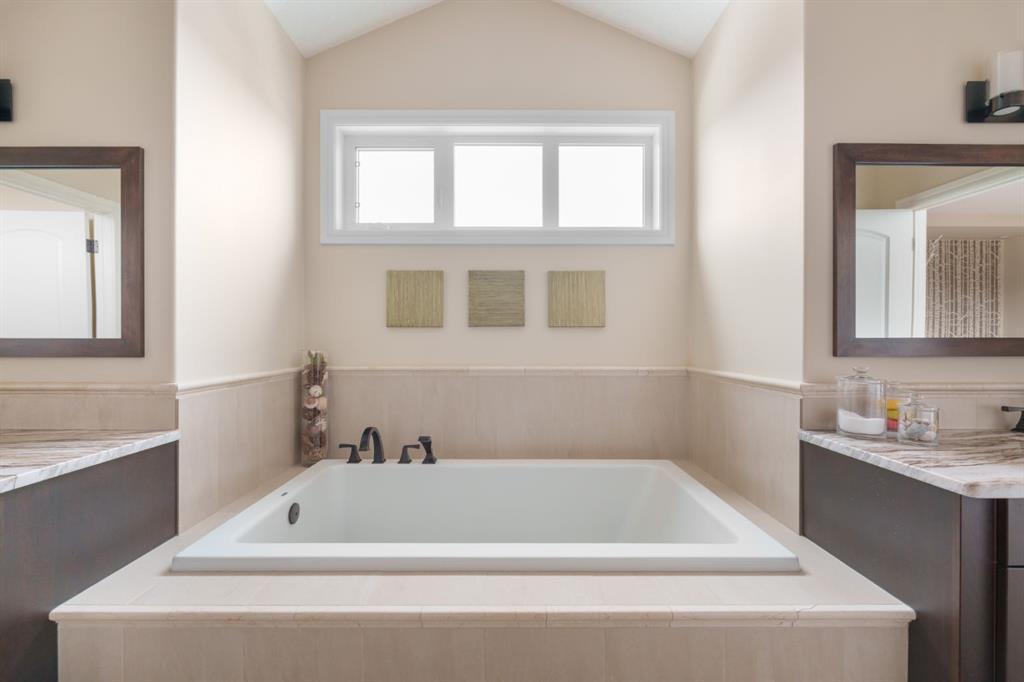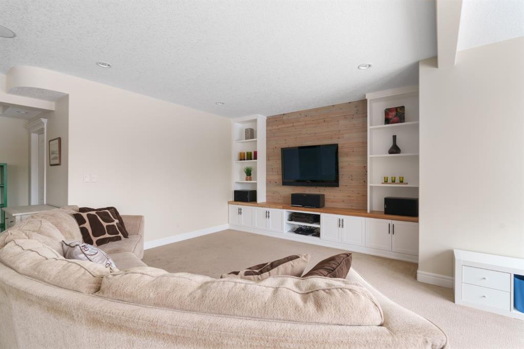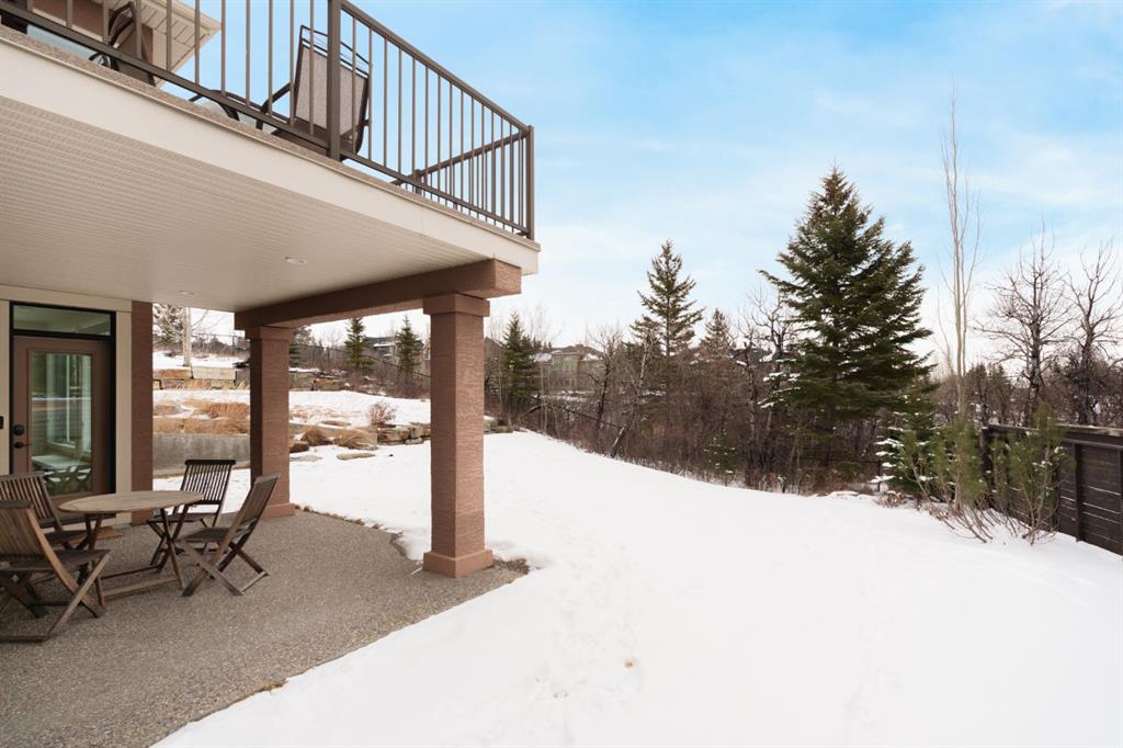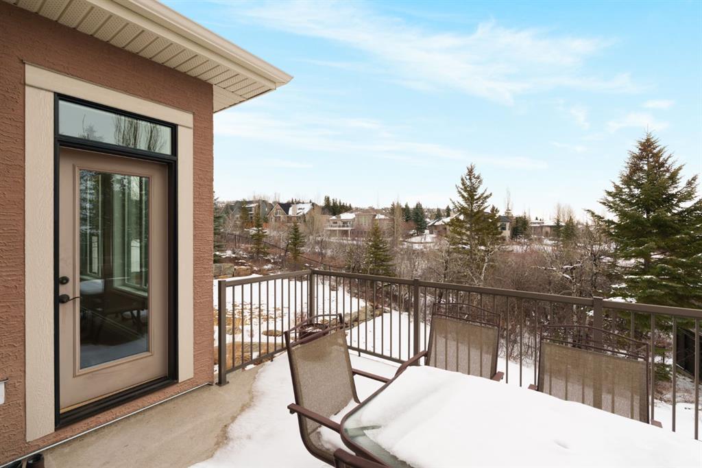 A rare opportunity on Calgary’s Westside… this estate home sits on a quiet cul de sac, on a .27 acre pie-shaped lot, backing a ravine and nature trail. You will be calmed by the sound of frogs at night, and birds singing in the morning, watching the deer from your deck, this is a space your kids will love to explore and likely where your mornings and evenings will begin walking the dog through the ravine system as it meanders north – a PEACEFUL SPACE – WONDERFUL! All of this is centrally located with ease of access to Calgary’s finest schools and the amenities we love here on the Westside. This home is a two storey walkout, measuring 4,185 sq ft over three levels, 3 beds and a Bonus Room up with a 4th bed and full bath down and an OVER-SIZED, HEATED 3 car garage. Highlights include 10 foot ceilings on the main, 9 feet up & down, wide plank hardwoods through the main, granite counters throughout, designer lighting and window coverings, B/I speakers, central A/C, irrigation and more. On the main you will love the open plan, which draws you through to the Great Room in back, a wall of windows and direct access to the deck and the SIGHTS & SOUNDS of NATURE. The kitchen features an over-sized center island, granite counters in a “leather” finish, a Bosch gas cooktop and wall oven and a wine fridge. The kitchen is open to the dining space, overlooking the ravine – NICE! There is also a private Den/Home office on the main with custom built-ins. Upstairs, a large Bonus Room under a 13’ ceiling, SPACIOUS and BRIGHT. The Primary Bedroom sits at the back of the home, overtop of the ravine and enjoys a wonderful 5pc en suite and steam shower! The two additional beds up are well-sized and share a 4pc bath. The walkout level is fully finished offering a wide open space to accommodate a media space, a games space, a 4th bed and full bath… with direct access to your over-sized rear yard… BACKING THE RAVINE – this is an AMAZING location.