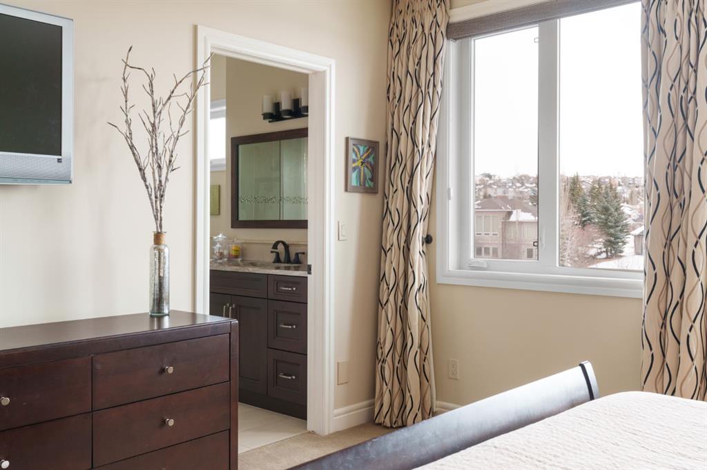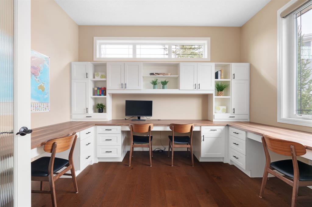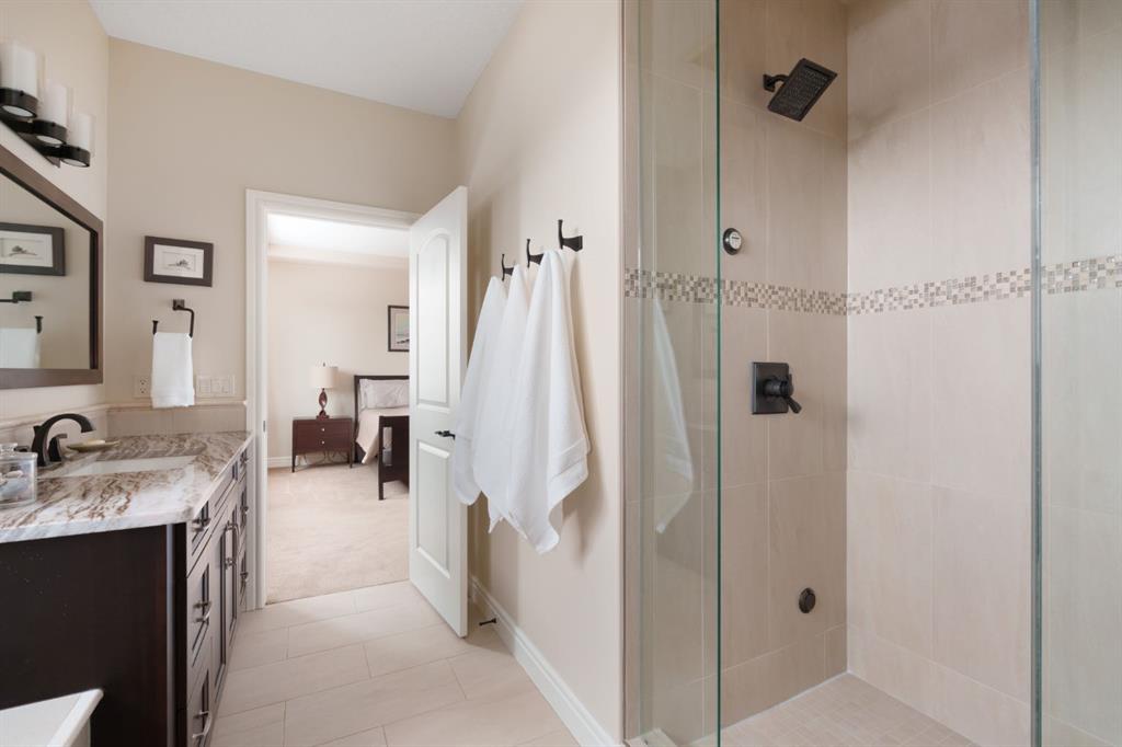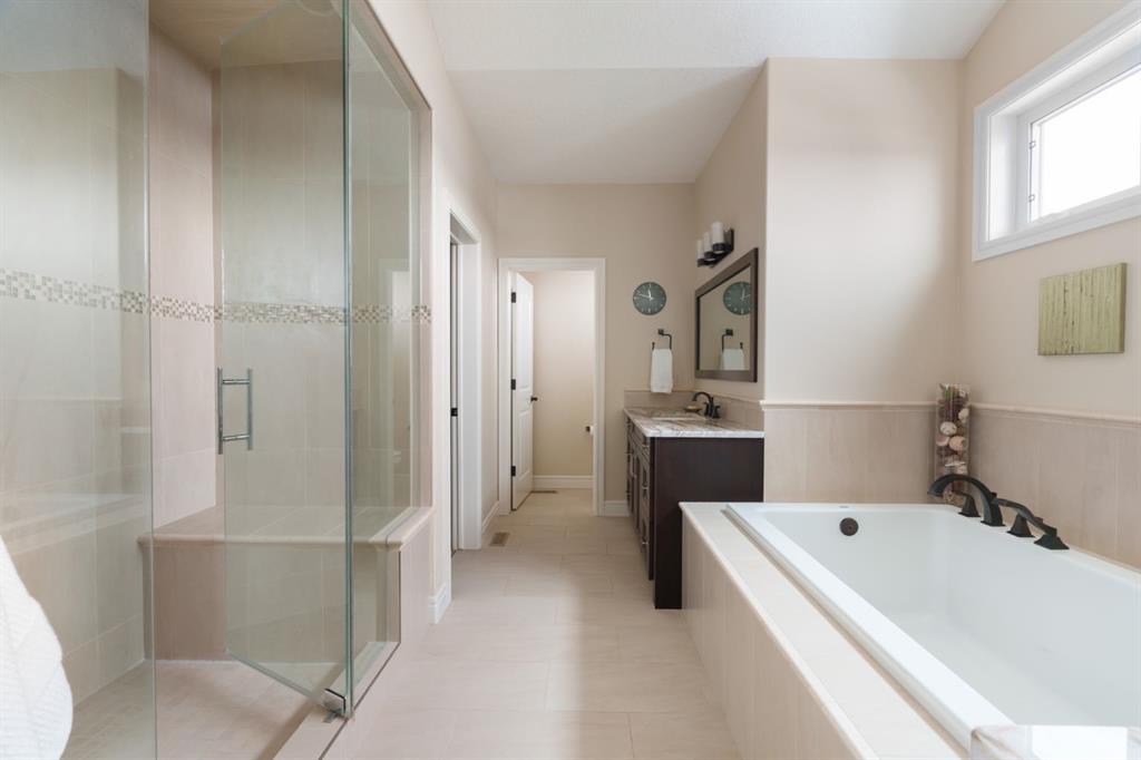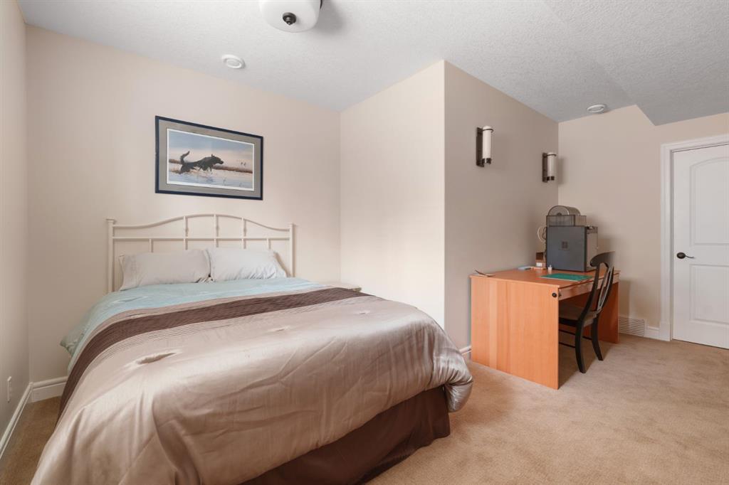 A rare opportunity on Calgary’s Westside… this estate home sits on a quiet cul de sac, on a .27 acre pie-shaped lot, backing a ravine and nature trail. You will be calmed by the sound of frogs at night, and birds singing in the morning, watching the deer from your deck, this is a space your kids will love to explore and likely where your mornings and evenings will begin walking the dog through the ravine system as it meanders north – a PEACEFUL SPACE – WONDERFUL! All of this is centrally located with ease of access to Calgary’s finest schools and the amenities we love here on the Westside. This home is a two storey walkout, measuring 4,185 sq ft over three levels, 3 beds and a Bonus Room up with a 4th bed and full bath down and an OVER-SIZED, HEATED 3 car garage. Highlights include 10 foot ceilings on the main, 9 feet up & down, wide plank hardwoods through the main, granite counters throughout, designer lighting and window coverings, B/I speakers, central A/C, irrigation and more. On the main you will love the open plan, which draws you through to the Great Room in back, a wall of windows and direct access to the deck and the SIGHTS & SOUNDS of NATURE. The kitchen features an over-sized center island, granite counters in a “leather” finish, a Bosch gas cooktop and wall oven and a wine fridge. The kitchen is open to the dining space, overlooking the ravine – NICE! There is also a private Den/Home office on the main with custom built-ins. Upstairs, a large Bonus Room under a 13’ ceiling, SPACIOUS and BRIGHT. The Primary Bedroom sits at the back of the home, overtop of the ravine and enjoys a wonderful 5pc en suite and steam shower! The two additional beds up are well-sized and share a 4pc bath. The walkout level is fully finished offering a wide open space to accommodate a media space, a games space, a 4th bed and full bath… with direct access to your over-sized rear yard… BACKING THE RAVINE – this is an AMAZING location.