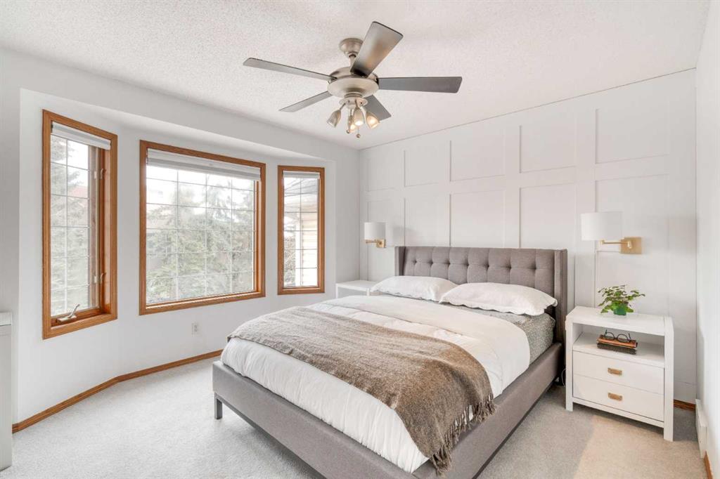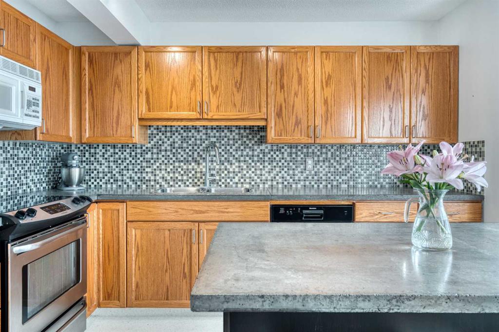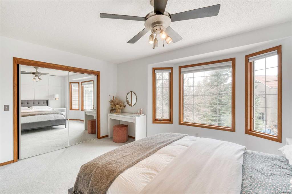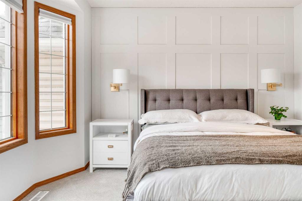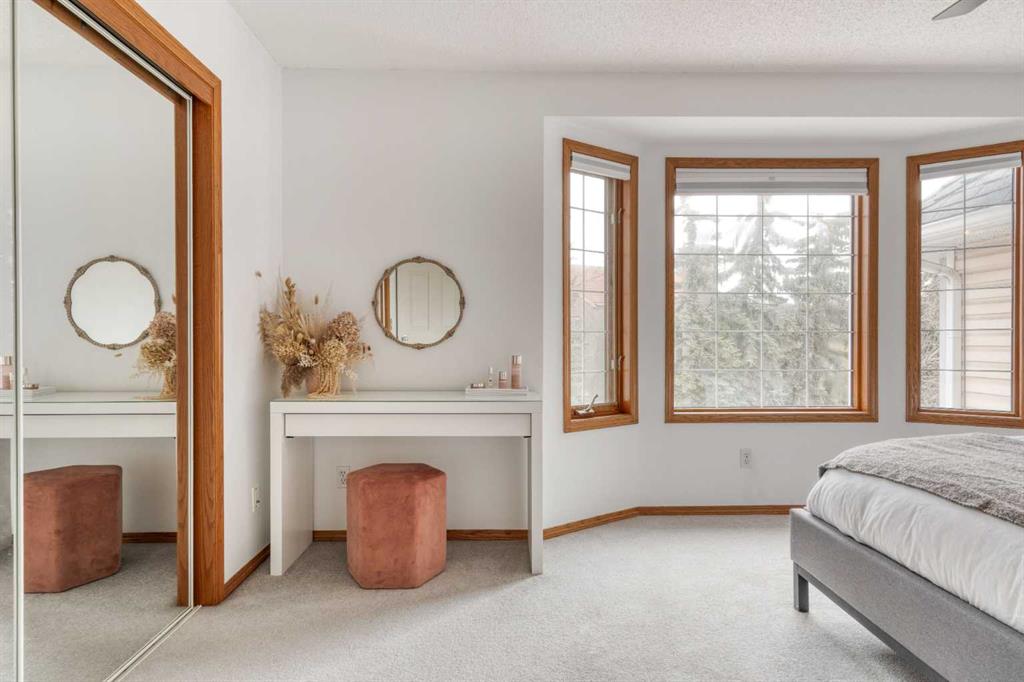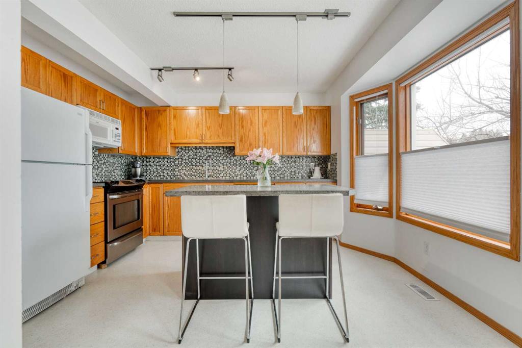 Welcome to 5 Patina Point SW, a tastefully updated 2 bedroom, 1.5 bath townhome offering 1,340 sq. ft. of comfortable living space in the highly desirable community of Patterson on Broadcast Hill. Surrounded by mature trees, abundant green spaces, and sweeping city views from the community, this location offers the perfect balance of convenience and nature right outside your front door. Step inside to a functional foyer entry that leads up to the open concept main living area, where you’ll find solid oak hardwood floors, a wall of bay windows overlooking the trees, filling the space with natural light, and a cozy gas fireplace offering an inviting setting for relaxing evenings or hosting family and friends over the holidays. The updated kitchen features oak cabinetry, custom concrete countertops, a generous island, and direct access to the private back deck overlooking a green space the ideal spot for morning coffees or warm summer dinners. Upstairs, you'll find a very large primary bedroom with a custom feature wall, a second well-sized bedroom, and an updated 4-piece bathroom complete with a large corner soaker tub. A bright loft area offers the perfect spot for a home office, reading nook, or additional family lounge space. The attached double garage provides secure parking for two vehicles plus a driveway stall, making parking effortless and storage abundant, a rarity with inner city living! Perfectly positioned just steps from transit, minutes to downtown, and with easy access to the mountains, this townhome offers an unbeatable lifestyle and value. Don’t miss your chance to own in one of Calgary’s most sought after communities!
