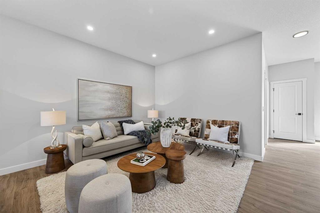 Welcome to 420 Lewiston Landing. This well-laid-out, brand-new Genesis home offers over 1,700 sq ft of above-grade living space. The main floor features a bright, open living and dining area with a functional kitchen that includes ample prep space, beautiful cabinetry, and sleek stainless steel appliances. The main floor is a dream for entertaining, and those summer evenings are calling you with direct access to the rear deck and backyard. A convenient main-floor bedroom and a full 3-piece bath add flexibility for guests, family, or a home office. Upstairs, you’ll find three bedrooms, including a spacious primary with a walk-in closet and a private ensuite. Two additional bedrooms share a full bath, and the upper laundry keeps daily routines simple. The lower level remains undeveloped, offering 9' ceilings and a side entrance, providing a blank canvas for future plans, whether you’re considering additional living space, a gym, or extra storage. Lewiston is a new, award-winning master-planned community in Northeast Calgary, Alberta, designed to blend nature with urban convenience. Located near Stoney Trail and Deerfoot Trail, it offers quick access to downtown (20 mins) and the airport making this a great place to call home. *RMS has been applied to construction plans provided by the builder and taxes are to be assessed.