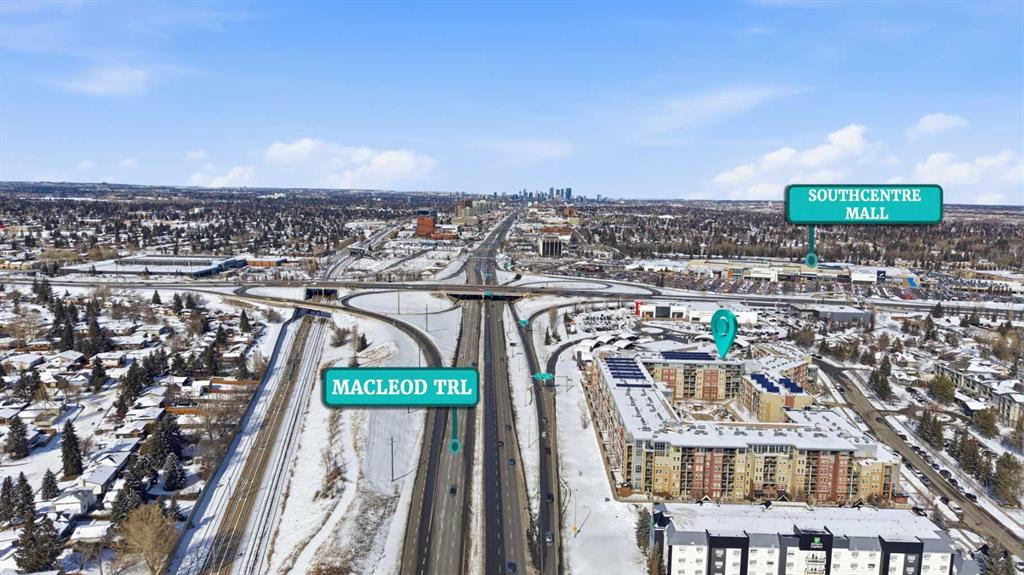 Positioned on the top floor in one of the most desirable spots in the complex, this is the kind of condo that elevates everyday living—quiet, private, and framed by sweeping views of Calgary’s downtown skyline. This penthouse-level unit stands out immediately with its larger windows, allowing natural light to pour into both the living room and bedroom while showcasing those incredible city views. Designed with a modern, low-maintenance lifestyle in mind, it’s an ideal fit for a single professional or couple looking for comfort, style, and convenience in one refined package. The kitchen is both functional and polished, featuring granite countertops, stainless steel appliances, a built-in microwave, and rich espresso cabinetry complemented by a sleek black backsplash. The central island offers a great space for casual dining, morning coffee, or entertaining friends before a night out. The open-concept living area flows seamlessly to your private balcony—complete with a gas line for BBQing—where you can unwind at the end of the day with skyline views as your backdrop. Central air conditioning ensures year-round comfort, while the concrete construction provides excellent sound insulation and a sense of quiet that’s hard to find in apartment living. You’ll also appreciate the titled, secure underground parking stall, along with access to an impressive list of building amenities including guest suites for visiting friends or family, a fully equipped fitness centre, and a stylish party room for hosting gatherings. Location here is truly unbeatable. You’re just steps from Southcentre Mall, the CTrain LRT, and the ever-popular Avenida Food Hall & Fresh Market, along with everyday conveniences like cafes, boutique shops, and a wide range of dining options. Whether you’re starting your day with a quick commute or ending it with a view, this top-floor unit offers a seamless blend of lock-and-leave convenience, elevated design, and one of the best vantage points in the building.