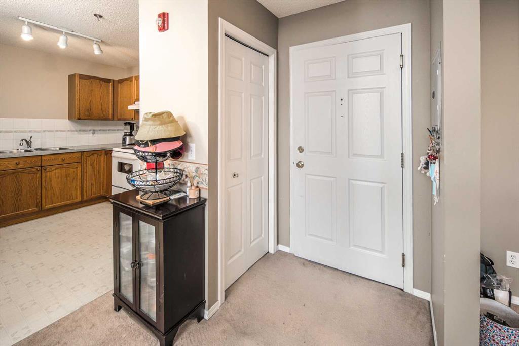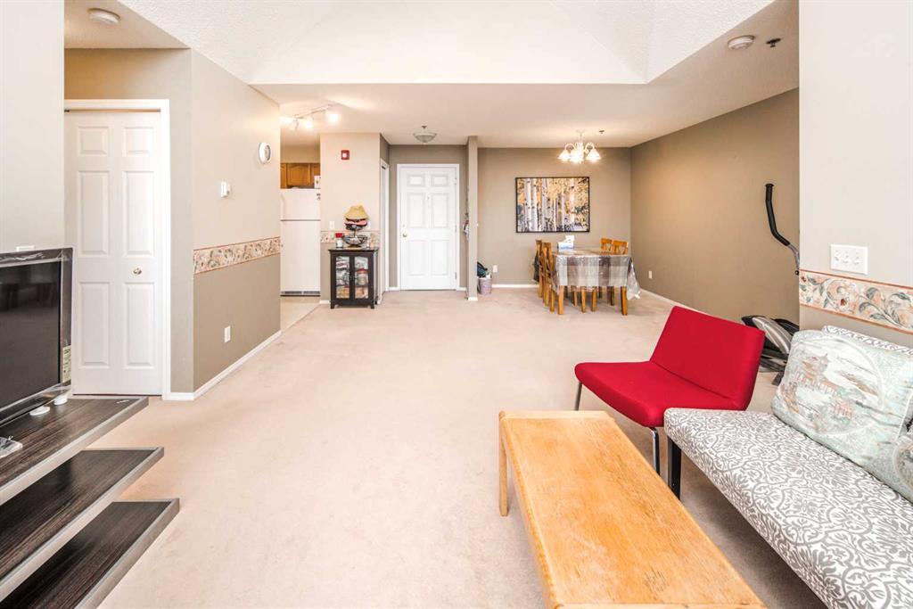 Welcome to this beautifully maintained TOP-floor unit. This bright, open condo offers comfortable living with vaulted ceilings and a spacious living room featuring elegant French doors that open to a sunny south-facing balcony, complete with a gas line for BBQs. The unit includes a large primary bedroom with a walk-through closet and a full ensuite, a second bedroom ideal for guests or a home office, a well-sized kitchen, a formal dining area, a 4-piece main bathroom, and convenient in-suite laundry. With neutral colours throughout and two ceiling fans, the home feels airy, modern, and move-in ready. Ideally located, this property is within walking distance of grocery stores and restaurants, just 400 meters from T&T Supermarket, and less than a 5-minute drive from nearby parks and green spaces. Schools are just about a 6-minute drive away, making it a great option for families. You’ll also enjoy close proximity to a golf course, movie theatres, Vivo (Cardel Place), Rexall, 7-Eleven, Tim Hortons, and easy access to Deerfoot Trail, Stoney Trail, and the airport. Public transit is highly accessible, including the 301 express bus to downtown. The unit also comes with one heated underground assigned parking stall, offering added comfort during the winter months. Don’t miss your chance to make it yours—book your private showing today!