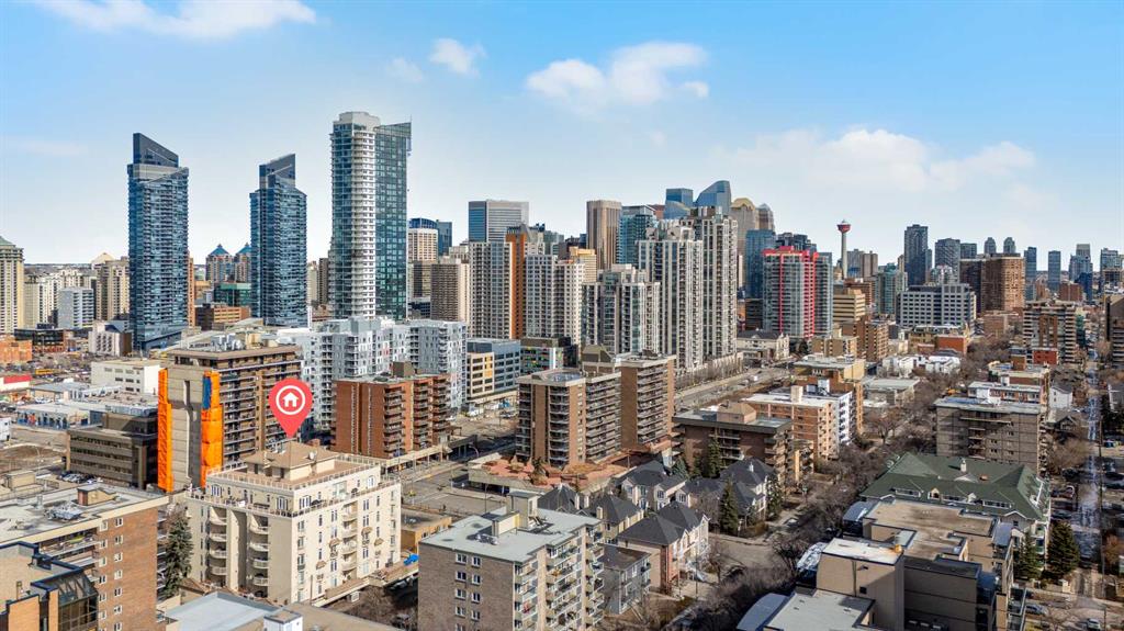 Mark your Mark at The Monoco! Welcome to Unit 401 —an exceptional corner unit in the heart of Connaught, one of Calgary’s most vibrant and walkable inner-city communities. Just minutes to downtown and steps from the energy of 17th Avenue, this 2 bedroom, 2 bathroom condo offers the perfect blend of style, comfort, and location. This bright, move-in ready home features 9’ ceilings and a well-designed open-concept layout that maximizes both space and natural light. The kitchen is beautifully appointed with granite countertops, stainless steel appliances, maple cabinetry, ceramic tile flooring, a tiled backsplash, and a central island with bar seating—ideal for casual dining or entertaining guests. The spacious living room is anchored by a built-in entertainment unit and flows seamlessly to French doors leading onto your private balcony. As a corner unit, you’ll enjoy expanded sightlines and an abundance of natural light. For an even more impressive experience, take advantage of the building’s rooftop patio, offering incredible views and the perfect setting for entertaining. The primary bedroom is generously sized and features a 4-piece ensuite with a jetted soaker tub, creating a true retreat. A second bedroom provides flexibility for guests, a roommate, or a home office. Both bathrooms have been updated with granite countertops and tiled tub surround and shower. Additional highlights include in-suite laundry and a heated, underground titled parking stall—a must-have for inner-city living. Whether you’re a professional, investor, or looking to enjoy the best of Calgary’s urban lifestyle, this is a rare opportunity in a sought-after location.