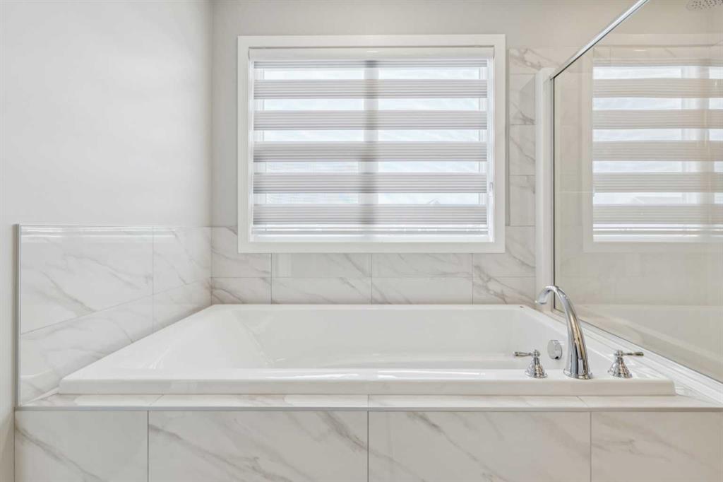 Lake living in Mahogany ~ Located in Calgary’s sought-after lake community of Mahogany, this well-maintained four-bedroom, three-bathroom home offers a practical layout, quality upgrades, and a desirable corner lot location across from green space. CORNER LOT LOCATION ACROSS FROM GREEN SPACE provides added privacy and open views in a quiet, family-friendly setting. The main floor is designed for both flexibility and function, featuring a rare bedroom with direct access to a full cheater ensuite via a pocket door—MAIN FLOOR BEDROOM WITH FULL BATH is ideal for guests, multigenerational living, or a private office. The open-concept layout provides clear sightlines between the living and dining areas, while the kitchen is well-equipped with white cabinetry, granite countertops, a gas cooktop, built-in oven and microwave, hood fan, dishwasher, and a granite sink, complemented by a large central island and walk-in corner pantry for ample prep space and storage. Upstairs includes three generously sized bedrooms, including a primary suite with private ensuite, along with bathrooms finished with quartz countertops, custom built-in closet organizers in all bedrooms, and a convenient upper-level laundry area with washer and dryer; select window coverings, including remote-controlled options, are already installed. SEPARATE SIDE ENTRANCE WITH FUTURE BASEMENT POTENTIAL is supported by a completed stairwell and 9-foot basement ceilings, offering excellent opportunity for future development. Additional upgrades include TWO FURNACES, TANKLESS WATER HEATER, AND SOLAR PANELS, improving efficiency and long-term operating costs, along with a basement freezer and an attached garage roughed-in for a gas heater. Outdoor features include a balcony and a spacious backyard with rear lane access, providing additional flexibility. WALKING DISTANCE TO LAKE, BEACH CLUB, SCHOOLS, AND AMENITIES ensures convenient access to Mahogany Lake, wetlands, pathways, schools, shopping, dining, and nearby Seton amenities including South Health Campus and YMCA, with quick access to Deerfoot and Stoney Trail for an easy commute.