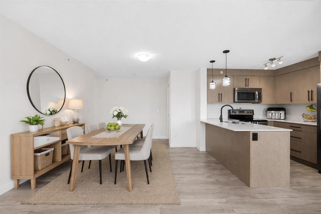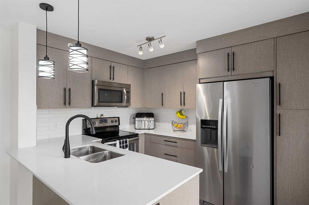 Welcome to this exceptional top-floor corner unit in the sought-after community of Skyview Ranch, Calgary. Offering 839 sq. ft. of beautifully updated living space, this 2-bedroom, 2-bathroom condo combines modern finishes with an unbeatable layout and stunning northwest-facing views—including the rare chance to catch the Aurora Borealis. Recently renovated, the home features brand new flooring, fresh paint, and upgraded quartz countertops throughout. The stylish kitchen is both functional and elegant, complete with stainless steel appliances, ample cabinetry, and sleek finishes, perfect for everyday living and entertaining. The spacious primary bedroom includes a private ensuite, while the second bedroom is ideal for guests, a home office, or roommates. Step out onto your private balcony with a natural gas BBQ line and enjoy open skies and breathtaking views. Additional highlights include underground parking and the comfort of top-floor living. Located close to shopping, dining, parks, and walking paths, with quick access to major routes, this home offers both convenience and lifestyle in one of Calgary’s most vibrant communities. Perfect for first-time buyers, investors, or those looking to downsize—this turnkey condo truly has it all. Don’t miss your opportunity—book your showing today!