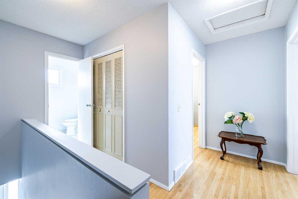 Discover the charm of Braeside Village, a well established and sought after townhome complex located in the mature southwest community of Braeside. Offering approximately 1,120 sq. ft. of developed living space, this home features 3 bedrooms and 1.5 bathrooms an excellent opportunity for growing families, first-time buyers, or investors. Upon entry, you are welcomed by a bright and functional floor plan, recently refreshed with new paint throughout, creating a clean and inviting atmosphere. The spacious living room is filled with natural light, providing a comfortable setting for both everyday living and entertaining. The kitchen is well-appointed with ample workspace for meal preparation. Large windows throughout the main level enhance the home’s warm and airy feel. Hardwood flooring extends across the main and upper levels, adding both character and continuity. The upper level offers three generously sized bedrooms, providing flexibility for family living, home office space, or guest accommodations. A well appointed 4 piece bathroom completes the upper floor and is designed to accommodate busy households with ease. The partially developed basement includes a laundry area, flex room, workshop, and offers excellent storage, along with significant potential for future development to suit your needs. Step outside to a private, west facing fenced yard that backs onto a tranquil, treed green space, perfect for relaxing, gardening, or outdoor enjoyment. The property includes a dedicated parking stall, with additional street parking nearby. An off-leash park adjacent to the complex adds further convenience for pet owners. Residents of Braeside enjoy a welcoming community atmosphere with access to a wide range of amenities. Schools, playgrounds, transit options, and the community centre are all within walking distance. Outdoor enthusiasts will appreciate the close proximity to Braeside Park, Fish Creek Provincial Park, and the Glenmore Reservoir, along with numerous pathways and off-leash areas. The neighbourhood also offers skating rinks, sports fields, and courts for basketball and pickleball. Everyday conveniences, including grocery stores, medical services, Shoppers Drug Mart, cafés, and restaurants are just minutes away. Major amenities such as Southland Leisure Centre, Rockyview General Hospital, Southcentre Mall, CF Chinook Centre, and Avenida Food Hall are all within a short drive. Commuting is convenient with quick access to Stoney Trail (Ring Road) and the nearby Southland C Train Station. This well maintained townhome offers exceptional value, comfort, and location in one of Calgary’s most established southwest communities. Schedule your private showing today.