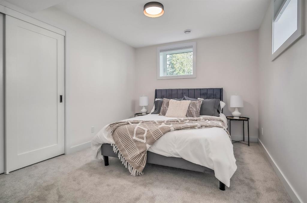 Welcome to this completely renovated bungalow in the desirable community of Richmond. Walk out your back gate and enjoy a large green space and the walking paths to Marda Loop. Located on a quiet street, this location cannot be beat! Enjoy over 2900 sqft of finished living space with an abundance of natural light throughout. This 6 bedroom, 3 bathroom home was professionally renovated with extensive improvements including new hardie board, a new furnace, new insulation, new electrical, new plumbing, and new windows and doors. High end updates to the interior include a brand-new custom kitchen that is perfect for entertaining. The kitchen features floor to ceiling cabinet space, extra lower cabinets throughout the dining room, a separate walk-in pantry with counter space and outlets, and an oversized island with waterfall quartz countertops. The kitchen is outfitted with top of the line Jenn-Air appliances including a gas range and a built in oven and microwave. You will find wide plank white oak engineered hardwood flooring throughout the main floor, heated tile floors in all 3 bathrooms, and new plush carpet throughout the basement. Built in speakers throughout the house make listening to music and entertaining a breeze. The primary ensuite bathroom feels like a spa! Featuring a 6 foot shower, separate soaker tub, and double vanities, this bathroom is sure to impress. The sliding doors from the dining room lead to the brand new deck with a built in privacy screen and new fence. Outside, you will find a new detached oversized double garage with plenty of space for your vehicles and tools. This home sits on a large 50’ X 125” lot, less than 10 minutes from downtown, and easy access to Marda Loop and Crowchild making it the perfect option for inner city living. This home is turn-key, in immaculate condition, and just waiting for it’s new owner to put their special touch on it.