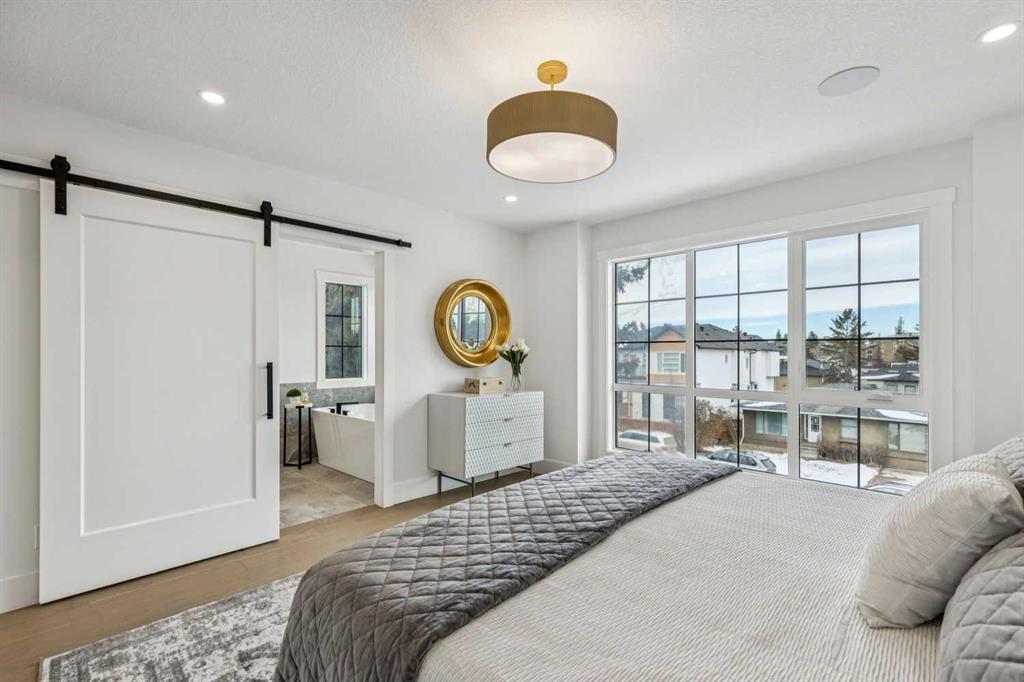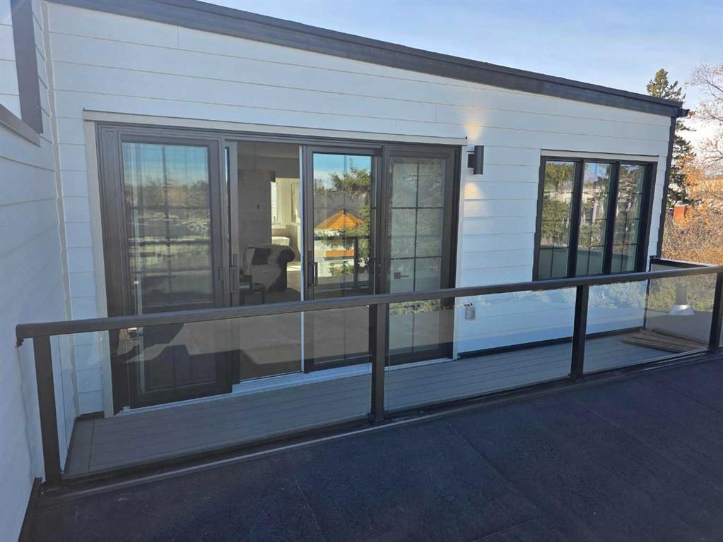 Elevated design and exceptional craftsmanship define this brand new 3-storey home offering over 3,700 sq ft of developed living space, complete with a legal basement suite, in a prime location just steps from Marda Loop amenities and only two blocks from the community centre and park. GREAT CITY VIEWS The open-concept main floor is designed for both everyday living and entertaining, with built-in speakers enhancing the atmosphere throughout. Oversized front windows flood the dining area with natural light, while designer lighting and a striking feature wall add a refined touch. The chef’s kitchen inspires culinary creativity with upgraded stainless steel appliances, a gas stove, full-height two-toned cabinetry, quartz countertops, a built-in bar area, and a large central island that invites connection. Full-height glass doors open to a main floor den, offering a bright and private workspace. The living room is anchored by a gas fireplace with floor-to-ceiling tile, while an entire wall of glass brings in south-facing sunshine and creates seamless indoor-outdoor flow to the rear deck. Upstairs, the primary retreat offers comfort and sophistication with oversized windows, a feature wall, a custom walk-in closet, and a luxurious 5-piece ensuite with dual sinks, a deep soaker tub, and an oversized multi-head rain shower. Two additional bedrooms, a 4-piece bathroom, and a conveniently located laundry room complete this level. The third floor expands the living space with incredible downtown views and flexibility for an additional primary retreat or an elevated bonus room. Enjoy a private balcony, wet bar with beverage fridge and dishwasher, and a lavish 5-piece bathroom—creating the perfect setting for both relaxing and entertaining against a stunning city backdrop. The legal basement suite provides excellent flexibility for multi-generational living or rental income. It features a private entrance, open layout, durable LVP flooring, a full kitchen with stainless steel appliances, dining space, two bedrooms, a 4-piece bathroom, and in-suite laundry. Outdoor living includes a full-width rear deck and a fenced yard for kids and pets, along with a double detached garage for added convenience. Contemporary curb appeal shines through with a refined mix of Hardie board siding, panel cladding, and brick accents. Located just two blocks from the Marda Loop community centre and park, enjoy access to an outdoor pool, beach volleyball courts, tennis and pickleball courts, playgrounds, and green space. Just steps away, explore vibrant cafés, restaurants, boutique shopping, seasonal markets, and nearby schools—offering an exceptional walkable lifestyle. Luxury, flexibility, incredible views, and an unbeatable location come together in this thoughtfully designed home.