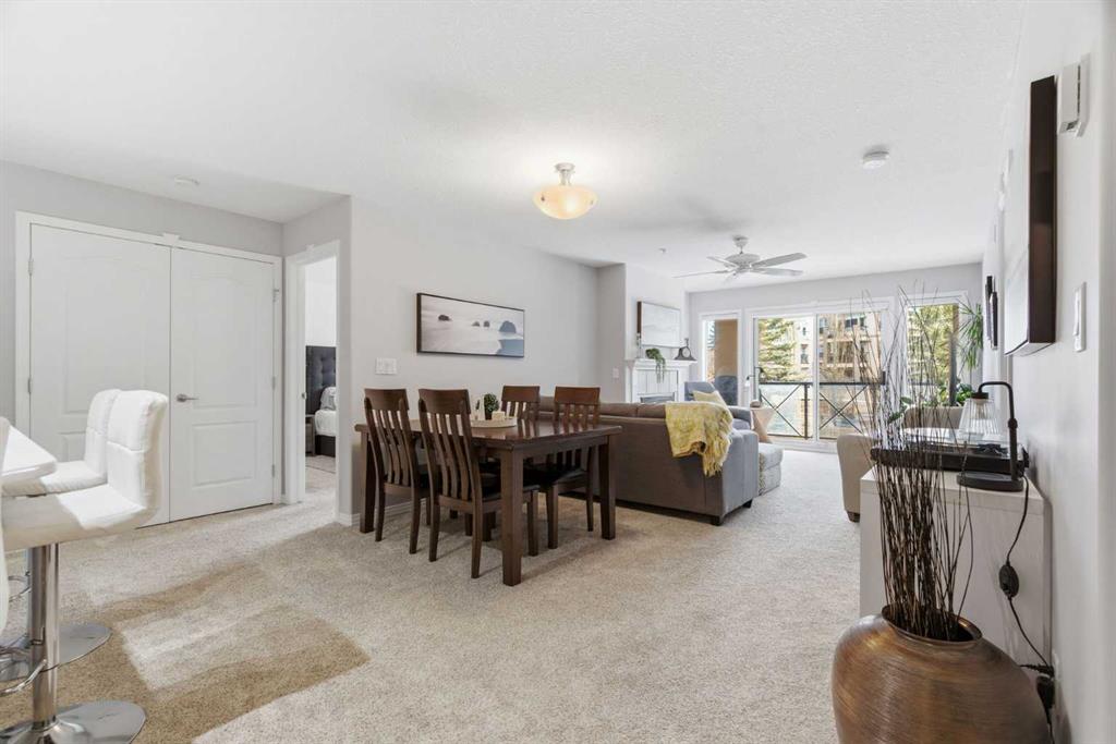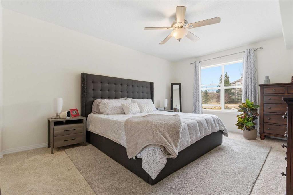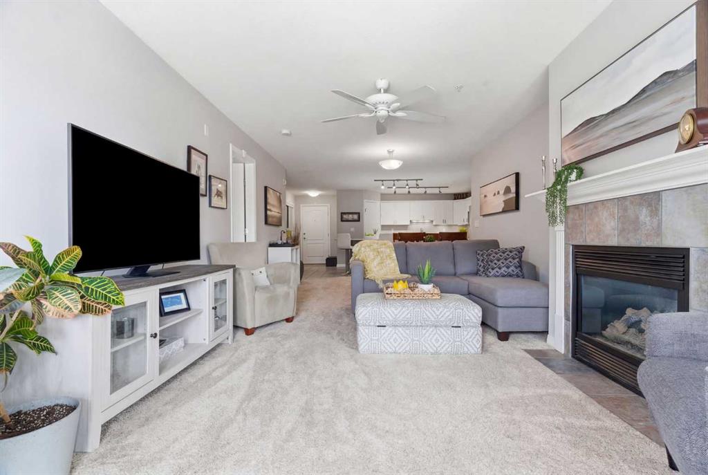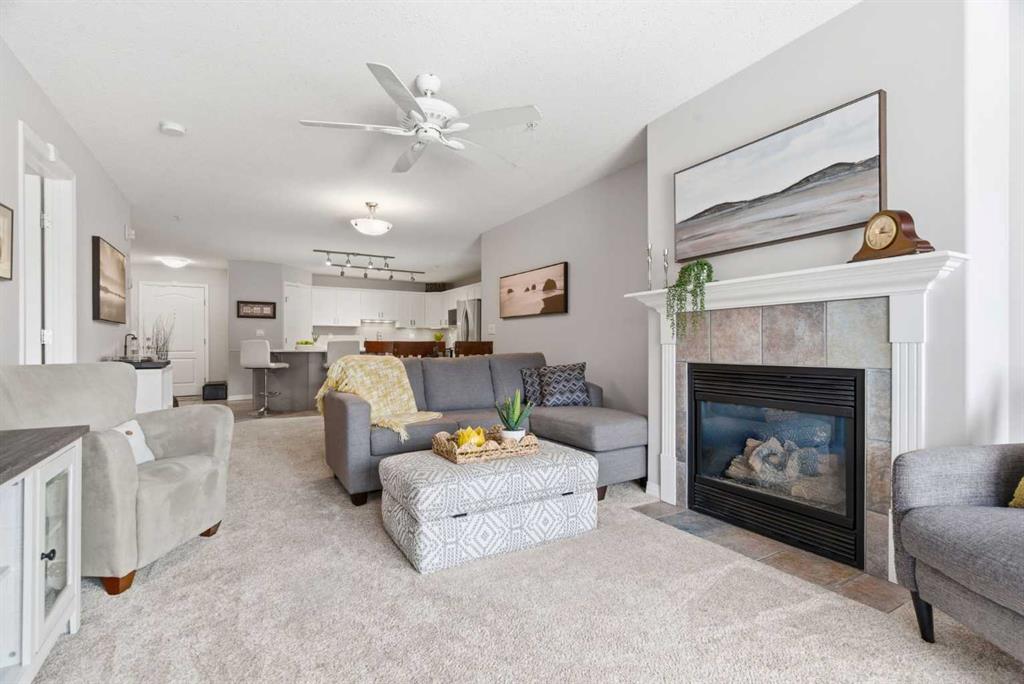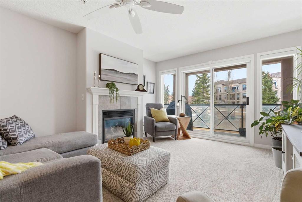 Welcome to the Chateaux of Arbour Lake — where comfort, community, and convenience come together in one beautifully updated home. Nestled within an exclusive adult 18+ complex surrounded by single-family homes, this stunning 2-bedroom, 2-bathroom corner-style unit offers 1,217 sq ft of thoughtfully designed living space in one of the building's most coveted locations — overlooking the serene courtyard and fountain. Step inside and feel right at home. The fully renovated kitchen is a true showstopper, featuring a large island with eating bar, a walk-in pantry, and updated cabinets, all complemented by brand new appliances purchased within the last two years. Whether you're cooking for yourself or entertaining friends, this kitchen delivers. The open-concept living and dining area flows effortlessly to your large private balcony, where you can relax with your morning coffee and enjoy the peaceful fountain views below. A cozy gas fireplace with tile surround makes the living room the perfect place to unwind on cooler evenings. The generous primary bedroom features a walk-through closet leading to a beautiful 4-piece ensuite with soaker tub and tiled floors. A well-sized second bedroom and full 3-piece bath make this ideal for hosting guests or creating a dedicated home office. Fresh new paint throughout gives the entire unit a bright, move-in-ready feel. And the practical details? They're just as impressive. Two titled underground parking stalls — a rare and valuable find — plus two titled storage units, and in-suite laundry round out everything you need for easy, lock-and-leave living. The Chateaux community itself is truly special, offering a fitness center, recreation room, car wash bay, and a beautifully landscaped private park setting with gazebo. All of this just steps from the lake, parks, schools, shopping, and walking paths. This is the lifestyle upgrade you've been waiting for. Welcome home