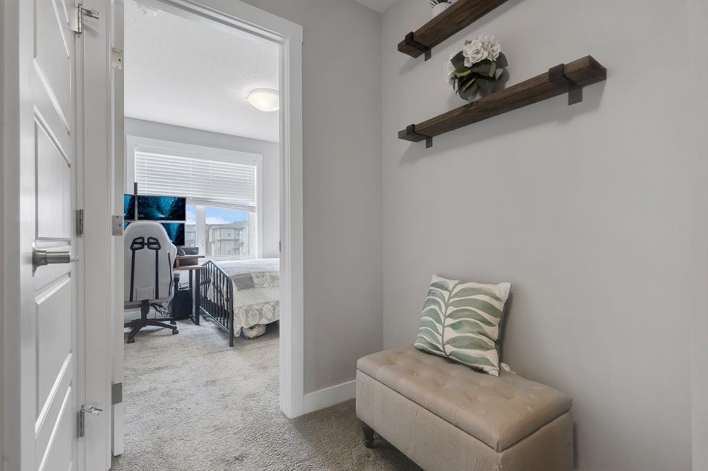 Discover elevated living in this beautifully designed townhome located in the heart of Sage Hill NW Calgary. Situated just steps away from a family-friendly playground, this property offers a rare blend of luxury, functionality, and community charm. Featuring a double master bedroom plan with dual ensuites this 2 Bedroom, 2.5 Baths design plan offers over 1,200+ square feet of luxury low maintenance living. This home features builder upgrades throughout featuring sleek granite countertops, custom shaker style designer cabinetry, premium vinyl plank flooring, high ceilings, stainless steel appliance package, full tile to ceiling around all baths/showers, and glass panelled balcony with gas-line for BBQ. This home blends together he perfect mix of modern style with at home comfort. This homes open floor plan offers natural light through large windows on every level, creating bright and welcoming spaces that feel like home from the moment you walk in.Enjoy the convenience of an attached double car (tandem) garage + full length drive way fro 3 car total parking as well as ease of access along Sage Bluff Gate for additional guest parking. Whether you're entertaining or relaxing, the open-concept layout and thoughtfully designed living areas make this home a standout choice. Offering exceptional value in one of Calgarys premier NW communities and providing quick and easy access to nearby shopping, public transit routes, park & playground spaces, and walking and bike trails this is an opportunity not to be missed!