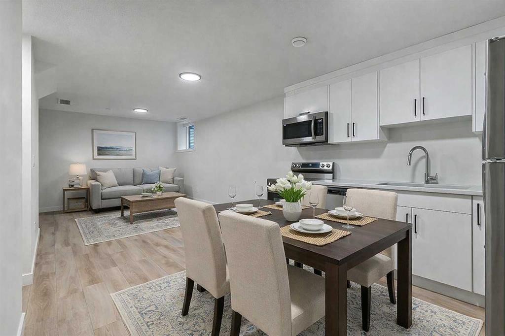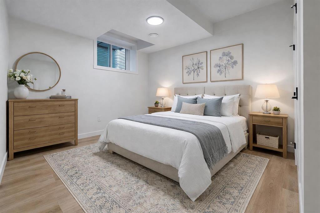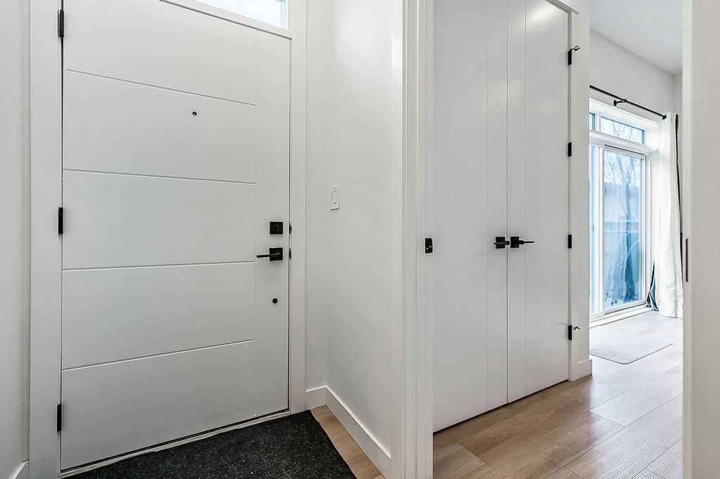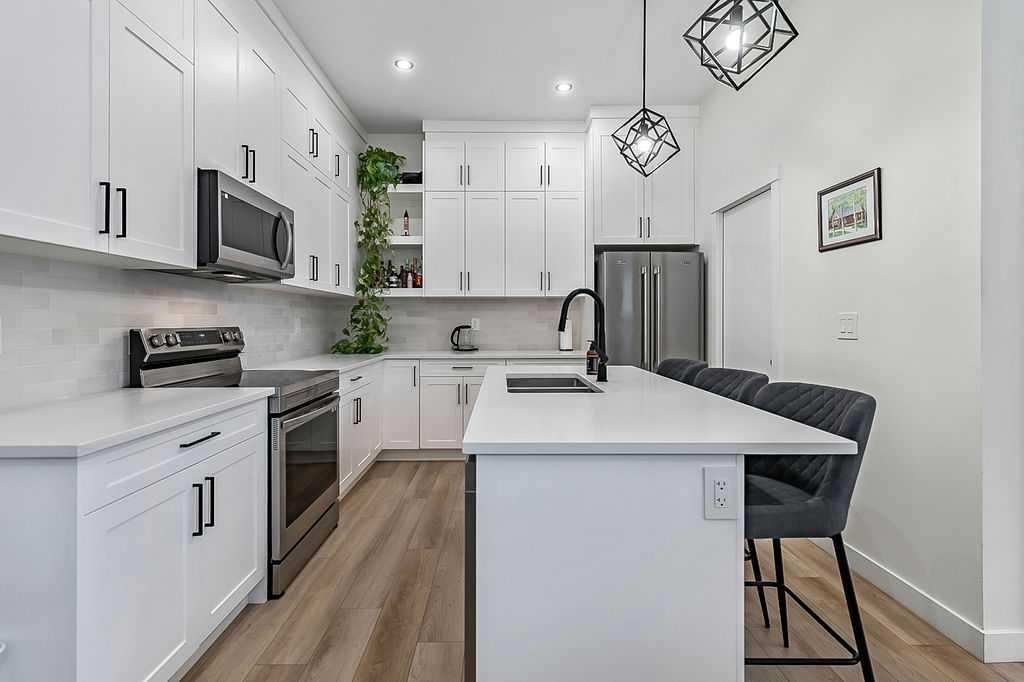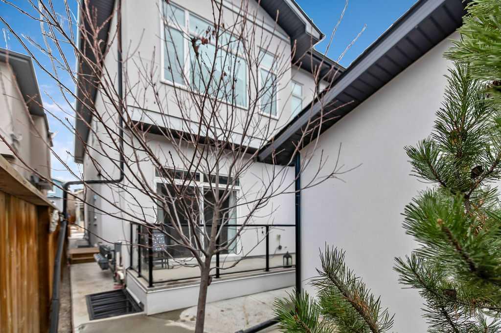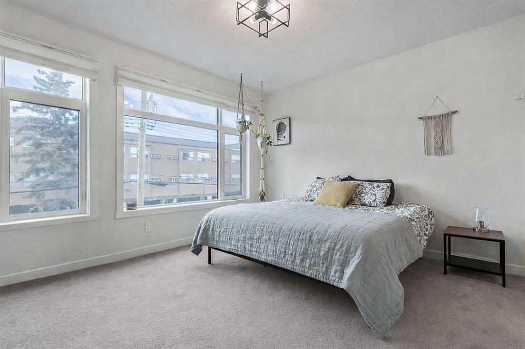 Welcome to this beautifully designed back unit in a stylish and well maintained fourplex, perfectly positioned in one of Calgary’s most vibrant and rejuvenated inner-city communities. Just minutes to downtown, steps to the river pathways, and surrounded by trendy shops, cafés, and amenities, this location is ideal for the urban professional seeking both lifestyle and convenience. As you arrive, you will immediately notice the incredible curb appeal and attractive landscaping that sets the tone for the entire property. Tucked away at the back, this unit offers exceptional privacy along with both a side entrance and a rear entrance shared with the illegal suite. Enjoy sunny afternoons on your spacious southwest facing deck, complete with a charming greenspace that is perfect for your pup. The single garage is conveniently located just outside your back door, making coming and going effortless. Step inside and fall in love with the bright, open concept main floor, designed with both style and function in mind. The stunning kitchen features cabinets that extend all the way to the ceiling, quartz countertops, an island, and an impressive pantry. This space flows seamlessly into the living and dining areas, creating the perfect environment for entertaining or relaxing at home. Large windows fill the space with natural light, enhancing the warm and inviting atmosphere. A discreetly placed two piece bathroom and a practical mudroom complete this level. Upstairs, you will find a thoughtfully designed layout featuring two spacious bedrooms, each with its own ensuite. This setup is ideal for roommates, guests, or a small family. The primary bedroom offers an ensuite with a separate shower and tub, double sinks, and a massive walk-in closet. The second bedroom is equally impressive, complete with its own four piece bathroom. The fully finished basement adds incredible versatility, offering a complete illegal suite with a full kitchen, living room, dining area, large bedroom, full bathroom, and its own laundry. Used for extended family, guests, or a tenant, this space provides excellent flexibility and value. Whether you are just starting out, downsizing, or looking for a smart investment close to the core, this multifunctional home offers the perfect blend of location, style, and opportunity. (Basement photos are virtually staged.)