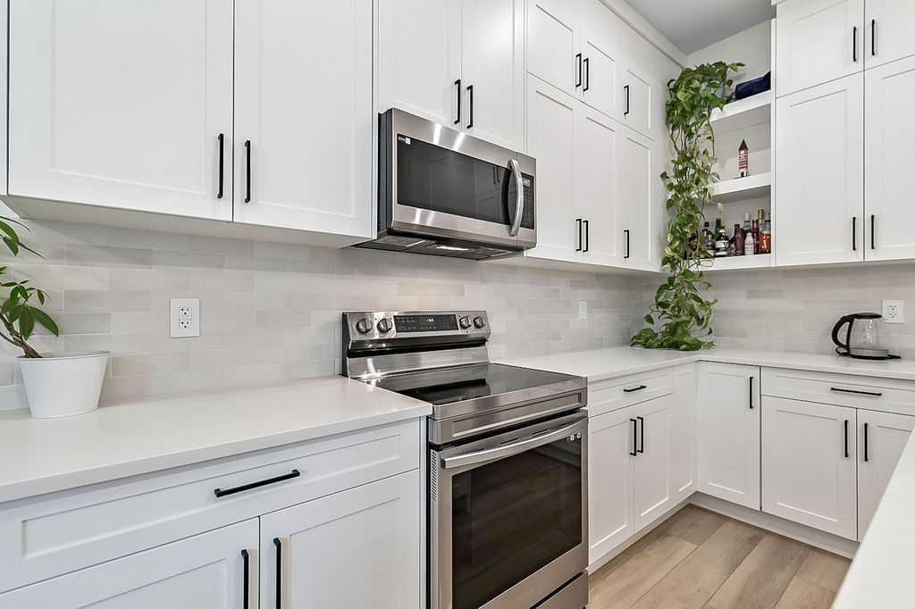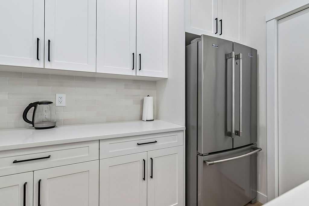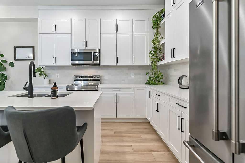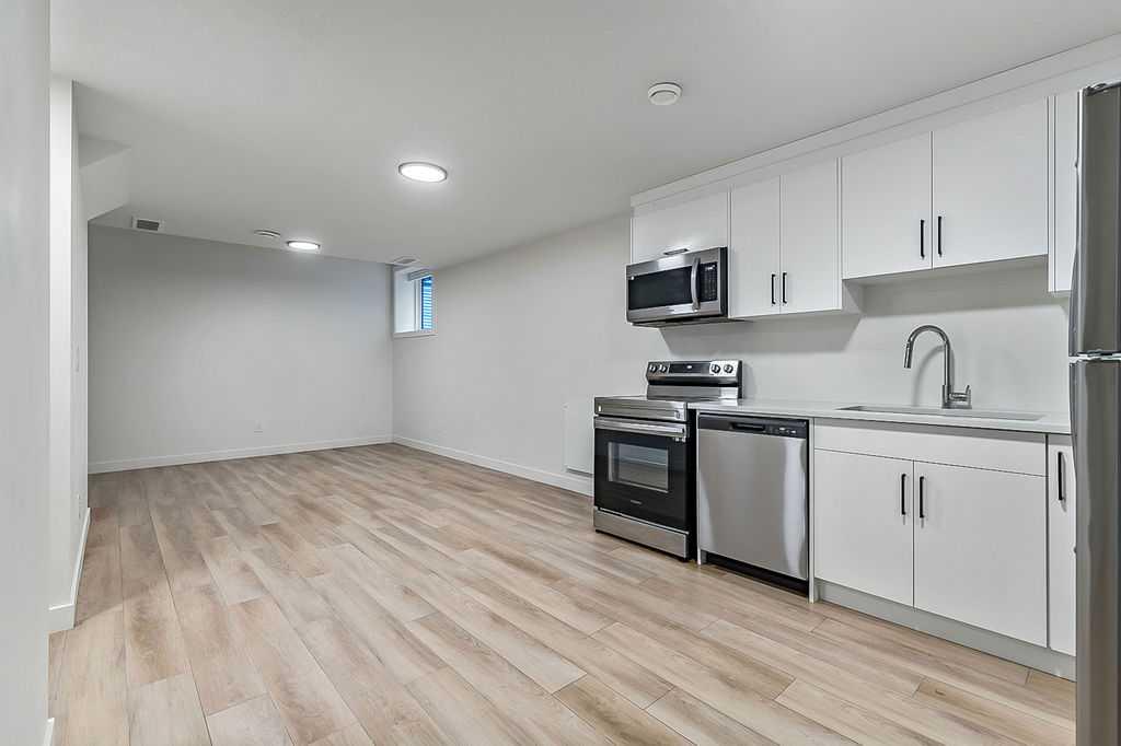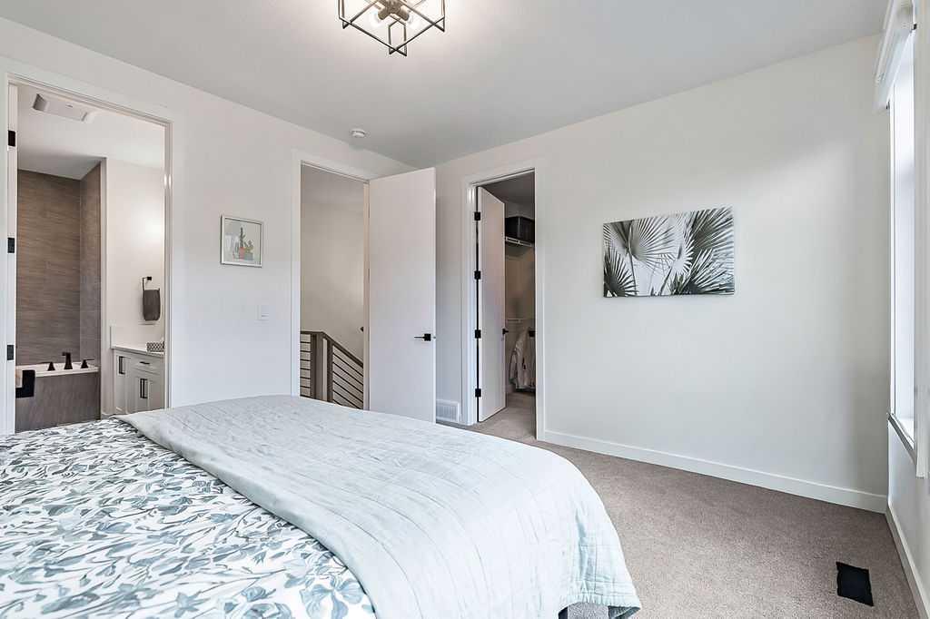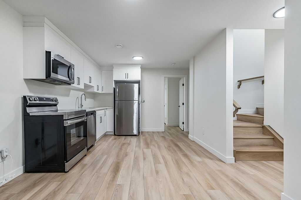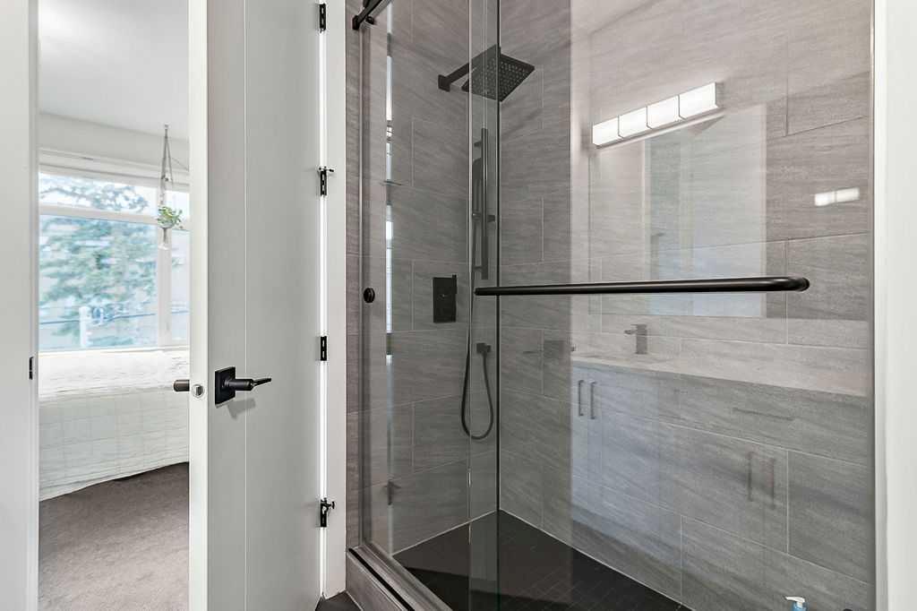 Welcome to this beautifully designed back unit in a stylish and well maintained fourplex, perfectly positioned in one of Calgary’s most vibrant and rejuvenated inner-city communities. Just minutes to downtown, steps to the river pathways, and surrounded by trendy shops, cafés, and amenities, this location is ideal for the urban professional seeking both lifestyle and convenience. As you arrive, you will immediately notice the incredible curb appeal and attractive landscaping that sets the tone for the entire property. Tucked away at the back, this unit offers exceptional privacy along with both a side entrance and a rear entrance shared with the illegal suite. Enjoy sunny afternoons on your spacious southwest facing deck, complete with a charming greenspace that is perfect for your pup. The single garage is conveniently located just outside your back door, making coming and going effortless. Step inside and fall in love with the bright, open concept main floor, designed with both style and function in mind. The stunning kitchen features cabinets that extend all the way to the ceiling, quartz countertops, an island, and an impressive pantry. This space flows seamlessly into the living and dining areas, creating the perfect environment for entertaining or relaxing at home. Large windows fill the space with natural light, enhancing the warm and inviting atmosphere. A discreetly placed two piece bathroom and a practical mudroom complete this level. Upstairs, you will find a thoughtfully designed layout featuring two spacious bedrooms, each with its own ensuite. This setup is ideal for roommates, guests, or a small family. The primary bedroom offers an ensuite with a separate shower and tub, double sinks, and a massive walk-in closet. The second bedroom is equally impressive, complete with its own four piece bathroom. The fully finished basement adds incredible versatility, offering a complete illegal suite with a full kitchen, living room, dining area, large bedroom, full bathroom, and its own laundry. Used for extended family, guests, or a tenant, this space provides excellent flexibility and value. Whether you are just starting out, downsizing, or looking for a smart investment close to the core, this multifunctional home offers the perfect blend of location, style, and opportunity. (Basement photos are virtually staged.)