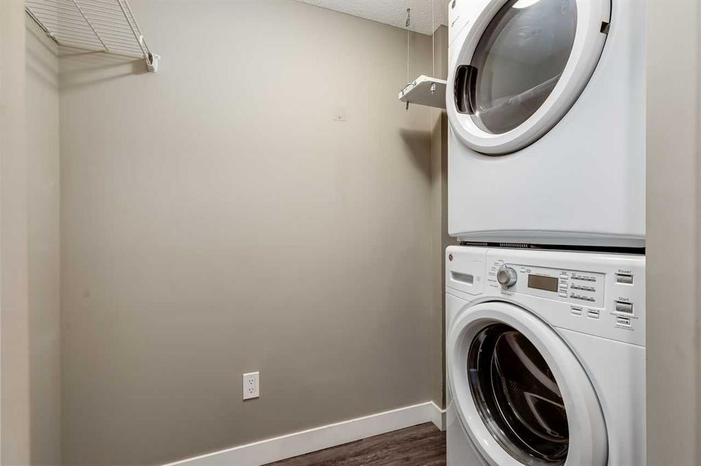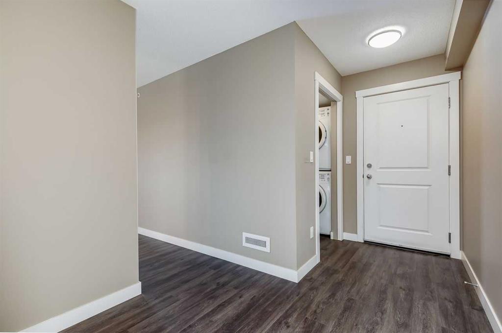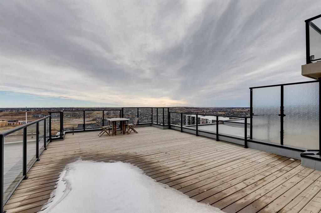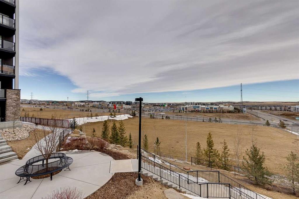 Welcome to this beautifully designed air-conditioned two-bedroom corner condo featuring in-suite laundry, titled parking, and titled storage, plus an incredible rooftop terrace complete with a gas line - perfect for summer BBQs and outdoor entertaining. As you enter, you’re greeted by a spacious flex area ideal for a home office. Laminate flooring flows throughout, leading you into a bright, modern kitchen showcasing quartz countertops, stainless steel appliances, and a convenient eating bar that opens to the dining area. The open-concept living room seamlessly connects to the kitchen, creating the perfect space for hosting family and friends. The generous primary bedroom offers a walk-through closet and a private 4-piece ensuite. A second spacious bedroom is complemented by a stylish 3-piece bathroom featuring a beautiful walk-in shower. Enjoy your northwest-facing balcony, ideal for relaxing evenings. Located close to shopping, pathways, public transit, and with quick access to Stoney Trail, this home offers both comfort and convenience.