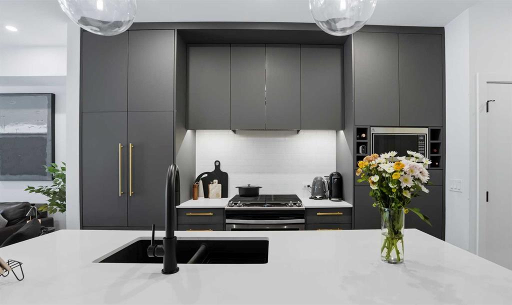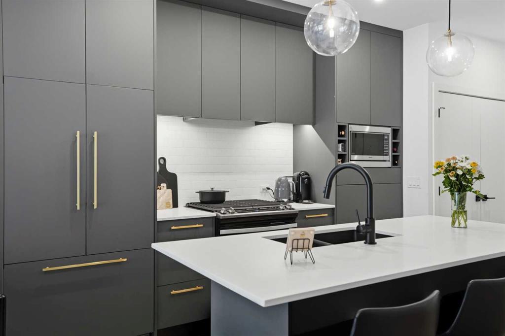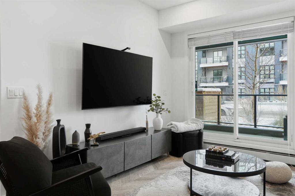 Welcome to elevated urban living in Calgary’s vibrant and highly sought-after UNIVERSITY DISTRICT. This beautifully appointed two bedroom, one bathroom residence combines modern design with everyday functionality, highlighted by its rare PRIVATE GROUND LEVEL entrance that offers the perfect balance of accessibility and privacy. Inside, you’re greeted by a bright and airy open-concept layout, enhanced by 9 FOOT CEILINGS, expansive windows with custom window coverings, and a seamless flow designed for both relaxing and entertaining. The contemporary kitchen is a true showpiece, featuring QUARTZ COUNTERTOPS, full-height soft-close cabinetry, integrated panelled appliances, a gas range, stylish pendant lighting, and a generous island ideal for casual dining or hosting guests. Both bedrooms are well-sized and flexible, easily accommodating a home office, guest space, or personal retreat. Thoughtfully UPGRADED CALIFORNIA CLOSETS provide smart storage solutions with warranty remaining. The bathroom is finished with sleek tilework and modern fixtures, while full size in suite laundry adds everyday convenience. Durable luxury vinyl plank flooring runs throughout, tying the space together with a clean, modern feel. Step outside to your spacious covered patio with gas hookup, perfect for year-round BBQs, morning coffee, or unwinding in your own private outdoor space, all made even more convenient by direct street-level access. Residents of Esquire by Truman Homes enjoy an IMPRESSIVE ARRAY OF AMENTITIES designed to enhance lifestyle and convenience, including a fully equipped fitness centre, large workshop, secure bicycle storage and repair area, and a dedicated pet wash station. The home also includes a titled underground parking stall in the heated parkade and a separate storage locker, offering both comfort and practicality. Just outside your door, experience one of Calgary’s MOST WALKABLE COMMUNITIES. From Save On Foods and Monogram Coffee to OEB Breakfast, boutique shopping, fitness studios, and Cineplex VIP, everything you need is within steps. Surrounded by parks, pathways, and green space, and with quick access to the University of Calgary, Foothills Medical Centre, Alberta Children’s Hospital, and Market Mall, this location truly connects lifestyle with convenience. Whether you're a first time buyer, investor, or looking to downsize without compromise, this home delivers the perfect blend of style, location, and amenity rich living.