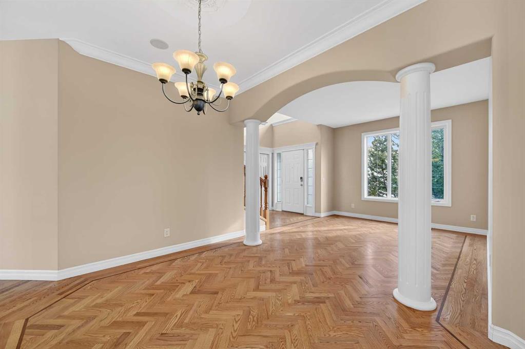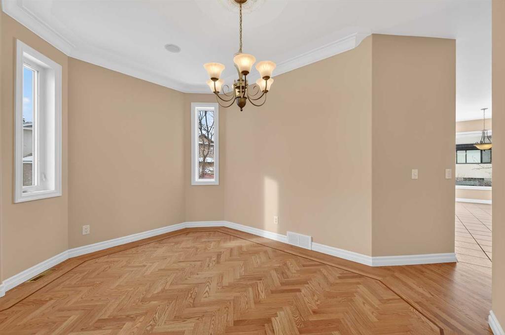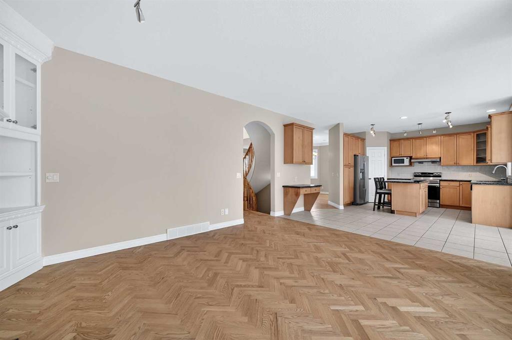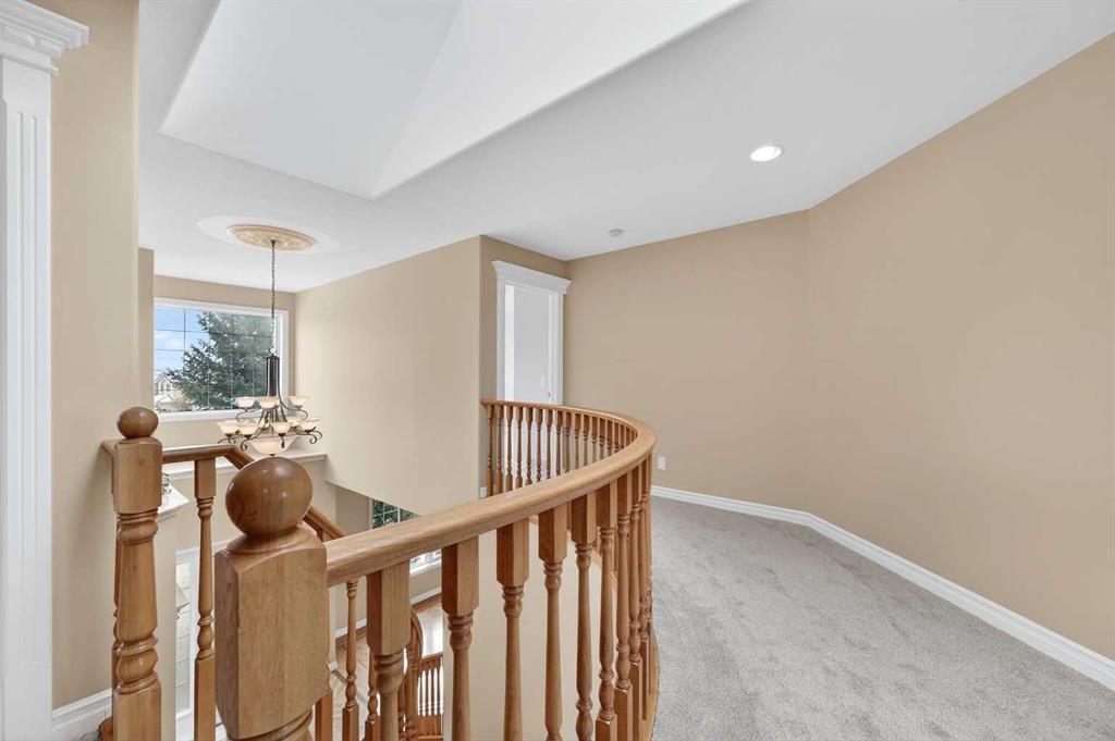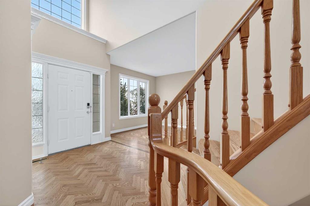 Welcome to your dream family home in the heart of the Hamptons, one of Calgary’s premier golf course communities. This stunning house makes a big impression as you enter with its soaring 18-foot ceilings, bright skylight, and beautiful curved staircase. You will love the high-end feel of the chevron-patterned hardwoods, fresh paint, and recently updated carpets throughout, and the roof was done in 2025. The main floor is perfect for family life, offering a sunny den or home office behind French doors and a formal dining area for holiday dinners. The kitchen is the heart of the home, featuring granite countertops, stainless steel appliances, and a built-in desk for homework. Next to the kitchen, the sun-filled breakfast nook leads right out to the back deck. In the cozy family room, you will find floor-to-ceiling built-ins around the gas fireplace, including window seating with hidden storage. A large laundry room with plenty of cabinets adds extra convenience on the main floor. Upstairs feels bright and open, looking down over the living area. The primary bedroom is very large and features a walk-in closet with custom shelving and a private five-piece bathroom. Two more big bedrooms give the kids or guests plenty of their own space. Living here is all about the community. This active neighborhood features walking paths, tennis courts, a hockey rink, and top-rated schools. With the Hamptons Golf Club around the corner and easy access to Stoney Trail, you get a quiet, beautiful setting that is still close to everything you need.