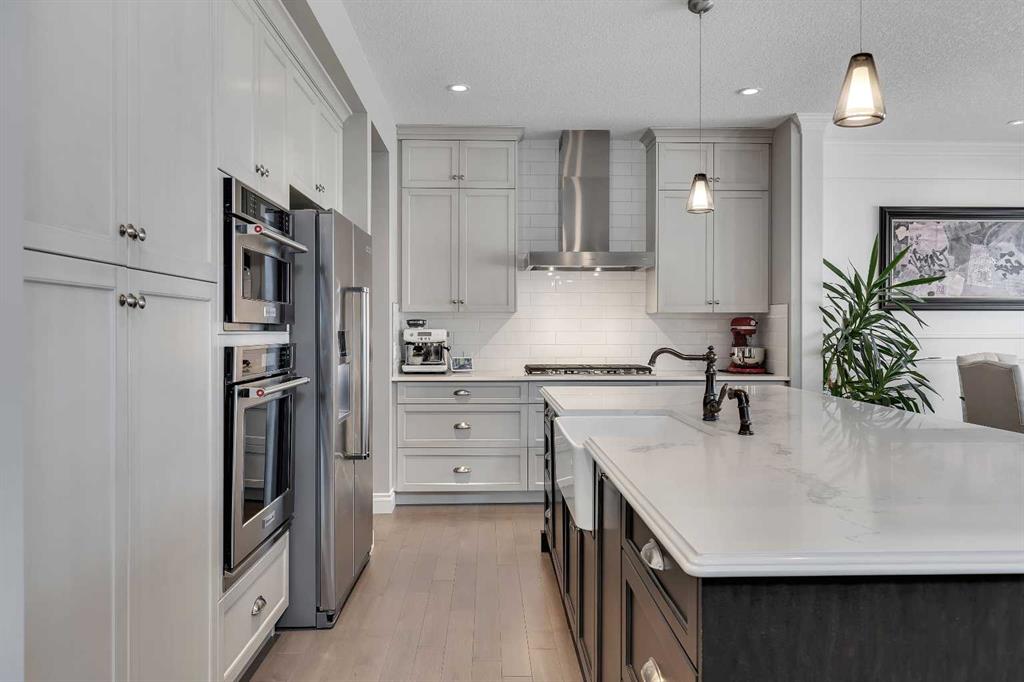 Elevate your lifestyle in this exquisite former SHOWHOME from the exclusive Arrival Collection—an architecturally curated streetscape designed by Michelle Moodie, where no two homes are alike. Situated on a coveted CORNER LOT with sunny southern exposure, this French Country residence blends a feeling of old world charm with modern luxury. Thoughtfully styled by Amanda Hamilton of Amanda Hamilton Interior Design, the home reflects the “Maison de Rêve” aesthetic—warm, refined, and distinctive individual. With 2,611 sq. ft., FOUR SPACIOUS BEDROOMS, and an inviting, family-focused layout, this property offers both comfort and sophistication. The main floor features rich hardwood, elegant wainscotting, and a striking one-way fireplace. At the heart of the home is a chef-inspired kitchen with an EXTRA-LARGE ISLAND, HIGH END KITCHENAID APPLIANCES, including a GAS COOKTOP and wall oven, Caesarstone quartz countertops, high-end cabinetry, and a WALK-THRU pantry connecting to the mudroom. Upstairs, the primary suite offers a serene retreat with a double-vanity, soaker tub, and separate shower. Three additional spacious bedrooms and a LARGE FAMILY ROOM complete the upper level, making it perfect for family living. The expansive basement provides exceptional potential—well-suited for future bedrooms, a theatre, gym, or a combination of spaces Outside, enjoy METICULOUSLY LANDSCAPED FRONT AND BACK YARDS with IRRIGATION, a private deck, and full fencing. Additional features include a NEW ROOF AND GUTTERS (2025), SOLAR SYSTEM, and AIR-CONDITIONING. The INSULATED, FINISHED & PAINTED GARAGE, CENTRAL VACUUM, and BUILT-IN SPEAKERS add everyday convenience . The home is finished with JAMES HARDIE SIDING, known for its durability and resistance to harsh weather conditions such as hail. This long lasting material ensures that your new home is protected and maintains its aesthetic appeal for years to come. Situated just steps from the picturesque Symons Valley pathway system, this home offers access to tranquil wetlands and the vibrant bird life that defines Nose Creek. Savour daily strolls along scenic trails and immerse yourself in nature’s beauty right outside your door. Evanston has multiple schools, parks, and quick access to amenities and Stoney Trail, creating a vibrant, supportive community for families. This estate model from Homes by Dream is not just a home; it’s a lifestyle. Schedule your private viewing today and experience the blend of luxury, comfort, and individuality that his stunning residence offers.