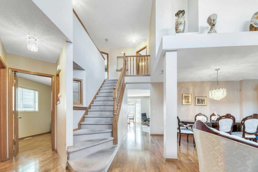 Beautifully maintained 3 bedroom & 2.5 bathroom custom home located in the desirable community of Country Hills, which offers lots of green space with great pathways & playgrounds, and easy access to schools, shopping, transit & all major routes. The main floor is warm & bright with lots of natural light and features an open to above formal living & dining room area with floor to ceiling bay windows that give you a majestic feeling as soon as you enter this home! On the other side is the cozy family room with a gas fireplace, a spacious kitchen with lots of storage & counter space that flows perfectly into the breakfast nook with patio doors leading out to your east facing backyard & deck. A private home office, 2pc powder room, and mudroom with laundry leading to your double attached garage complete this level. All this in an open floor plan with rich oak hardwood & cabinets, and for your peace of mind a new roof, eavestroughs & garage door in 2025. Upstairs you will find the master bedroom with a 4pc ensuite & big walk-in closet, plus two more spacious bedrooms and a 4pc bathroom. The unfinished basement awaits your imagination & ideas to turn into whatever your heart desires! This fabulous home is located just minutes from the Vivo Rec Centre, North Pointe Transit Terminal, Public Library, Superstore and Country Hills Town Centre with all its amenities, restaurants & shopping!