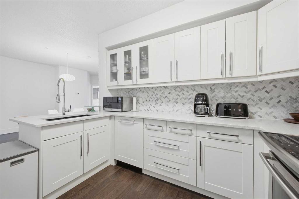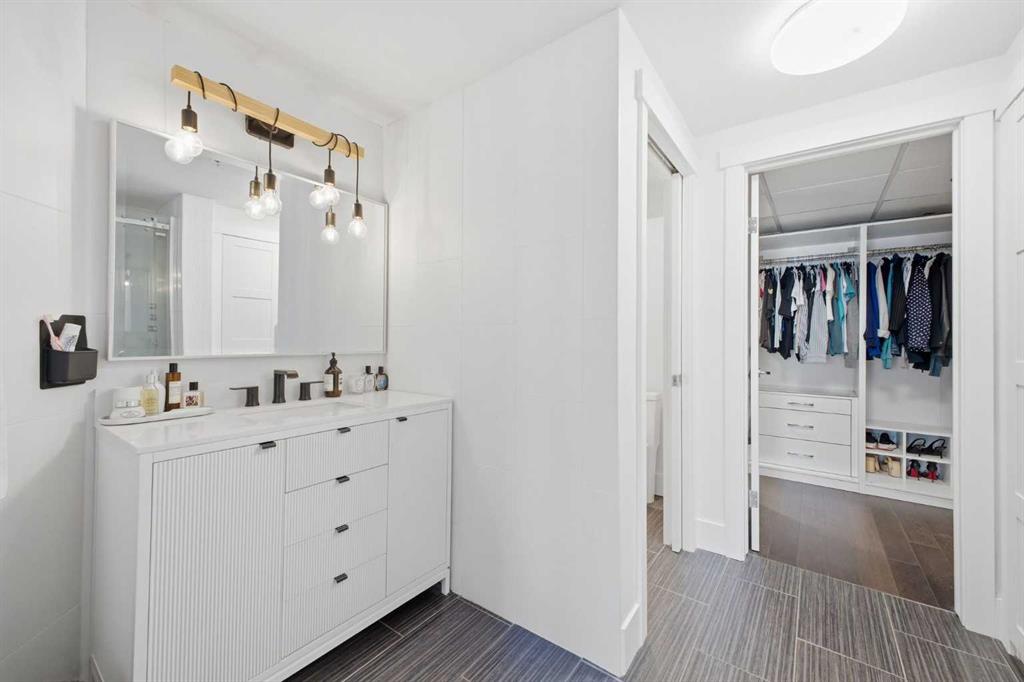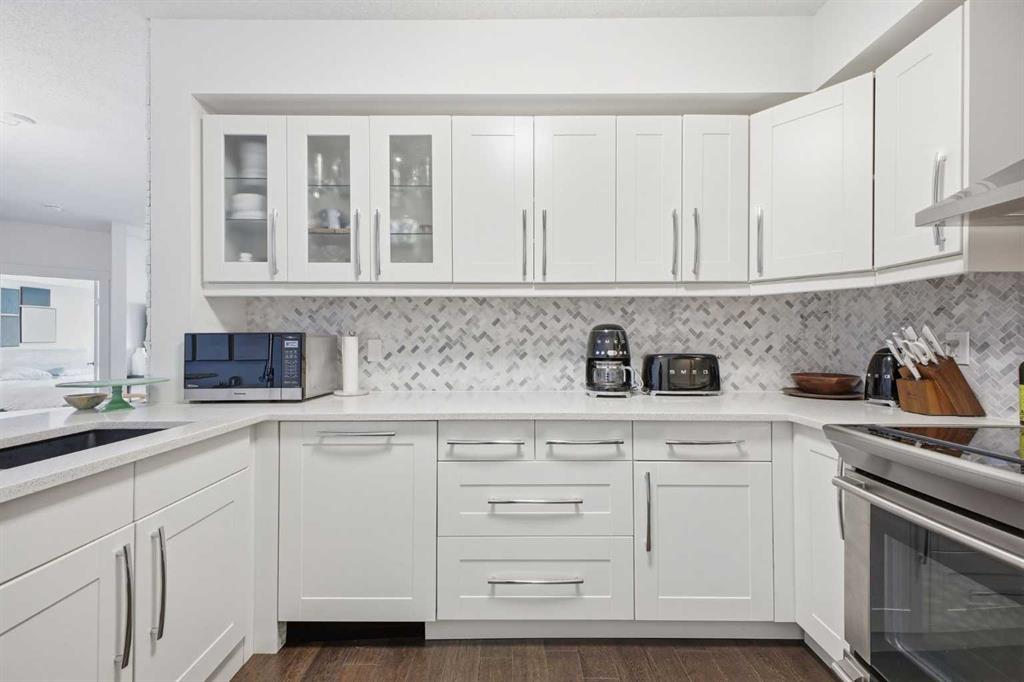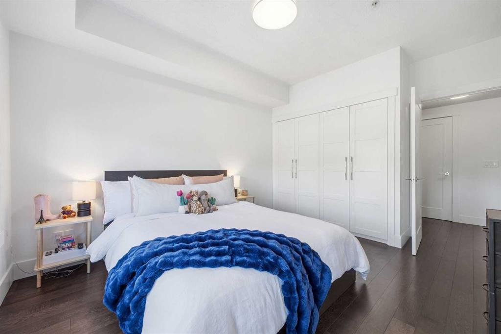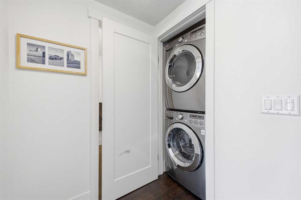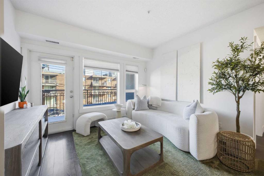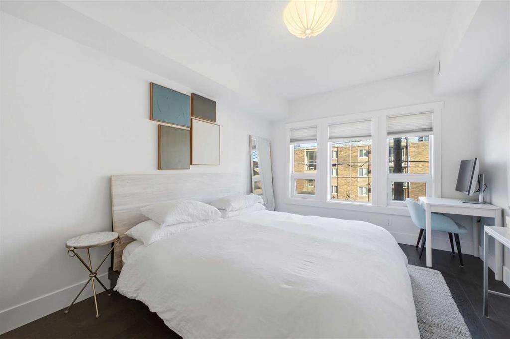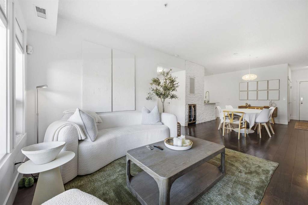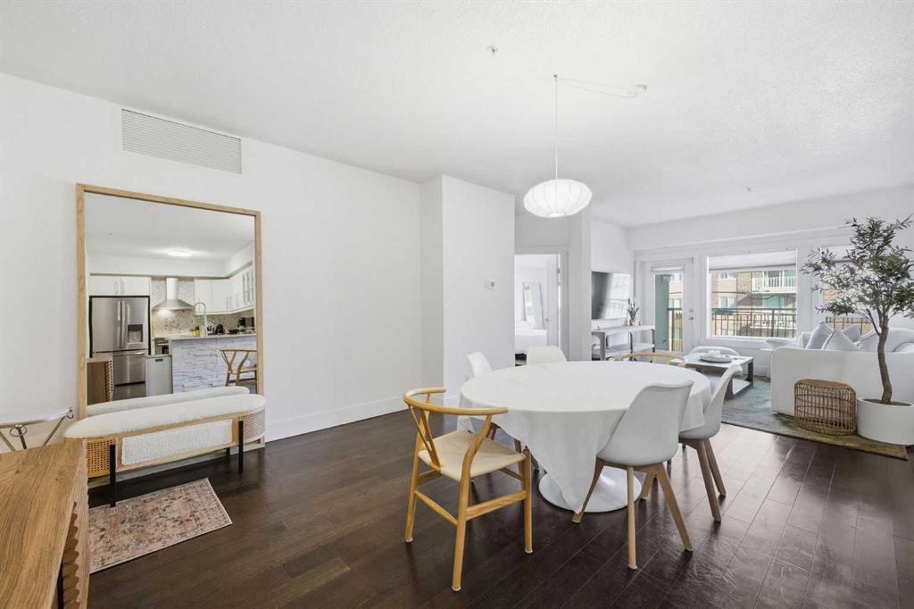 Bright and spacious, this 2-bedroom condo sits in the heart of Lower Mount Royal and offers an inviting blend of style and comfort. Espresso stained hardwood flooring and high ceilings create a warm, open feel throughout the main living spaces. The generous living area flows seamlessly into the dining space, where a feature stone wall with a built in wine fridge adds both character and function. The sleek kitchen is appointed with quartz countertops, crisp white cabinetry, and stainless steel appliances. The primary bedroom offers excellent closet space and a spa inspired 3 piece ensuite. A second bedroom and additional 4 piece bath provide ideal accommodations for guests or a dedicated home office. Additional highlights include Nest temperature control, in suite laundry, a private balcony, in suite storage, and a titled parking stall. All of this is set just steps from the vibrant shops and restaurants of 17th Avenue, close to the Bow River pathways, and within walking distance of the downtown core—an unbeatable location for urban living.