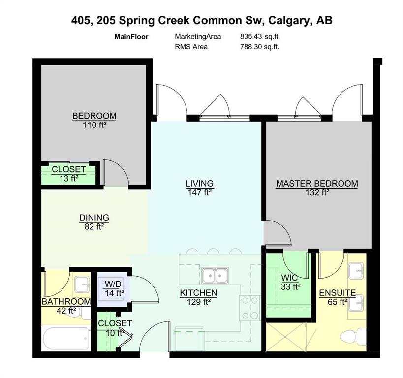Welcome to the Springbank Hill community, known for its excellent schools and family-friendly environment. This beautiful area is bordered by a natural environmental reserve park with abundant walking trails and bike paths that connect throughout this vibrant and growing community. This new build condominium, Orion Condominium, is located at 85 Street and 19 Avenue SW. This fully upgraded open-concept TOP FLOOR unit is designed to highlight its large double balcony and double-pane windows. The home features a Lennox mini-split heating and cooling system, an efficient dual heating and air conditioning system professionally installed with permits. Luxury vinyl plank flooring with soundproof underlay runs throughout the living room, dining room, kitchen, bathroom, and primary bedroom. The European-inspired kitchen is finished with premium kitchen cabinetry, shaker-style cabinets throughout all bathrooms, soft-close drawers, marble quartz countertops, KitchenAid appliances (refrigerator, gas stove, microwave, dishwasher), stacked front-load washer and dryer, and a natural gas BBQ line installed on the balcony. Includes one titled parking stall and an oversized storage locker (75 sq. ft.) located beside the parking stall. Walking distance to Aspen Landing Shopping Centre with grocery stores, restaurants, cafes, clinics, and amenities. Quick access to Stoney Trail and Bow Trail, and close to 69 Street C-Train Station for easy downtown access, as well as Westside Recreation Centre.