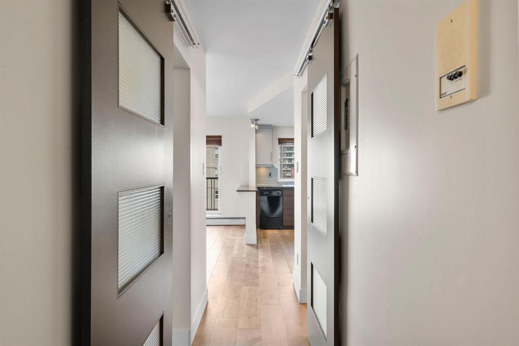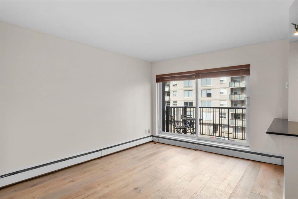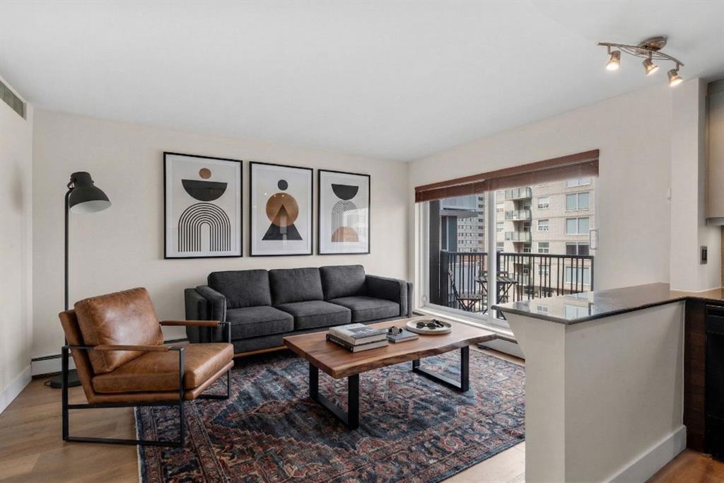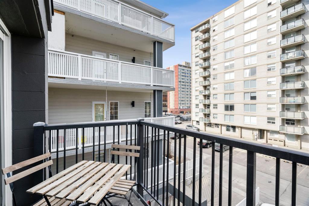 TOP-FLOOR CORNER UNIT - IN ONE OF DOWNTOWN'S BEST LOCATIONS - STEPS TO 17TH AVE! Set on one of the most desirable streets in the Beltline area, this location delivers unbeatable walkability. Just steps to 17th Avenue!! You will be surrounded by Calgary’s top restaurants, cafés, fitness studios and boutiques - all within a 5-minute walk. Quiet, tree-lined and incredibly central, this building is on a street that offers both energy and calm. Located in a well-maintained small (only 16 units!) CONCRETE building, this TOP FLOOR, corner unit offers added privacy with no neighbours above you. This 4-level walk-up is known for its solid construction and quiet living. Secure FOB access gets you in the building. Inside, you’ll find NEW HARDWOOD floors throughout, BIG closet at front entrance. This unit maximizes the space - 484 sq ft - and feels big and open! Functional 1 bedroom, 1 bathroom layout with TONS of natural light. Enjoy cooking in your kitchen with lots of counter space (GRANITE!) PLUS a great sized window above the sink! Open concept. BALCONY. Nice sized bedroom with AWESOME closet space and glass sliding doors. Barn doors, baseboards, lighting, handles and cabinet coloring - truly make this unit feel updated and modern! LAUNDRY IN THE UNIT! Brand new washer/dryer. Soaker tub. PET-FRIENDLY building (with board approval) - no size or breed restrictions - makes this a rare find for pet owners in the inner city!!! Condo fees include heat and water. An ideal opportunity for those seeking inner-city living with exceptional walkability, privacy and long-term value. Don't have a car? You can literally WALK/BIKE everywhere....But this unit comes with assigned parking! Work downtown? Enjoy the benefits of inner-city living - with reduced commute times = come home for lunch or take the dog out! Transit is close - 2 bus stops within a two min walk. Perfect for young professionals, first-time buyers or investors! STOP renting - pay your own mortgage instead!!!! NO POST TENSION CABLES! SHORT TERM RENTALS ALLOWED WITH BOARD APPROVAL!