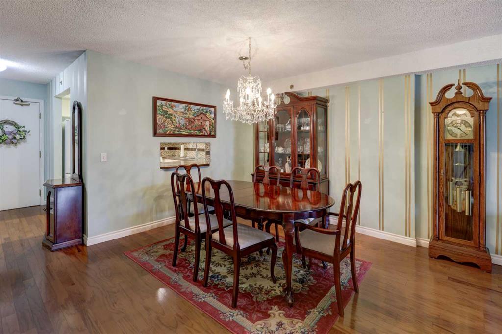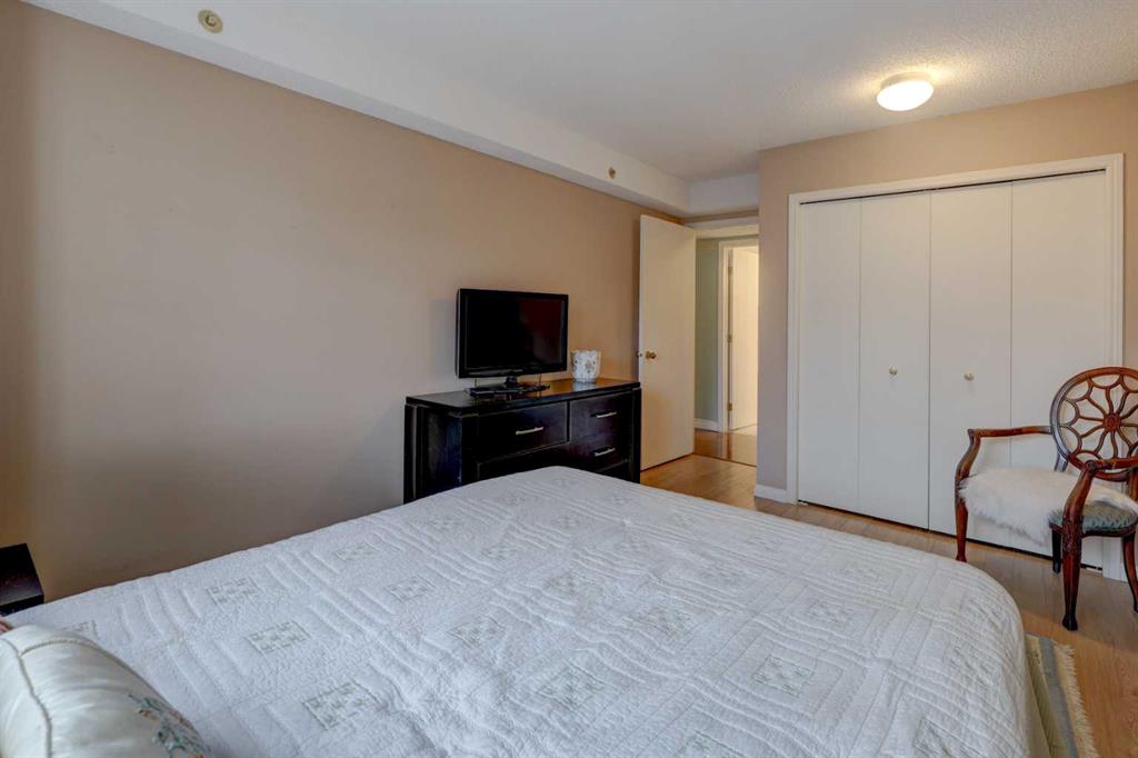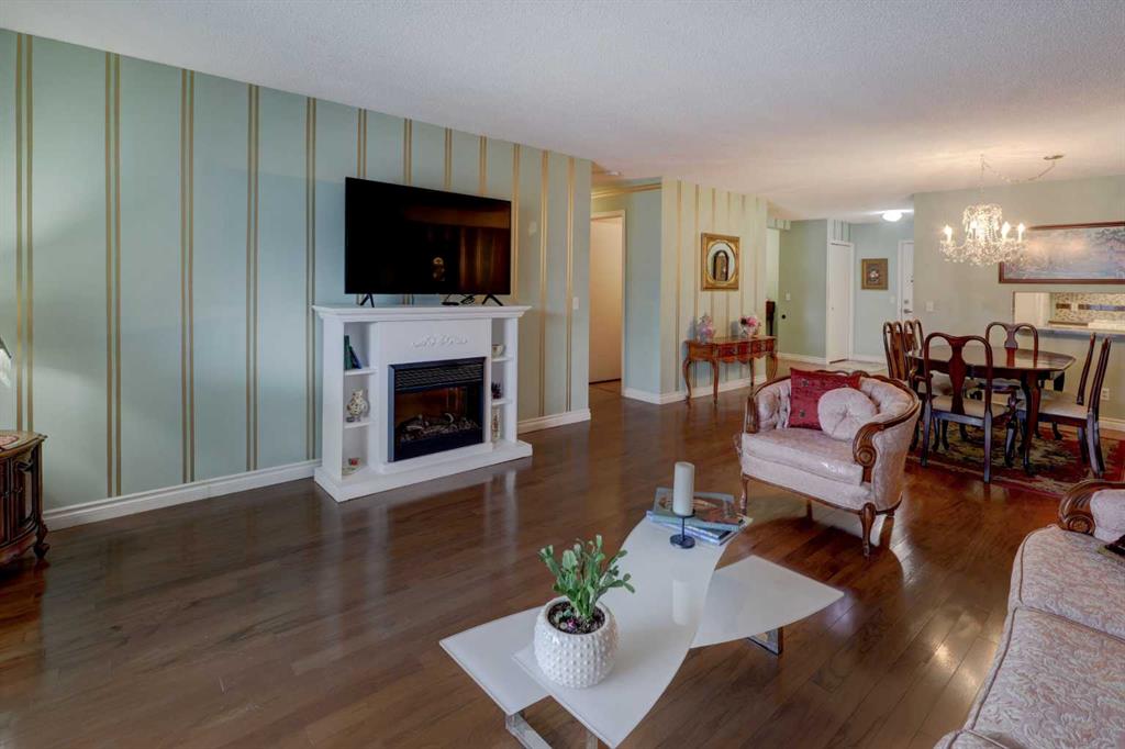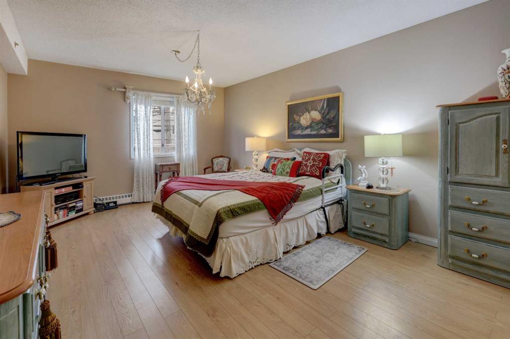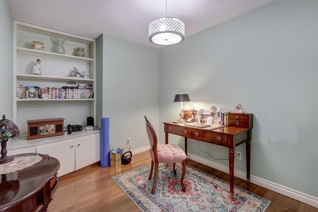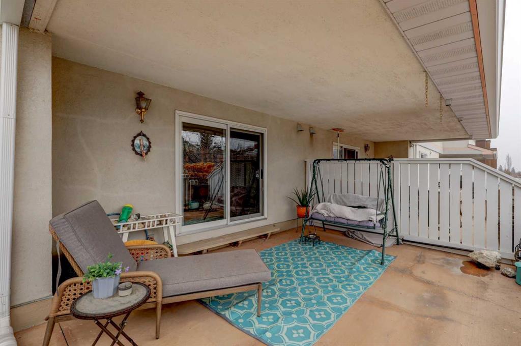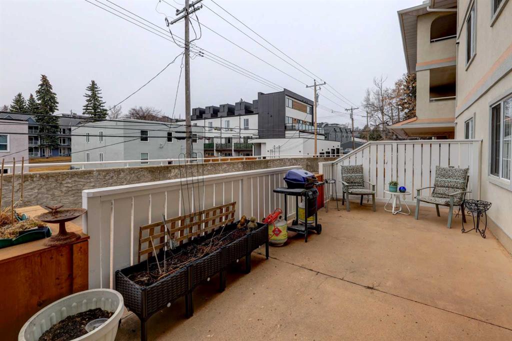 Step into this wonderful home and you are immediately struck by its openness and flow. Enter through a gracious foyer, accessing the office/den and the large dining room/living room, and you are immediately impressed with the expansive open plan space. The dining room and living room are welcoming and accommodating to any style or arrangement. There is still room to escape or get some work done as well with the spacious den/office just off the foyer. The updated kitchen is very functional. It has plenty of room to create and move around … and the appliances are immaculate. It has a passthrough to the dining room as well, which is quite convenient. Down the hall you will find the bright and sunny primary suite, which is very large. In addition to the well-proportioned bedroom, it offers a walk-in closet and 4-piece ensuite. The second bedroom is generous as well with plenty of room for furniture and to move around. Across the hall, a pleasant 3-piece bathroom and very functional laundry room complete the floor plan. One of the most stunning features of this home is the massive, 37’ x 12’11”, south facing patio. At 45% covered, this patio is ideal for entertaining, perfecting your green thumb, putting the dog out or simply relaxing. It expands your living space tremendously. With over 1,327 square feet of living space, plus another 410 sf of partially covered patio space, you’ve got room to roam! Click on the 3D Tour icon above and you will see what we mean! Another special and unique feature of this offering is the 2 underground parking spaces included with the unit, one of which is titled for your ownership. The other is assigned. A handy, assigned, storage locker is only steps away from your car park. South Calgary is a fantastic, walkable, community to live in. With easy access to shopping and parks, Marda Loop and downtown, this location is hard to beat. Units in Leaton Place don’t come available very often and this south facing unit is one of the largest in the building. Now is your opportunity to own this gem in one of the most sought-after buildings in the area.