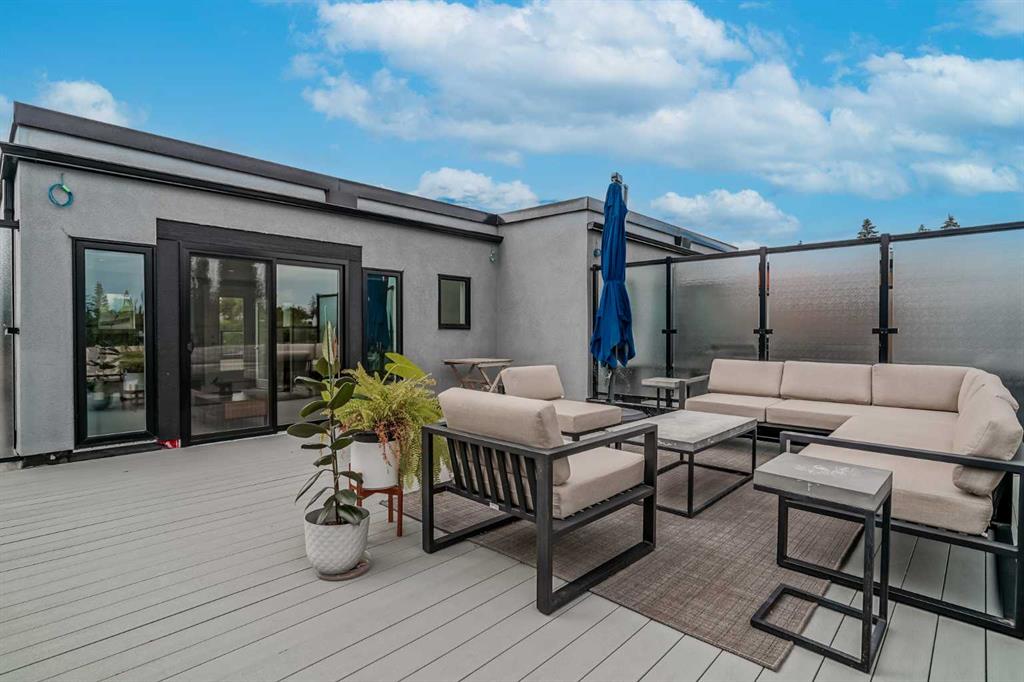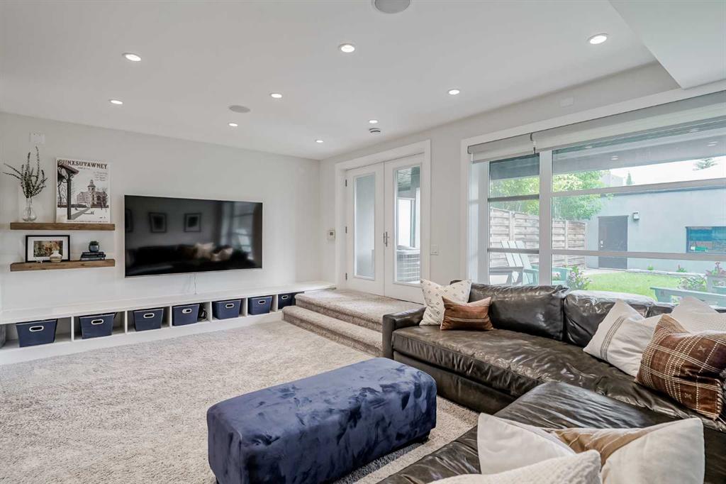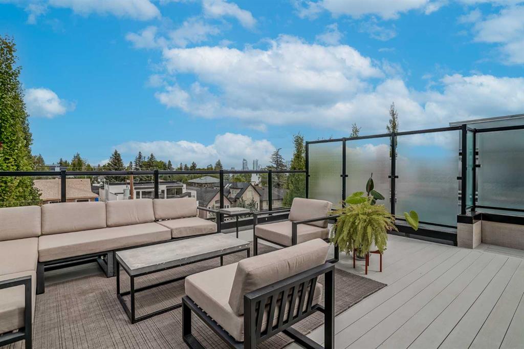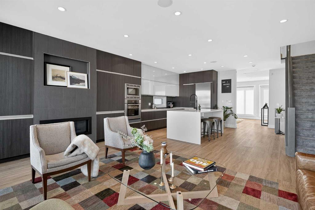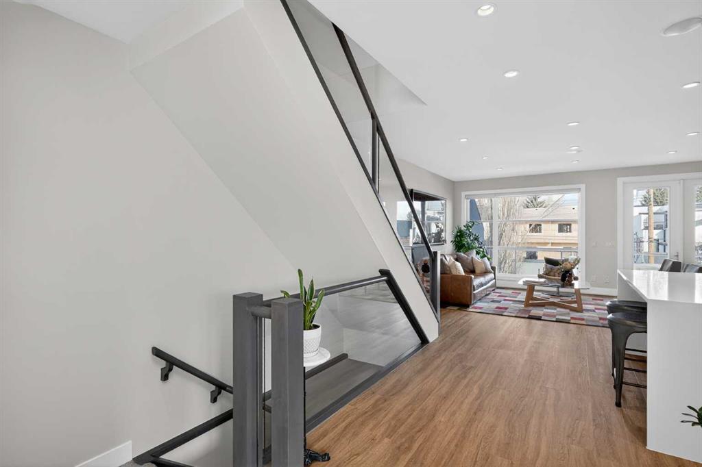 Step into sleek, modern luxury with this stunning custom-built home where crisp, clean lines and high-end finishes create a show-stopping impression inside and out. The main floor features a spectacular LVP floor throughout and an open-concept layout drenched in natural light from oversized, metal-clad windows. The chef-inspired European kitchen is a true centerpiece—complete with quartz countertops, a waterfall island, and premium Bosch & Miele appliances. Entertain in style, and don’t miss the jaw-dropping 2-piece powder room—guests will talk about it long after they leave! Upstairs, you’ll find two spacious bedrooms, a full laundry room, and a breathtaking primary retreat. Wake up to panoramic city views from bed, then indulge in your spa-like ensuite featuring a double vanity, oversized jetted tub, custom steam & rain shower with body jets, and heated tile floors. A custom walk-in closet completes the dream. The third-floor bonus room offers an additional oasis with even more incredible city views and a sunny south-facing balcony—plus, yes, there’s a bathroom on every level! The walkout basement is equally impressive, boasting in-floor heating beneath plush carpeting, a cozy fourth bedroom, a den, a beautifully finished storage area, and a rec room/TV area complete with a full bar—perfect for game nights and movie marathons