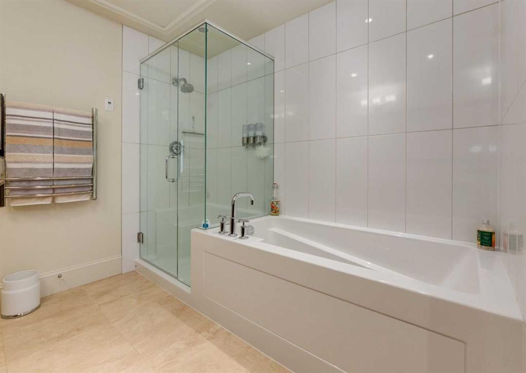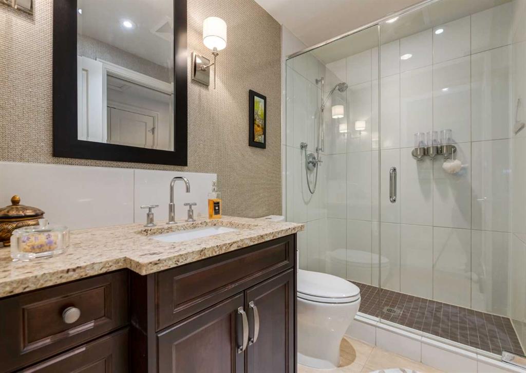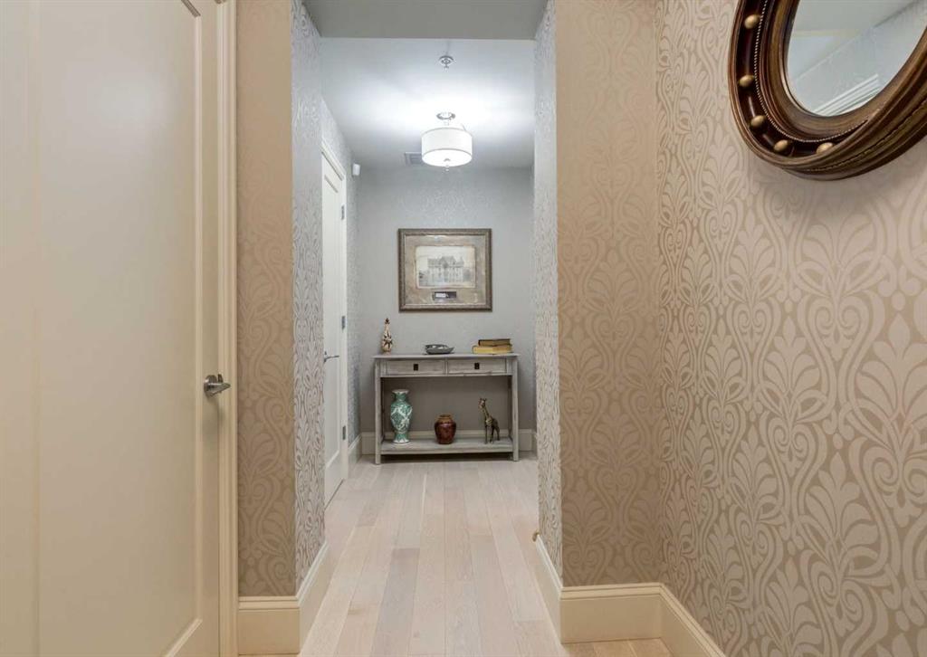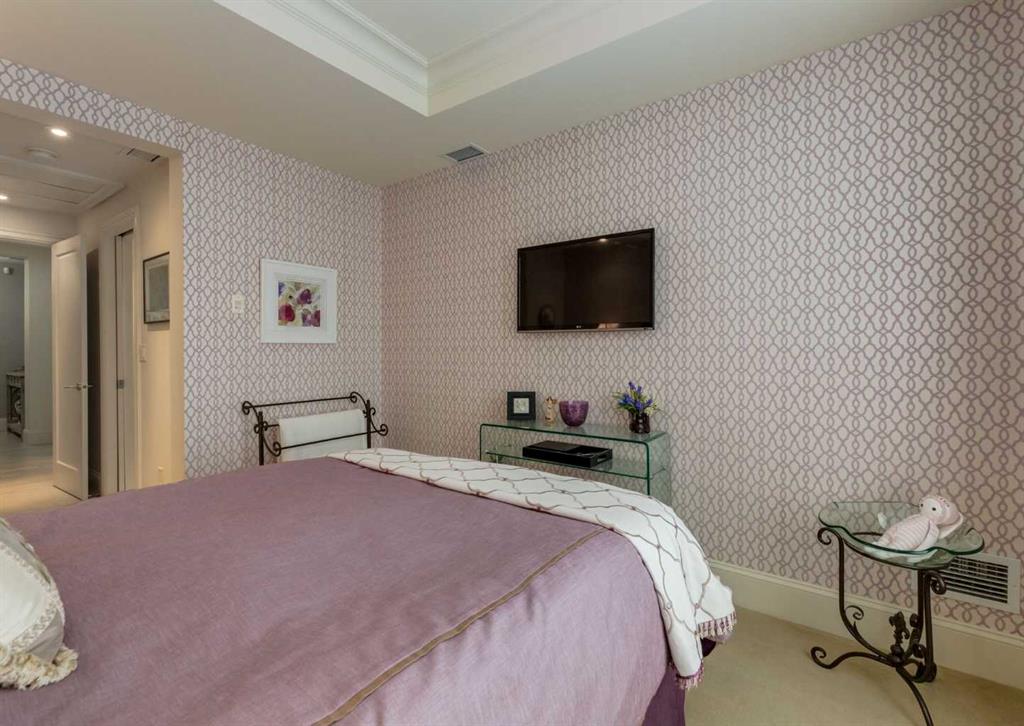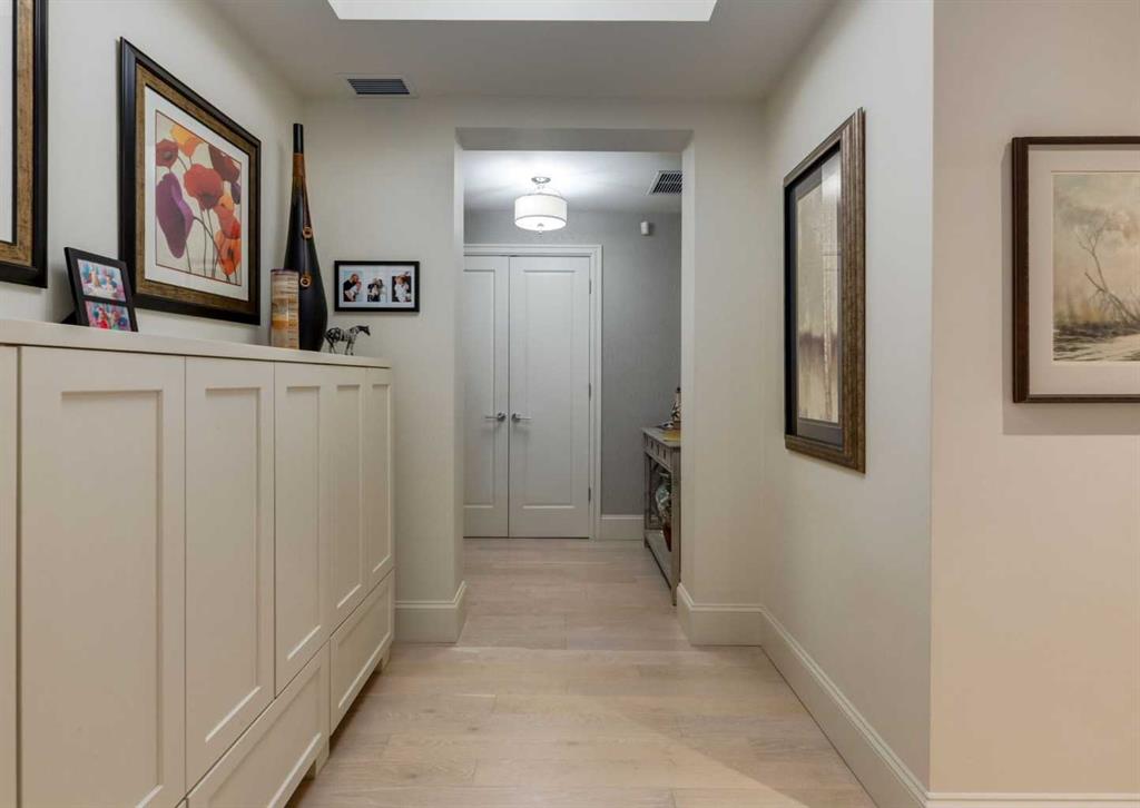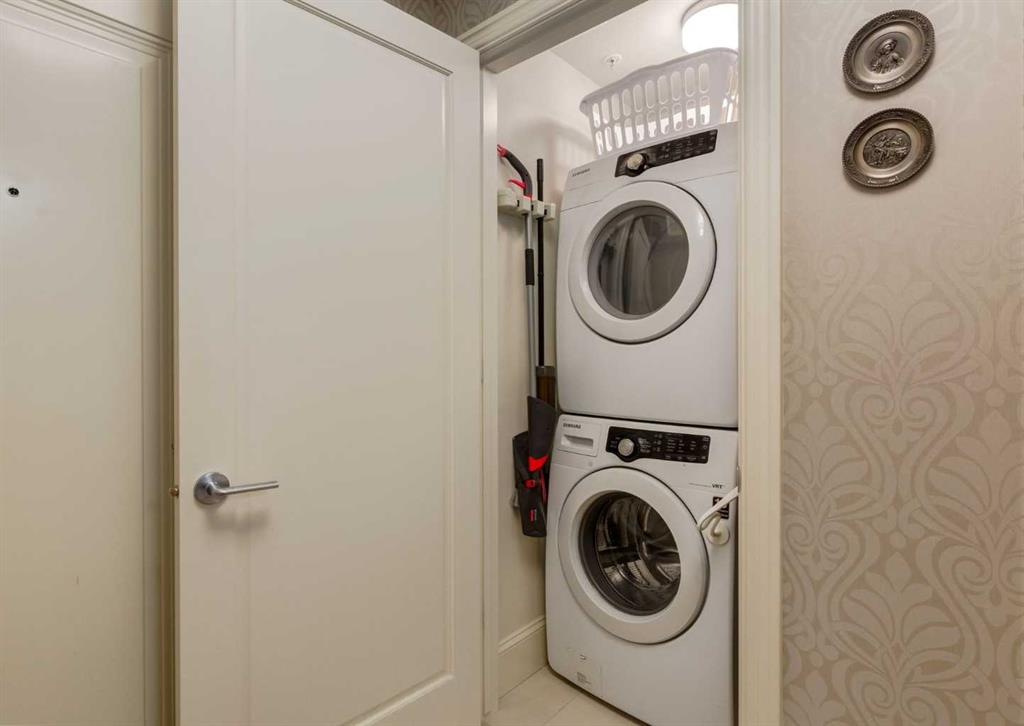 Coveted, Spectacular Corner Unit location on the main floor offering a harmonious blend of luxurious decor and natural beauty right outside your door. Unobstructed views of the Bow River and parkland, with lots of opportunity to ride your bike, walk and enjoy the outdoors and wildlife that wander close by for your enjoyment. Kitchen with plumbed-in coffee maker, gas stove, dishwasher, fridge, hood fan, microwave. Espresso color cabinetry and leathered granite countertops. Beautiful island overlooking dining and living rooms with an amazing view of the extensive yard & beyond the walking paths to the river. Breakfast bar seating for 4 with stools included. Lovely built-in desk with ample shelving. Engineered flooring (Arctic Oak). Water Feature! Custom draperies. All window blinds are motorized throughout. Bedrooms have black out drapes. (Custom window coverings) Primary bedroom with 5-piece bath and heated towel bar is very spacious with 2 sinks, tub/separate shower. Walk-in closet with ample, well designed shelving. 3-piece bathroom is shared with second bedroom for complete privacy or easy for visitors as well. Lots of built-in storage. Stacking washer/dryer. Gas outlet on patio. 2 Titled Parking Stalls/P2 included. 1 Titled Storage included. (A 3rd Parking Stall may be purchased from the seller but is Not Included). Bicycle storage included. Car wash. Pet friendly with board approval. Walk to Carburn Park. Easy access to major transportation routes, shopping, restaurants, YMCA and a lot more! Champagne is a wonderful, amazing condo complex. You are going to love it!!
