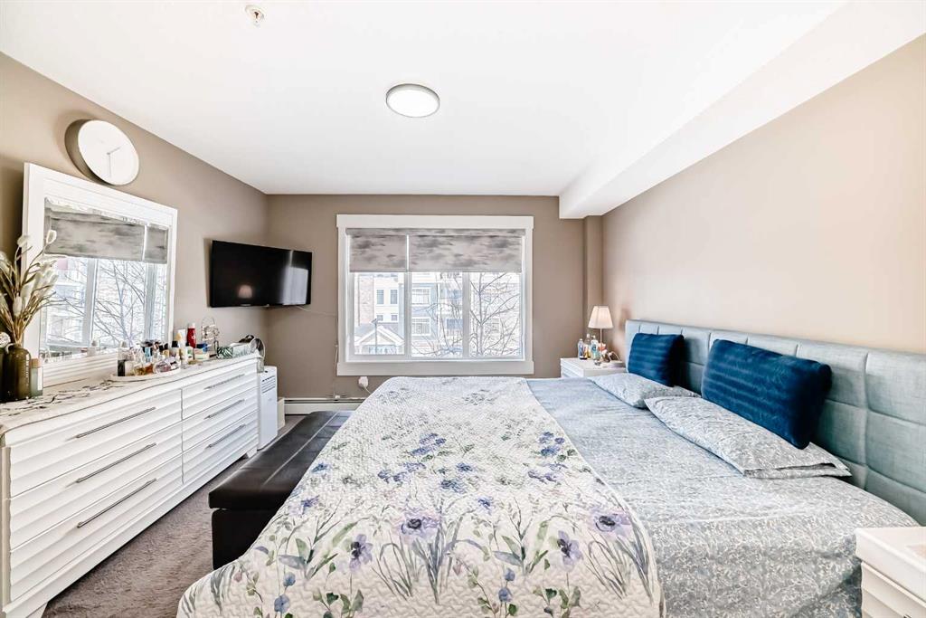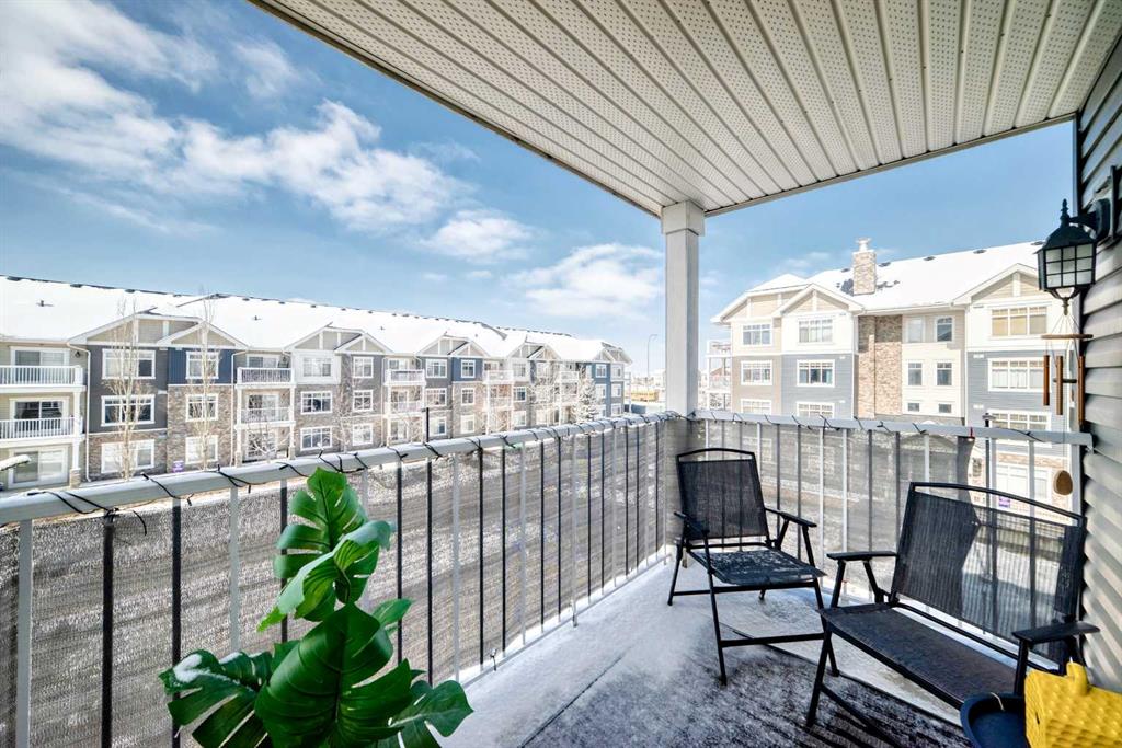 Pride of ownership shines throughout this immaculate third-floor corner unit in the vibrant community of Skyview Ranch. Offering a bright, open-concept layout with additional windows, this home is filled with natural light and designed for comfortable, modern living. The well-appointed kitchen features stainless steel appliances, granite countertops, and a functional center island, seamlessly flowing into the spacious living area. The sun-filled living room, enhanced by extra corner-unit windows, creates a warm and inviting atmosphere, while the adjacent dining area is perfect for everyday meals or entertaining. This unit includes 2 generously sized bedrooms, highlighted by a primary bedroom with its own private ensuite, along with a full common bathroom. A convenient in-suite laundry room adds to the practicality of this thoughtfully designed home. Additional features include heated underground parking with assigned stall and secure cage storage, providing both comfort and convenience year-round. Ideally located with easy access to Métis Trail, Country Hills Boulevard, and Stoney Trail, and within walking distance to shopping plazas and playgrounds, this property offers excellent connectivity and lifestyle appeal. A must-see opportunity—schedule your private showing today before it’s gone!