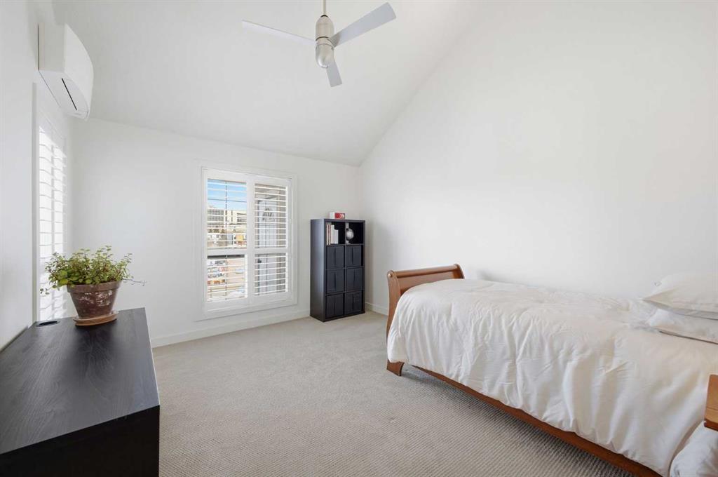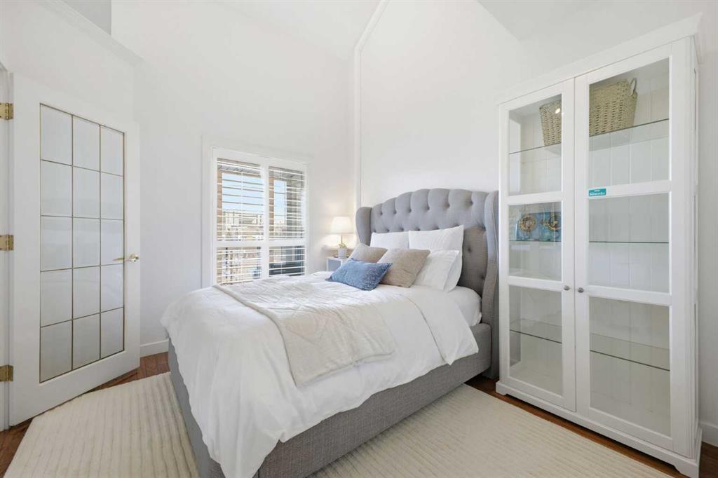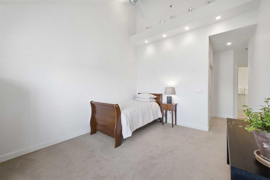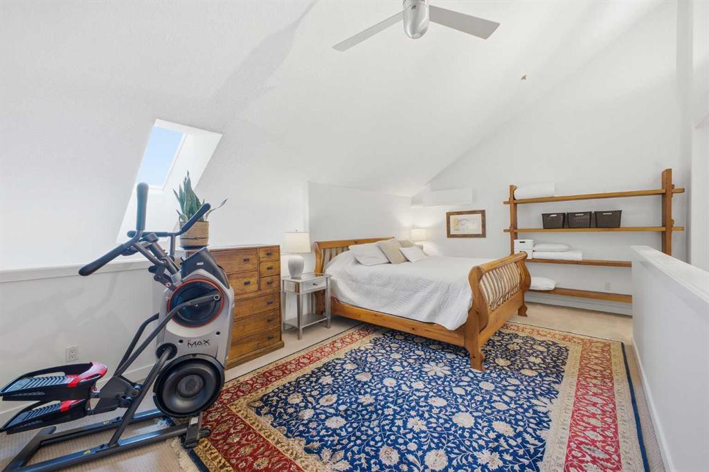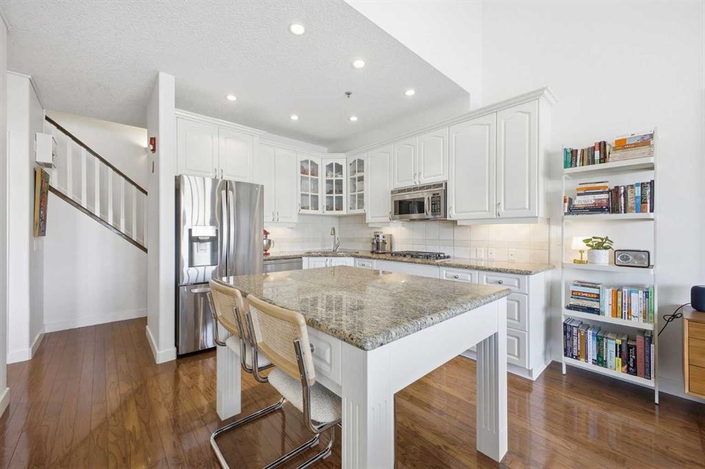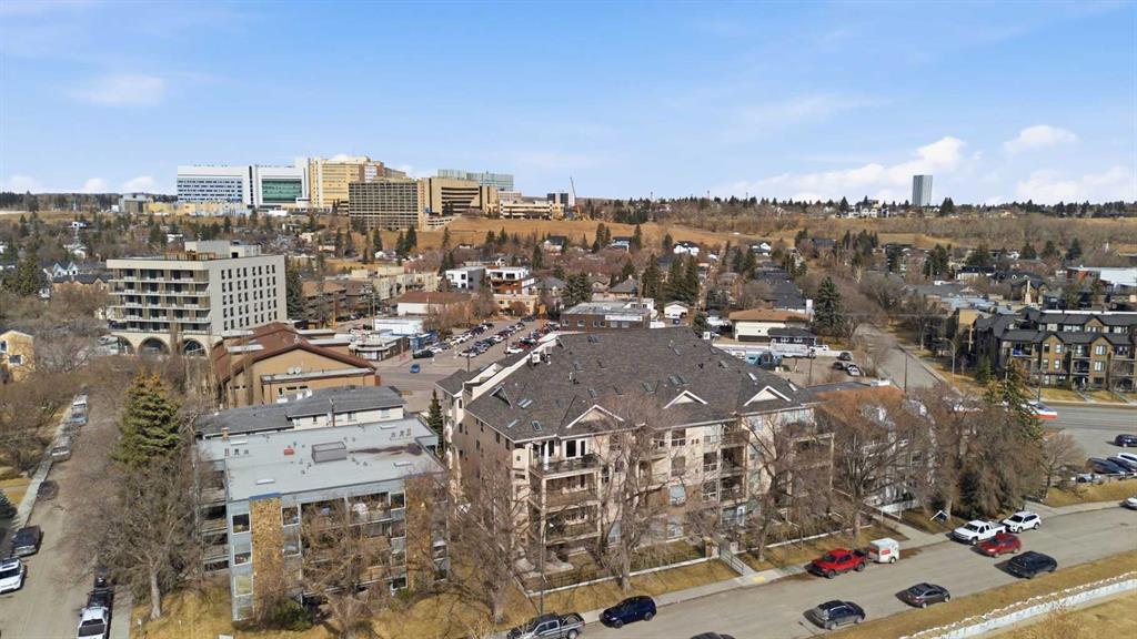 This rare two-storey, 3-bedroom, 3-full-bathroom, 2-parking stall top floor condo sits just steps from the scenic Bow River pathway system and offers exceptional space, soaring vaulted ceilings with skylight, and nearly $45,000 in recent upgrades—all within an exceptionally quiet, boutique 28 unit building. The bright, open main level features a generous living area with a refreshed feature fireplace and access to a large balcony with expansive views of mixed green space and the city. From this fourth floor vantage point, enjoy sightlines to the Bow River Valley escarpment to the west, St. Andrew’s Heights, the Parkdale Hillside Trailhead, and the Foothills Hospital complex, which creates a warm, glittering backdrop after sunset. The well appointed kitchen offers granite countertops, abundant storage, and a full suite of upgraded appliances including a brand new Bosch oven, Bosch gas cooktop, Bosch dishwasher, and a new LG ThinQ refrigerator with water and ice dispenser. Two bedrooms—both with French doors—and two full bathrooms are located on the main level. The primary bedroom features ample closet space and a private 4 piece ensuite with a relaxing jetted tub and separate shower. The upper level hosts a private, versatile loft space enhanced by vaulted ceilings and a skylight that fills the area with natural light. This flexible room can serve as a third bedroom, home office, or quiet retreat. A third full bathroom with laundry facilities completes the upper level. Major recent upgrades include a high efficiency, whisper quiet Daikin 3 head ductless air conditioning/heat pump system (5 year warranty) providing independent heating and cooling in every room; a 75 gallon Bradford White True Combi Tank hot water system (6 year warranty); new hot water tank valves and piping; a custom California Closets front entry closet system; custom Hunter Douglas roller shades on the French doors of all main level bedrooms; and a full fireplace overhaul and cleaning. Additional features include fresh paint throughout, in floor heating, and refreshed bathrooms with new ceiling fans and hardware. Two titled underground heated parking stalls—a significant advantage in this location—plus a convenient storage unit directly in front of one stall complete this outstanding offering. Directly across from the Bow River, the building provides immediate access to the river pathway system, Edworthy Park, the Douglas Fir Trail, and countless outdoor amenities, while still being minutes to schools, shopping, transit, the University of Calgary, Foothills and Children’s Hospitals, and major routes.