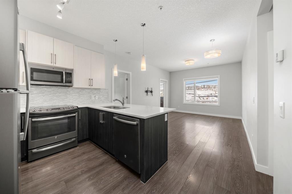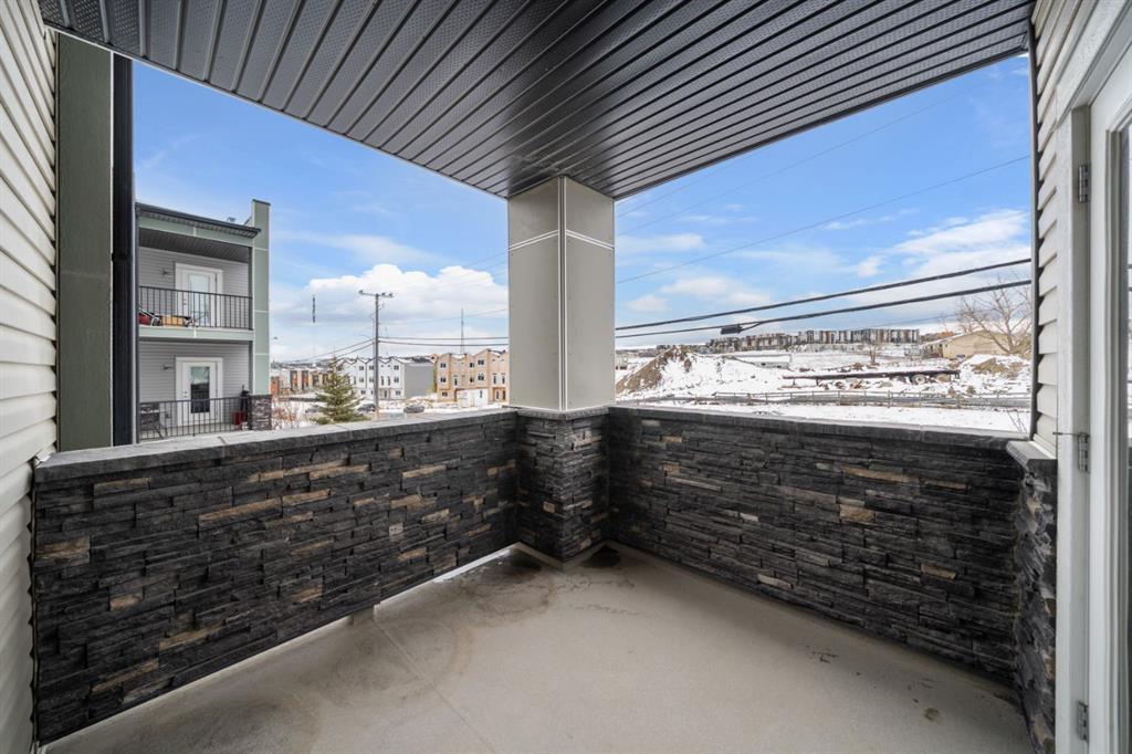 Welcome to this stunning corner-unit home at 121, 16 Sage Hill Terrace NW, where modern convenience meets an incredible sense of privacy. Upon entering, you are greeted by a versatile, oversized den that serves as the perfect home office or a massive storage solution—a rare find in condo living. As you move into the heart of the home, the space opens into a bright, open-concept floor plan tied together with beautiful luxury vinyl plank (LVP) flooring and large windows equipped with upgraded blackout blinds for ultimate comfort. The kitchen is a chef’s delight, featuring a large peninsula with seating for three that flows seamlessly into the dining and living areas, making it an ideal setup for hosting family and friends. This thoughtful layout offers two generous bedrooms and two full bathrooms adorned with classic tile flooring. The primary retreat is large enough to easily accommodate a king-sized bed and dressers, complete with a walk-through closet leading to a private 4-piece ensuite. The second bedroom is perfectly situated adjacent to the main 4-piece bathroom, offering a great setup for guests or roommates. What truly sets this home apart is its unique "elevated" ground-floor position; while you enjoy the effortless access of a main-floor entrance, the building’s natural slope perches the unit high above the ground level for added security and a private, peaceful view. Step out onto the balcony to take in the vast south and east views with your morning coffee. Completing this package is a titled, heated underground parking stall, all located just steps from Sage Hill’s premier shopping, dining, and scenic ravine pathways.