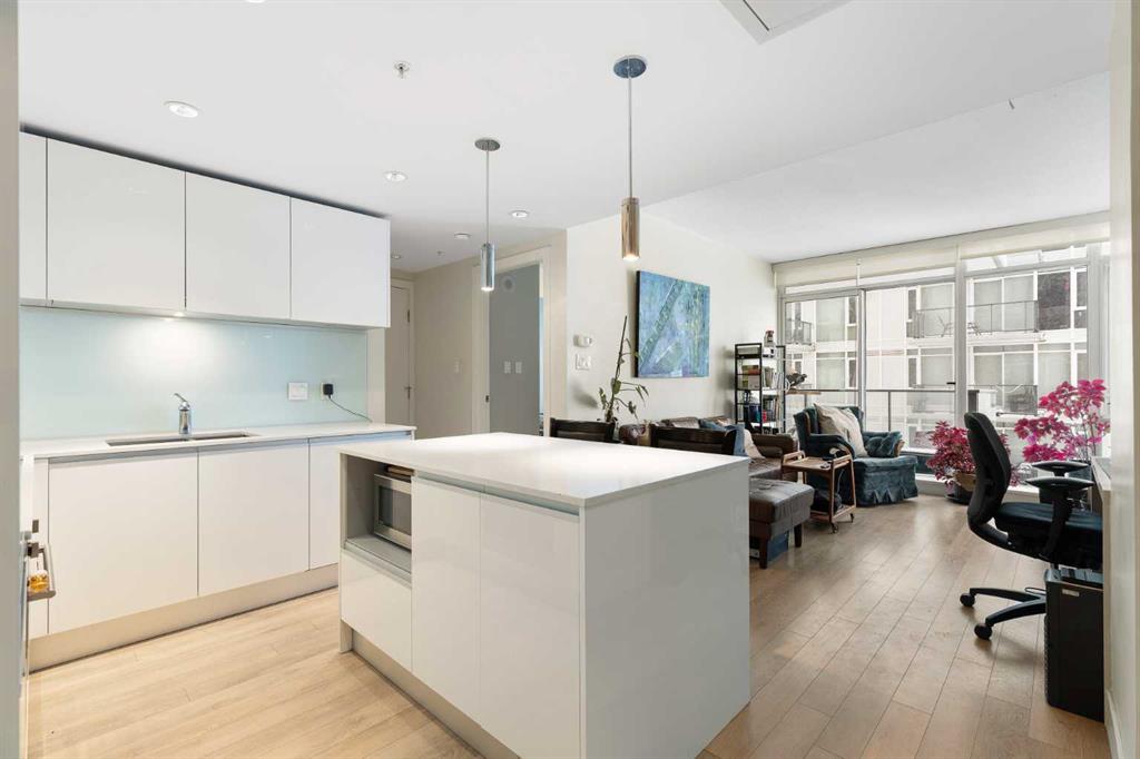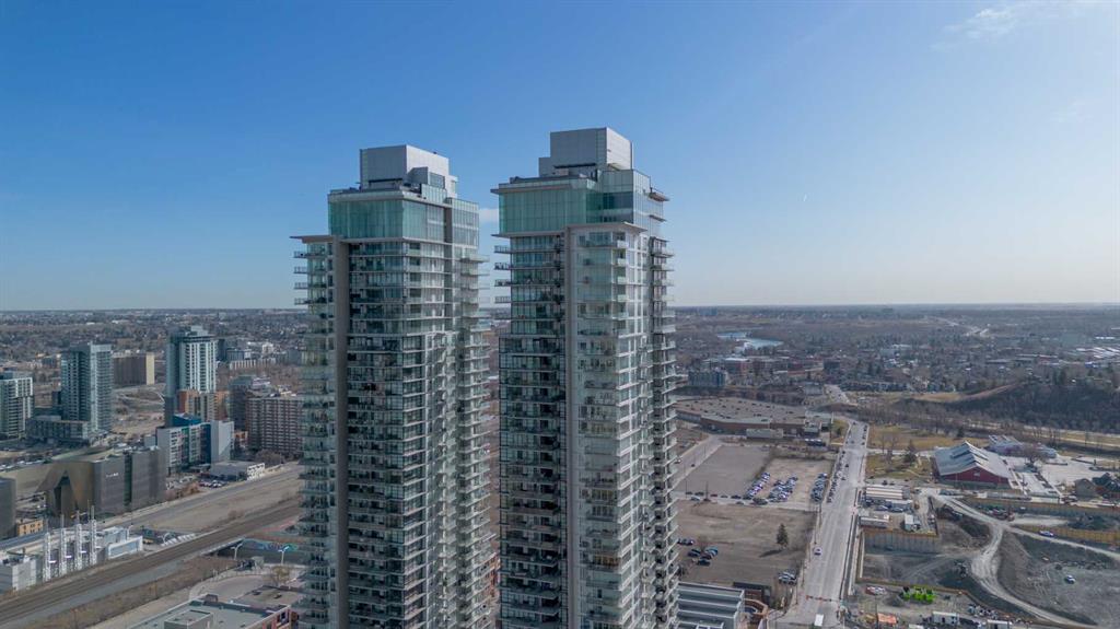 Step into the 27th floor of Calgary's iconic Guardian building and let the city energy fade into quiet luxury. Designed for the sleek, modern urbanite, this south-facing one-bedroom unit is flooded with natural light from floor-to-ceiling windows, highlighting crisp lines and a vibrant, airy atmosphere. While the southern exposure brings in incredible sunshine, central air conditioning ensures your high-rise sanctuary remains an oasis of cool comfort. You also get the distinct advantage of premium concrete soundproofing, keeping the space incredibly peaceful despite being right in the center of the action. The daily rhythm here revolves around the balcony. It is the perfect spot for your morning coffee, offering distant mountain views and a front-row seat to both sunrises and sunsets for the majority of the year. Inside, the highly efficient 504-square-foot footprint is intentionally designed to minimize upkeep and maximize your free time. The streamlined living and workspace areas encourage you to step outside and use the building’s massive suite of amenities as your extended lounge, or simply enjoy the ultimate lock-and-leave lifestyle. With a 24/7 security presence, peace of mind is a constant. When you are ready to explore, the best of the city is waiting right outside your lobby. You are highly connected, with seamless walkability to the nearby C-Train making commutes or trips to places like Heritage Park effortless. Spend your weekends walking along the Bow River pathways, grabbing everyday essentials at the nearby Superstore, or catching an event at the BMO Centre and the new arena district. This is high-elevation living anchored by Calgary's most dynamic cultural hubs.