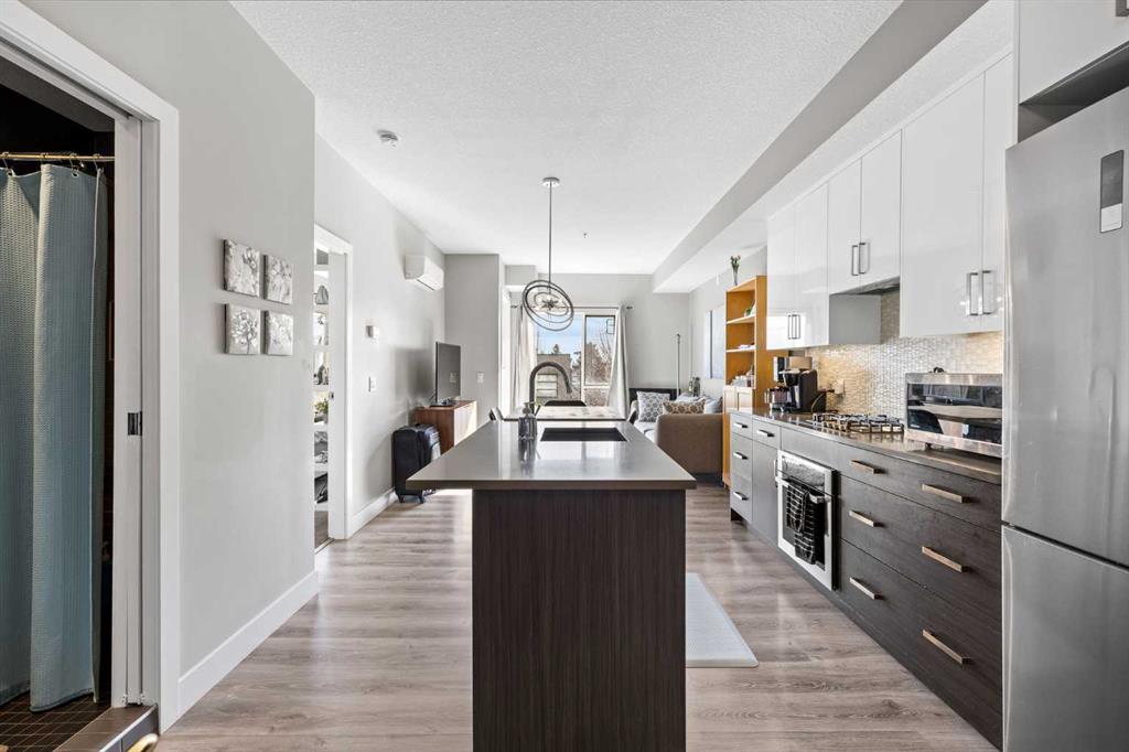 Welcome to this bright and stylish 2 bed 2 bath south-facing second-floor corner unit, perfectly situated in Calgary’s sought-after inner city. Flooded with natural light from its sunny exposure, this home offers an open, airy feel throughout. The kitchen features sleek modern appliances, clean lines, and quality finishes that blend style with everyday functionality. Thoughtfully designed living and dining spaces make entertaining effortless, while the smart layout maximizes both comfort and privacy. Enjoy the convenience of urban living with Marda Loop and 17th Avenue and just a short walk away from cafés, restaurants, shops, fitness studios, and nightlife right at your doorstep. Whether you’re a professional, investor, or first-time buyer, this location delivers unmatched walkability and lifestyle appeal. A perfect blend of modern design, natural light, and inner-city convenience—this is Calgary condo living at its best.