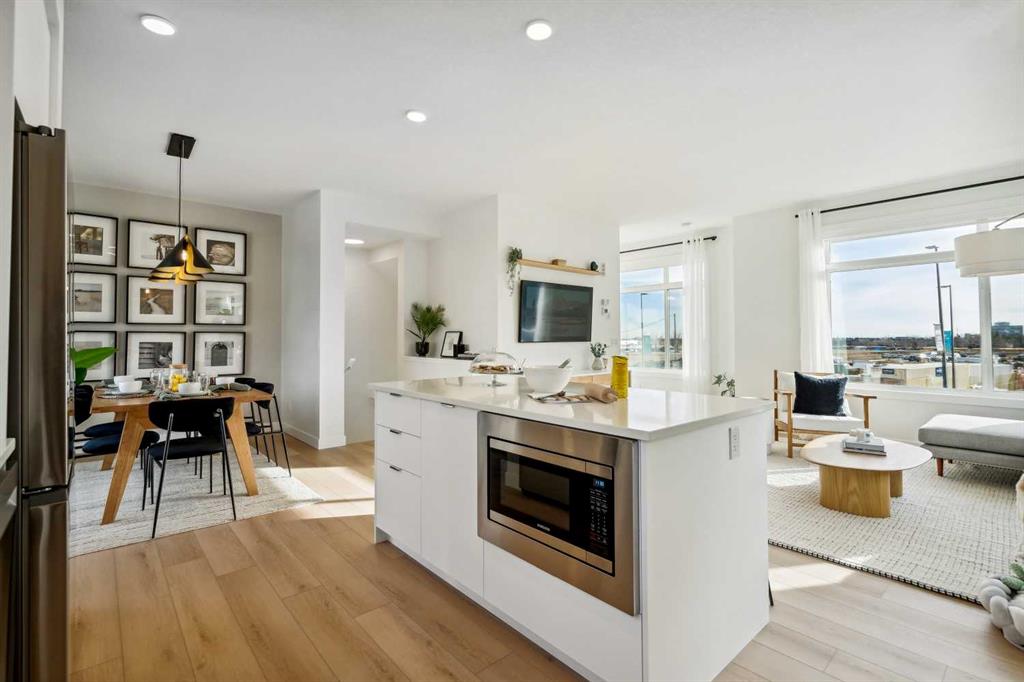 3-BED | 2.5-BATH | 2-CAR ATTACHED GARAGE | LOW CONDO FEES. High quality construction and many inclusions in the home; quartz counters in kitchen and bathrooms, LVT flooring throughout main living area, 9' ceilings on main living area, plenty of storage space, oversized kitchen, oversized balcony, plus additional front patio space. A/C rough in and all window coverings are included! Upper floor washer and dryer are included, as well as full kitchen appliance package including gas range and chimney hood fan. Oversized double car attached garages for your convenience. The home boasts huge, oversized windows, many of them opening to allow in fresh air and sunlight. Experience the best of Currie, with top-rated schools, parks (including dog park), restaurants, heritage buildings, innovative mixed-use spaces, and just an 8-minute drive to downtown! (Note: Photos & virtual tour are of a show home with similar layout and is an approximation of the property for sale). Book your showing today.
