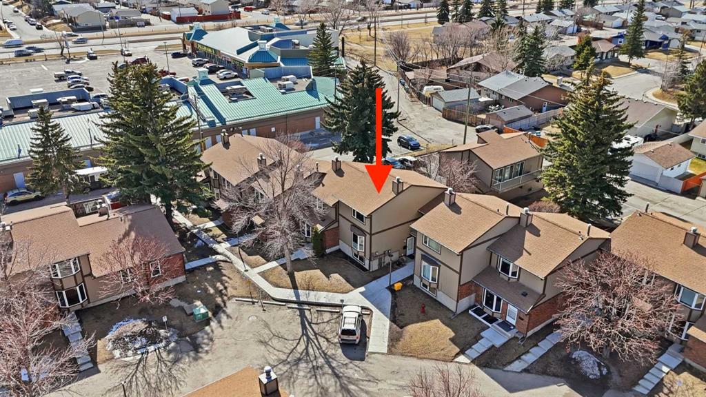WOW! Welcome to this beautifully maintained end-unit townhouse in "Villa in the Park", located in the desirable community of Marlborough Park. Offering 4 spacious bedrooms and 1.5 bathrooms, in 1,746 square feet of fully developed living space, this home is perfect for families or those seeking extra space. Enjoy an abundance of natural light with east, west, and north exposures, along with a fully fenced, private, west-facing backyard—ideal for relaxing or entertaining. This townhome features newer vinyl windows, newer appliances, updated kitchen, and major mechanical upgrades including a newer furnace and hot water tank. Cozy up by the charming wood-burning fireplace, and appreciate the convenience of your dedicated outdoor parking stall (#57) directly behind the unit. Just steps from shopping, dining, transit, parks, pathways, and schools, with easy access to major roadways, this location truly has it all. Condo fees here include water and sewer utilities! Don’t miss this fantastic opportunity—call now to view!