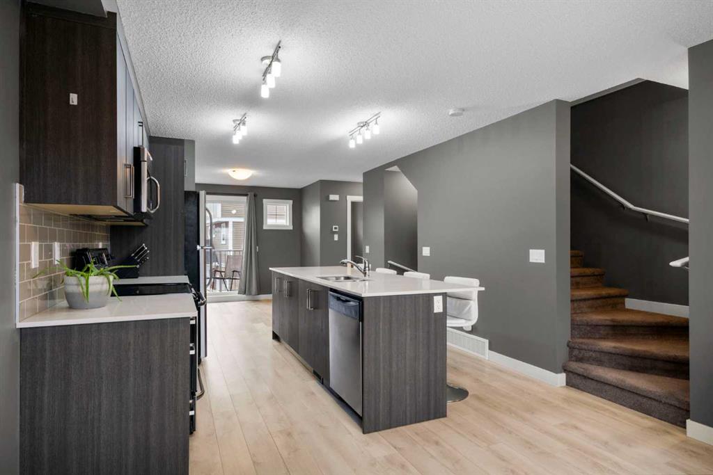 Welcome to a home that offers the ease of townhouse living with the comfort and flow of a thoughtfully designed space. Set within the welcoming community of Kings Heights, this three level property feels both functional and inviting from the moment you arrive. With a driveway for additional parking and an ATTACHED DOUBLE GARAGE for everyday convenience, the approach already hints at the practicality that defines this home. Step inside to a main floor designed for real life. Laminate flooring carries you through a bright, OPEN CONCEPT layout where the living room, dining space, and kitchen connect naturally. The kitchen is finished with QUARTZ COUNTERTOPS, STAINLESS STEEL APPLIANCES, and CABINETRY TO THE CEILING, creating a clean, modern look while maximizing storage. A central island anchors the space, making meal prep and casual conversations feel effortless. At the back of the home, the dining area opens directly to a private balcony, complete with a GAS LINE, perfect for summer evenings and easy outdoor hosting. A well placed powder room and front entry storage keep daily routines organized and comfortable. Upstairs, the layout balances privacy with practicality. The primary bedroom offers a quiet place to recharge, while the second bedroom provides flexibility for guests, children, or a dedicated home office. The configuration of both bedrooms having ensuite bathrooms adds everyday functionality, and UPPER LEVEL LAUNDRY brings convenience exactly where it is needed most. The linen closet ensures there is a place for everything, supporting an uncluttered and relaxed lifestyle. The lower level is focused on utility and ease, featuring interior access from the single attached garage, along with additional storage and mechanical space. This design is especially appreciated during colder months, allowing you to move from car to home with comfort and efficiency. Added features such as a CENTRAL VACUUM SYSTEM enhance the overall livability and long term value. Living in Kings Heights means being part of a well established Airdrie community known for its pathways, ponds, and family friendly atmosphere. Everyday essentials are close at hand, from shopping and dining to nearby schools, parks, and recreation options. Commuters will appreciate the quick connection to Deerfoot Trail (QEII), making travel into Calgary manageable while still enjoying the calm pace of suburban living. This is a home that supports lifestyle and meaningful moments, offering the kind of layout and location that simply makes sense. Come experience the comfort, convenience, and lifestyle waiting for you here!