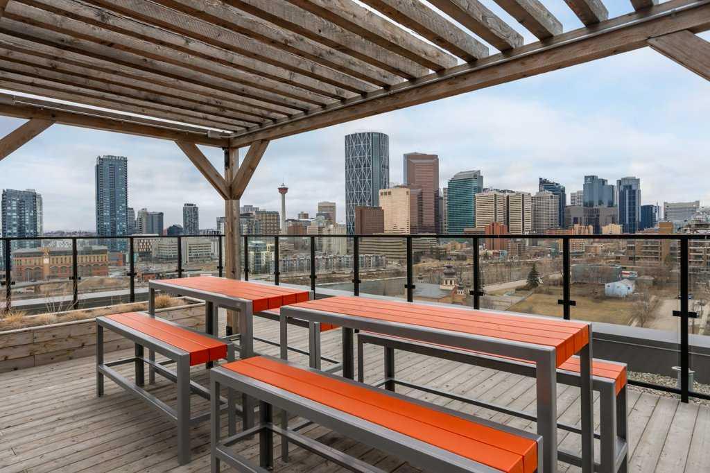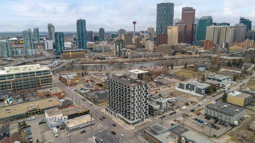 If you've been searching for an investment that is located in a short term-friendly building with titled underground parking and storage, this could be the unit! This 6th floor apartment is ideally positioned in the centre of the building and offers an excellent layout with bright east-facing windows and balcony. Currently tenant-occupied with a wonderful, reliable tenant that is looking to stay, this is a turnkey opportunity for investors or a flexible option for future short-term rental use. The thoughtfully designed floor plan features a private bedroom with sliding doors, allowing for either separation or an open-concept bachelor-style layout. The modern kitchen is complete with white cabinetry, stainless steel appliances and a large island that flows seamlessly into the living area, creating a functional space for both everyday living and entertaining. The living room is positioned to enjoy views or enjoy your favourite show hile meal prepping at the island. A stacked laundry closet is conveniently located adjacent to the bedroom, while a spacious front entry closet and a well-appointed 4-piece bathroom add to the unit’s practicality. This building is short-term rental friendly and offers enhanced convenience with virtual concierge services and smart technology including facial recognition access. Residents also enjoy a rooftop patio with stunning downtown views, fire pits and BBQ stations, along with an indoor social and workspace area. Located just steps from the vibrant amenities of Crescent Heights & neighbouring communities, you’re within walking distance to the shops, cafés and restaurants along Edmonton Trail and Centre Street, including local favourites like Blue Star Diner, Holy Grill and Pizza Culture. Enjoy quick access to the Bow River pathways and Rotary Park with its panoramic downtown views. Commuting is effortless with direct access to downtown, public transit routes and major roadways including Centre Street and Deerfoot Trail. Checkout the 3D Virtual Tour & book your showing today.