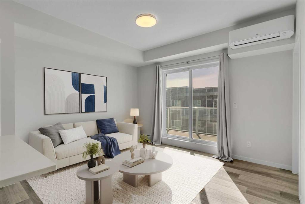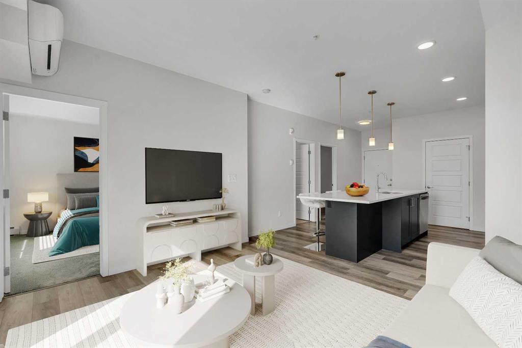 BRIGHT, BEAUTIFUL & MOVE-IN READY in the heart of Harvest Hills!! Welcome to Unit 410 at 200 Harvest Hills Place NE — a spectacular south-facing, top-floor 2 BED, 2 BATH condo. Perched on the top floor with a coveted south-facing exposure, this stunning 694 sq ft residence is drenched in warm natural sunlight from morning to evening, creating an atmosphere that feels bright, welcoming & effortlessly uplifting every single day. The thoughtfully designed open-concept layout flows beautifully between the kitchen, dining & living areas, creating a versatile & connected space that's equally suited to quiet evenings in or lively gatherings with friends & family. High-quality vinyl plank flooring grounds the space with warmth and sophistication, while the neutral colour palette throughout provides the perfect canvas for your personal style. At the heart of the home lies a truly IMPRESSIVE KITCHEN that will delight even the most passionate home chef. Premium stainless steel appliances, gleaming quartz countertops, massive centre island, and sleek modern cabinetry combine to create a space that is as functional as it is beautiful. An artfully designed herringbone marble tile backsplash adds a touch of personality and flair, making this kitchen a genuine focal point of the home. The PRIMARY BEDROOM is a true retreat — a peaceful haven designed for rest and relaxation. Generous in size, it comfortably accommodates your furnishings while still feeling light & airy. The private ensuite bathroom elevates the experience further, featuring a sleek modern vanity with quartz countertops and a beautifully appointed tub & shower combo surrounded by PREMIUM herringbone marble tiles that brings a touch of spa-like luxury to your everyday routine. The 2nd bedroom is equally impressive in its versatility, offering a wonderful space that can serve as a guest room, a home office or gym — whatever suits your lifestyle best. A well-appointed 4-piece main bathroom with upgrades serves this space and your guests with ease and convenience. Step through the living area onto your LARGE PRIVATE SOUTH-FACING BALCONY and prepare to fall in love. Enjoy seamless indoor-outdoor living as you soak up the abundant Calgary sunshine, take in the open views, and savour your morning coffee or evening glass of wine in the fresh air. Practicality meets elegance with the addition of a convenient IN-SUITE LAUNDRY ROOM, keeping life effortlessly organized. This great unit also includes AIR CONDITIONING and a TITLED UNDERGROUND PARKING STALL. The LOW CONDO FEES include all utilities except electricity, cable/internet & phone. Situated in the vibrant & welcoming community of Harvest Hills, you'll enjoy easy access to a fantastic array of shopping, dining, schools, parks, and major roadways, making daily life as convenient and enjoyable as possible. Whether you're a first-time homebuyer, a savvy investor, or someone looking to downsize without sacrificing comfort or style, this is the property for you. CALL TODAY!!