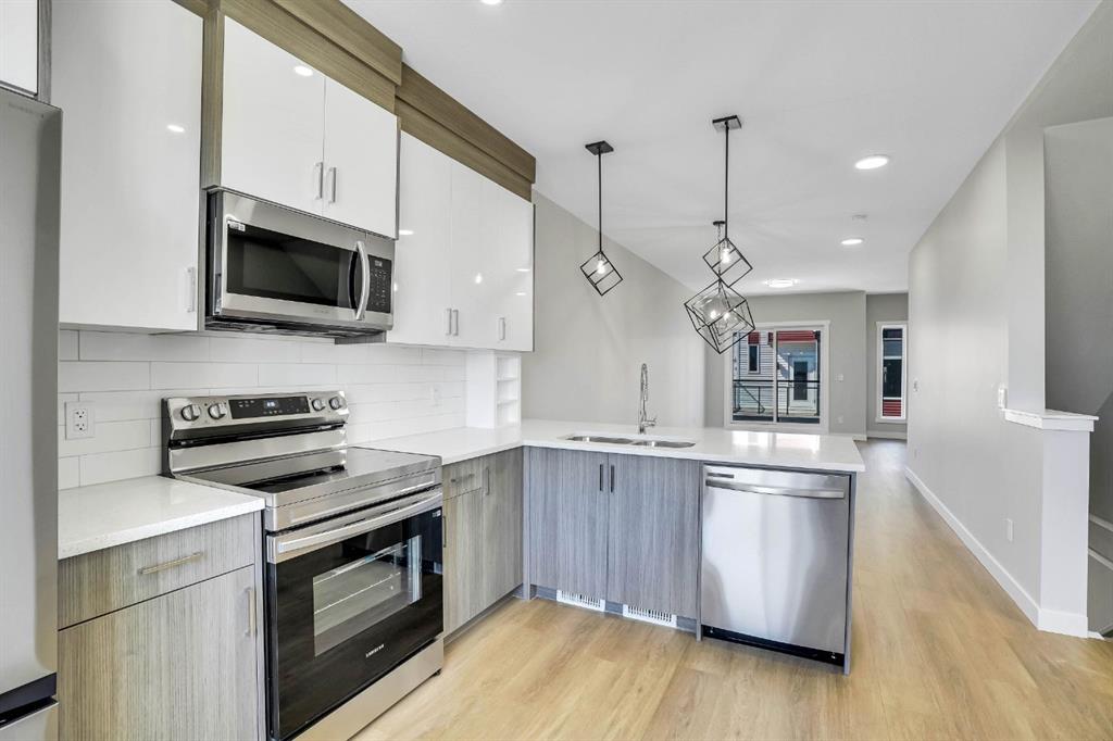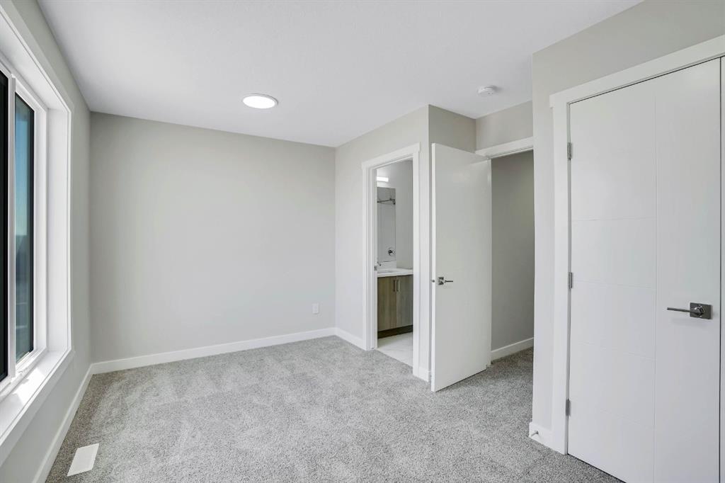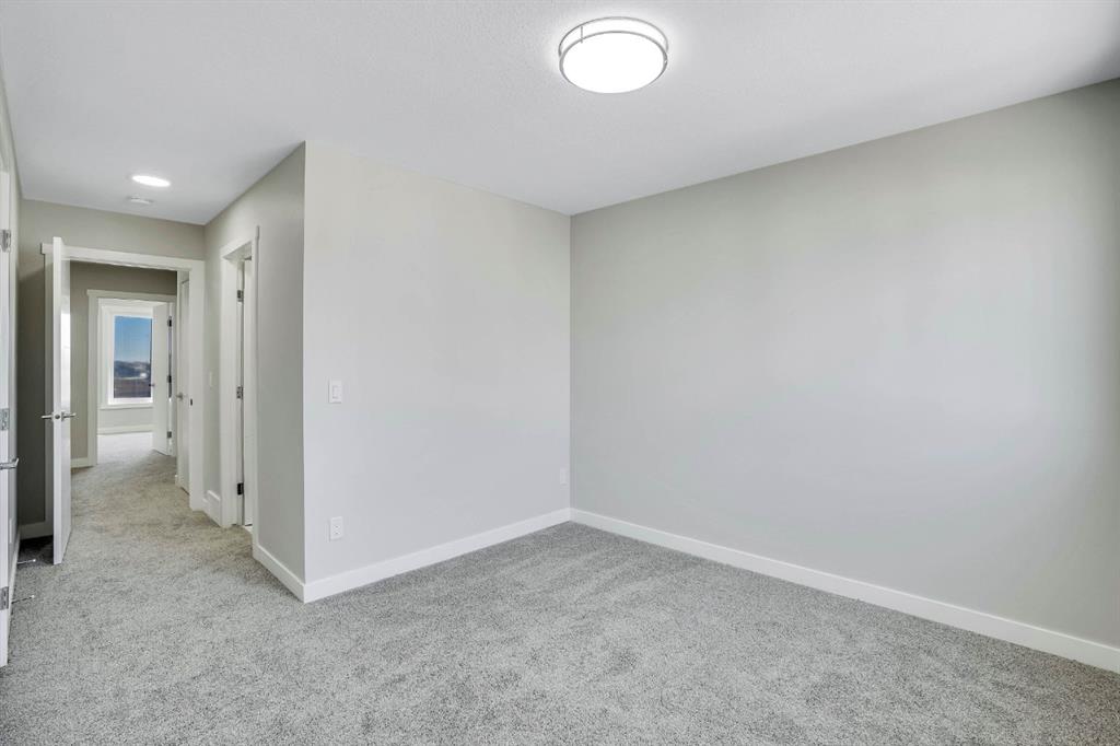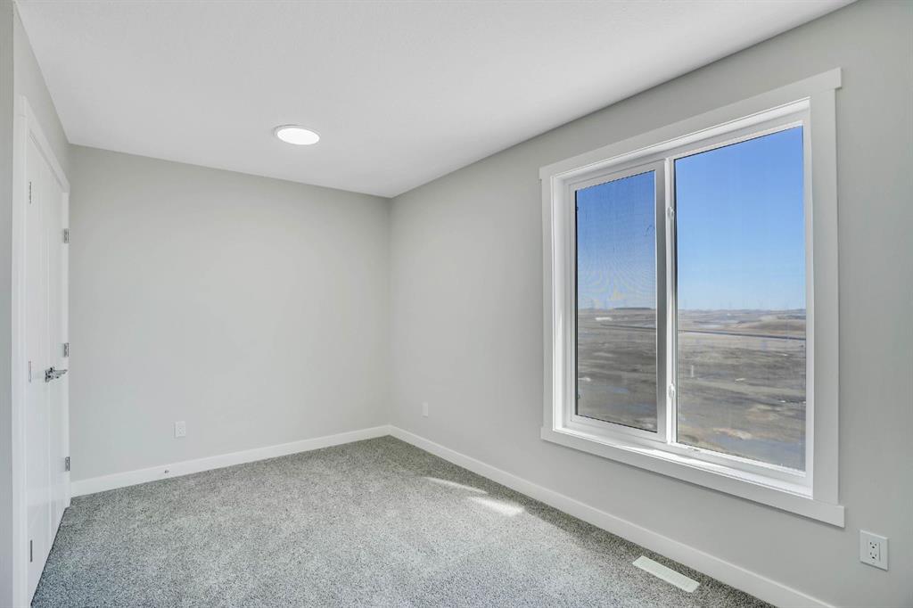 Welcome to this beautifully upgraded corner unit townhouse in the desirable community of Redstone! This stunning 3 bed, 3.5 bath home offers an exceptional layout with thoughtful design throughout. As you enter, you’re greeted by a spacious foyer leading to a main level bedroom with a full ensuite ideal for guests, extended family, or a private office space. You’ll also find access to the attached garage and a separate rear entrance for added convenience. The second floor boasts an open-concept layout featuring a stylish kitchen with stainless steel appliances, a large island perfect for bar stools, and a bright living/dining area that opens onto a private balcony perfect for summer BBQs. A 2-pc bathroom is also conveniently located on this level. Upstairs, enjoy upgraded railings, a dedicated laundry room, and a spacious hallway. The primary bedroom offers a walk-in closet and a full ensuite, while the generously sized second bedroom also features its own private ensuite perfect for added comfort and privacy. Located minutes from Stoney Trail, shopping, parks, and more, this turn key corner unit is the perfect place to call home. Don’t miss out, this one won’t last!