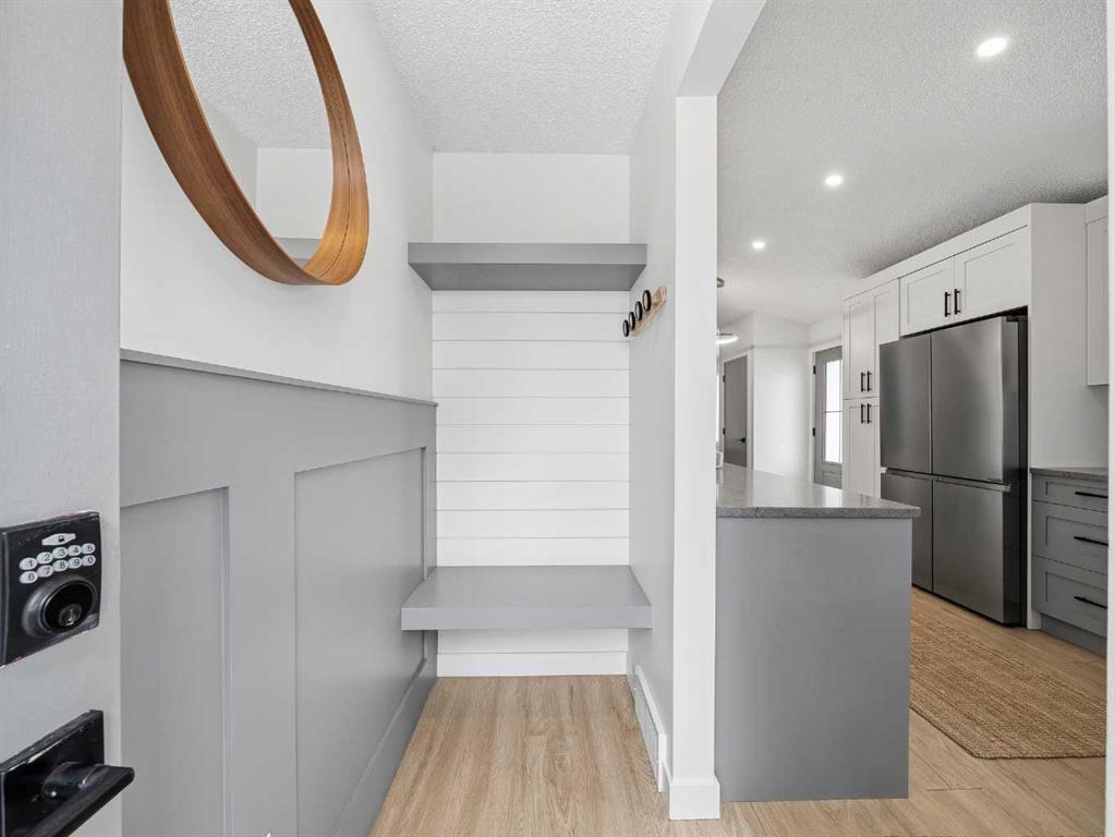 Rare opportunity to own a fully renovated bungalow with an oversized double detached garage in sought-after Huntington Hills NW. Offering 3 bedrooms, this home combines modern upgrades with timeless design, including new solar panels, a new heat pump/furnace combo, and a new roof on both the home and garage. Inside, you’ll find an exceptional open-concept layout with vaulted ceilings, large windows, and a bright, airy feel. The designer kitchen features quartz countertops, white & grey shaker cabinetry, matte black hardware, subway tile backsplash, and new stainless steel appliances. The living area is warm and inviting with a wood-burning fireplace, while the main floor is completed by three spacious bedrooms and a beautifully renovated full bathroom with modern finishes. The partially finished basement offers high ceilings and future development potential. Outside, enjoy a fully fenced yard, west-facing backyard with patio and gas line, east-facing front porch, and a rubber-paved driveway with ample parking. Located on a quiet street just minutes to schools, parks, shopping, and the inner city, this home offers the perfect blend of style, efficiency, and convenience. Book your private showing today.